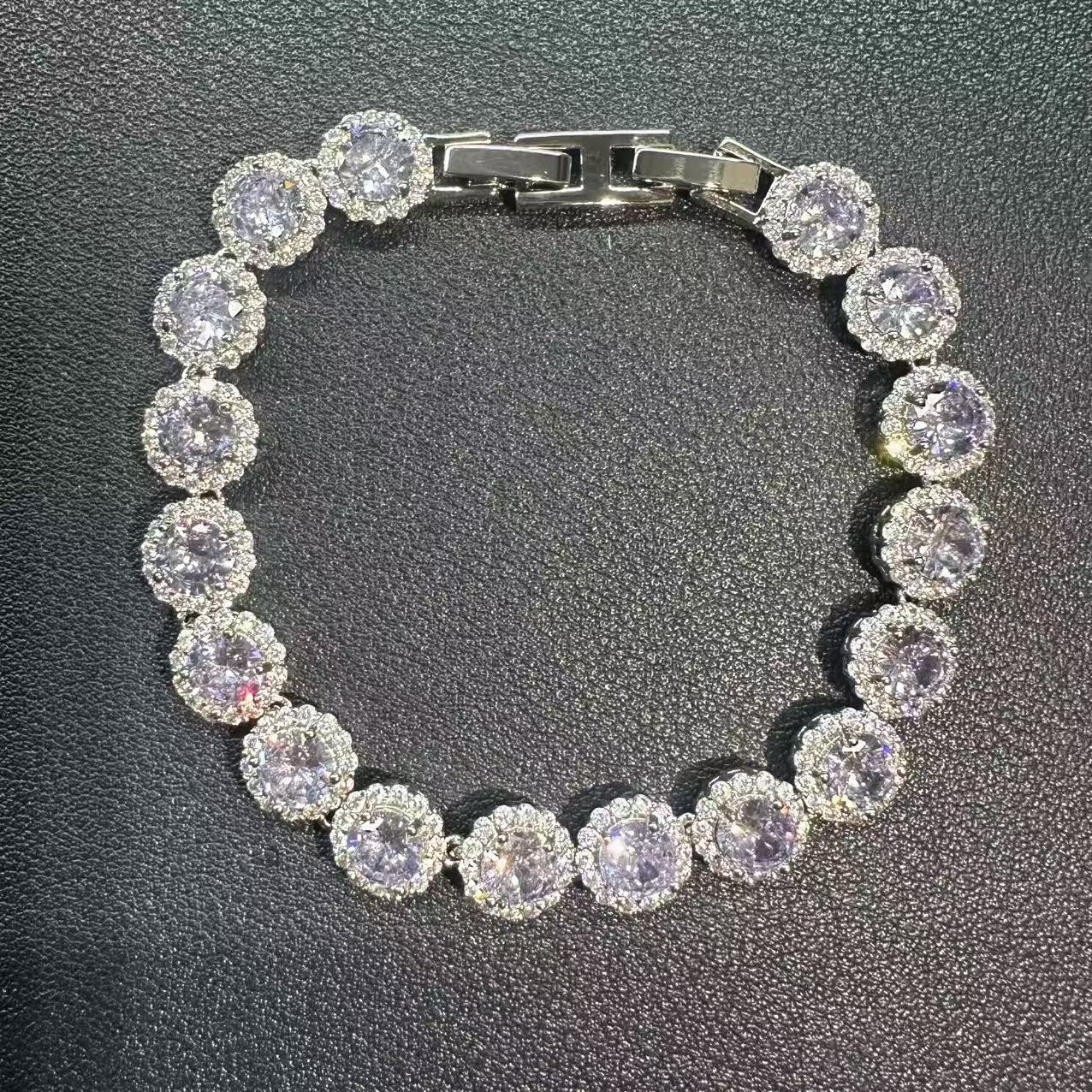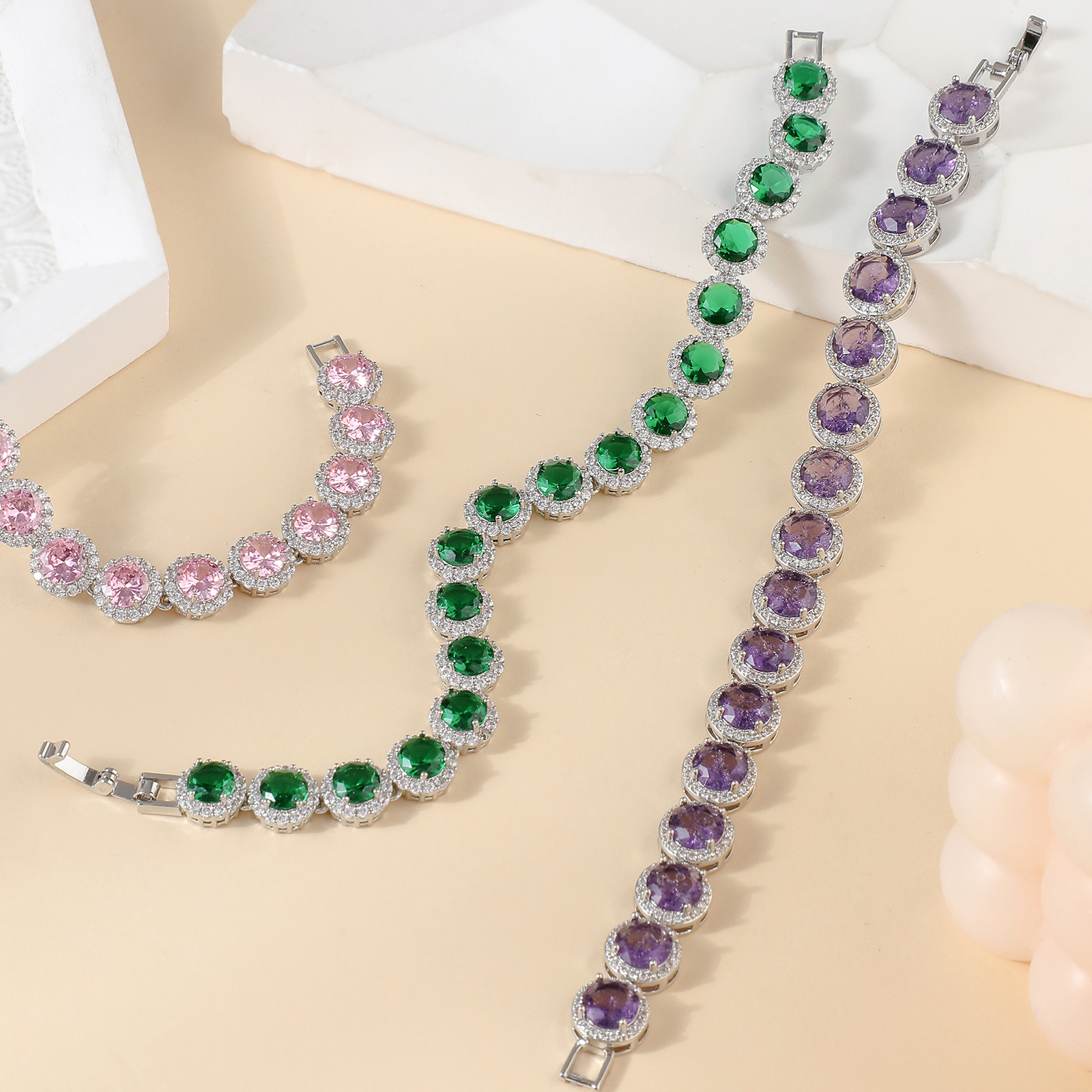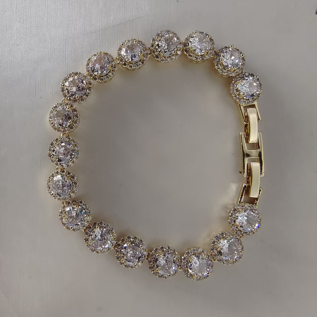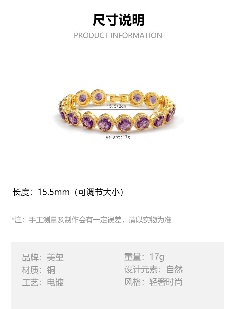 跨境欧美时尚镂空圆形手链镀金镶嵌锆石手饰女士时尚百搭彩色轻奢