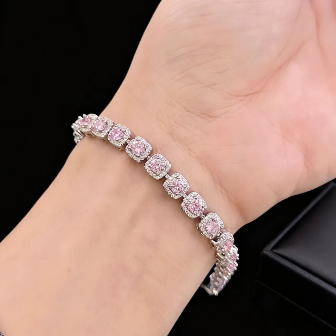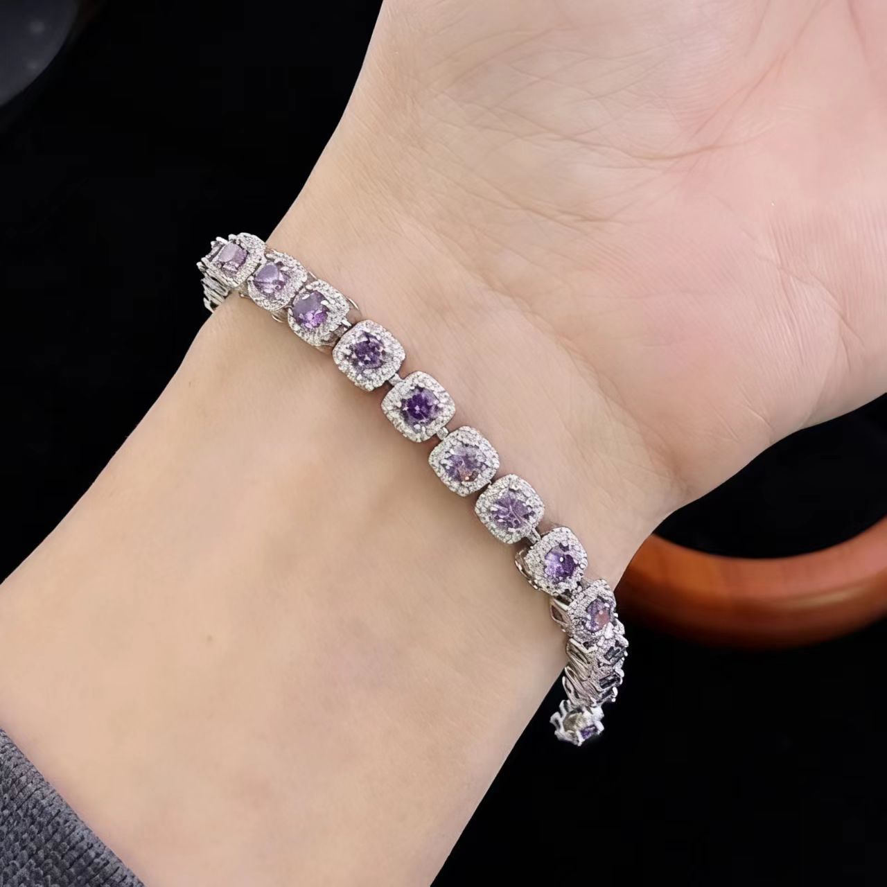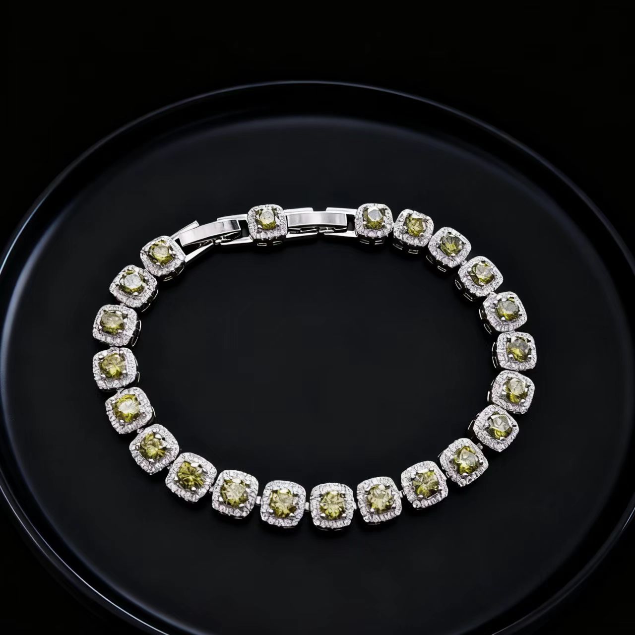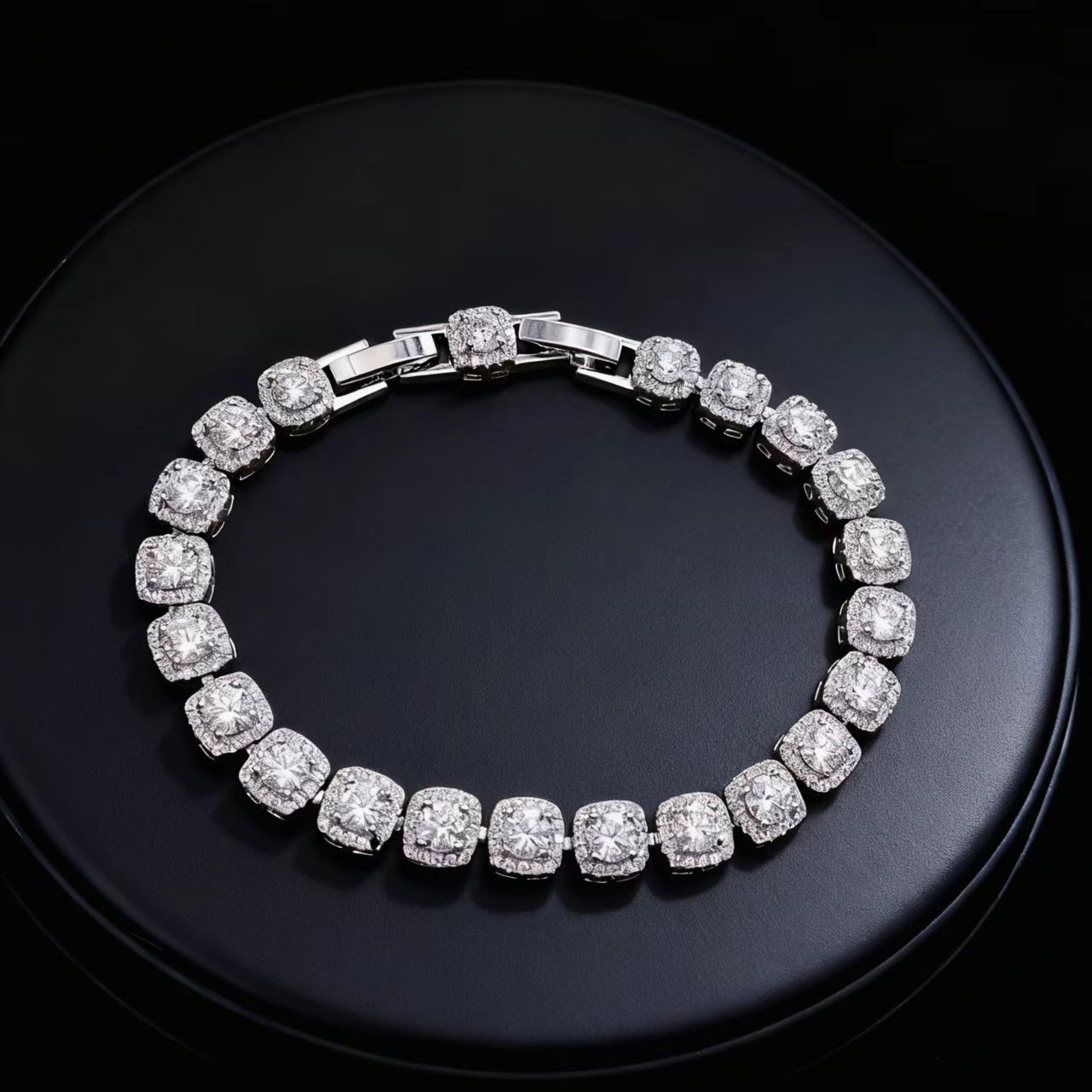 时尚潮流手饰公主方包满钻手链女 铜镀金镶嵌4MM锆石小方糖手链女