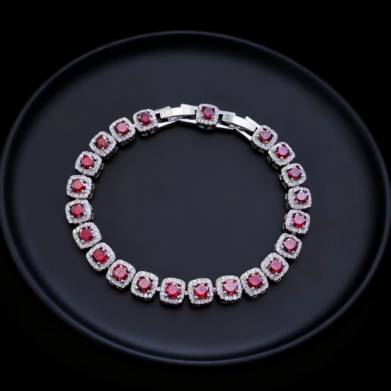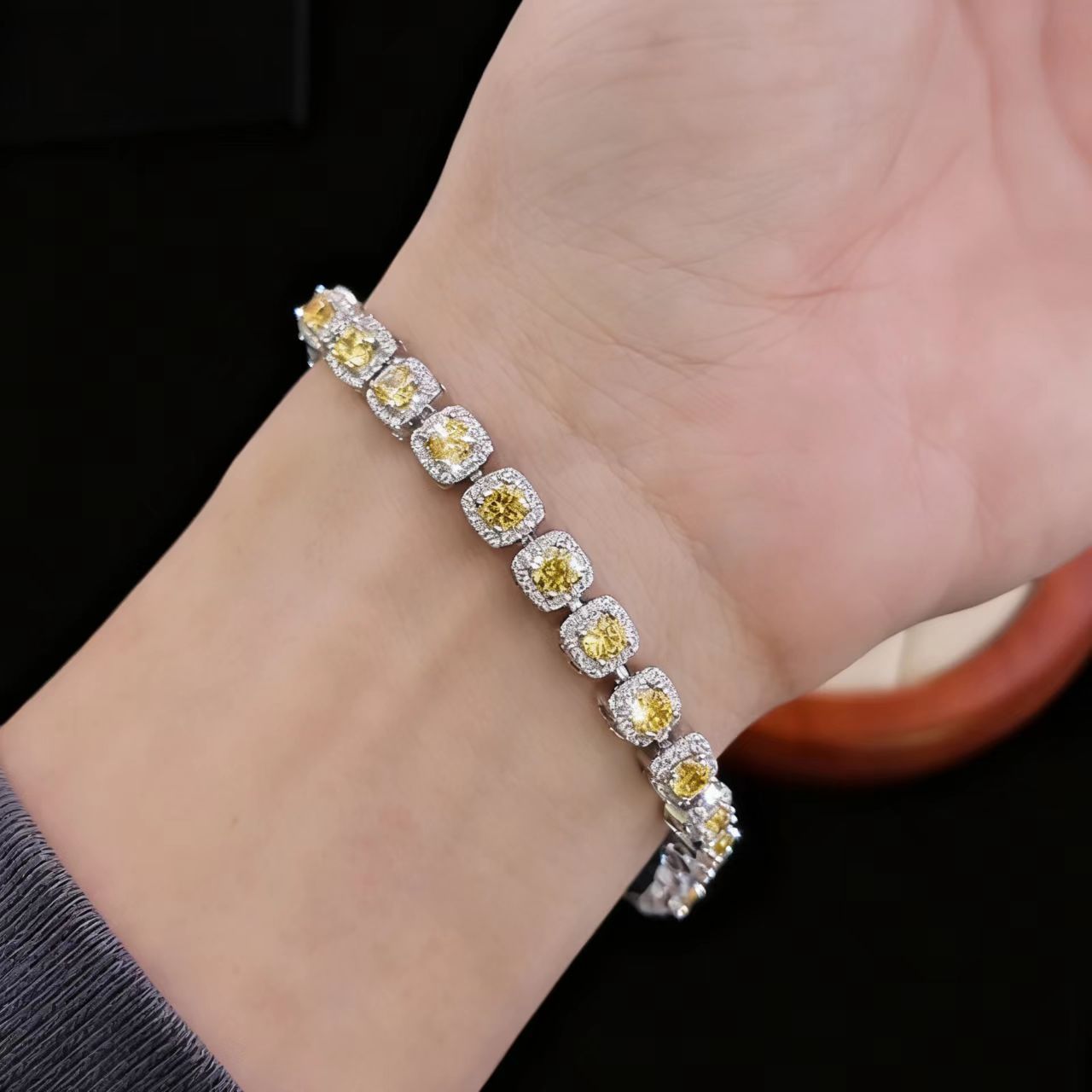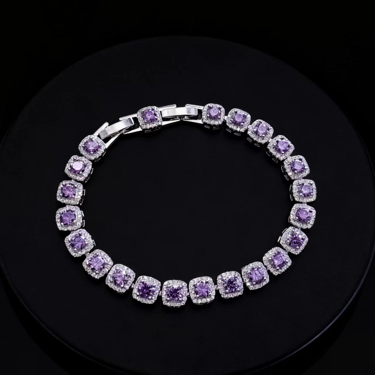 时尚潮流手饰公主方包满钻手链女 铜镀金镶嵌4MM锆石小方糖手链女