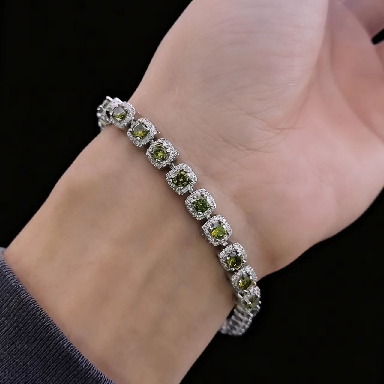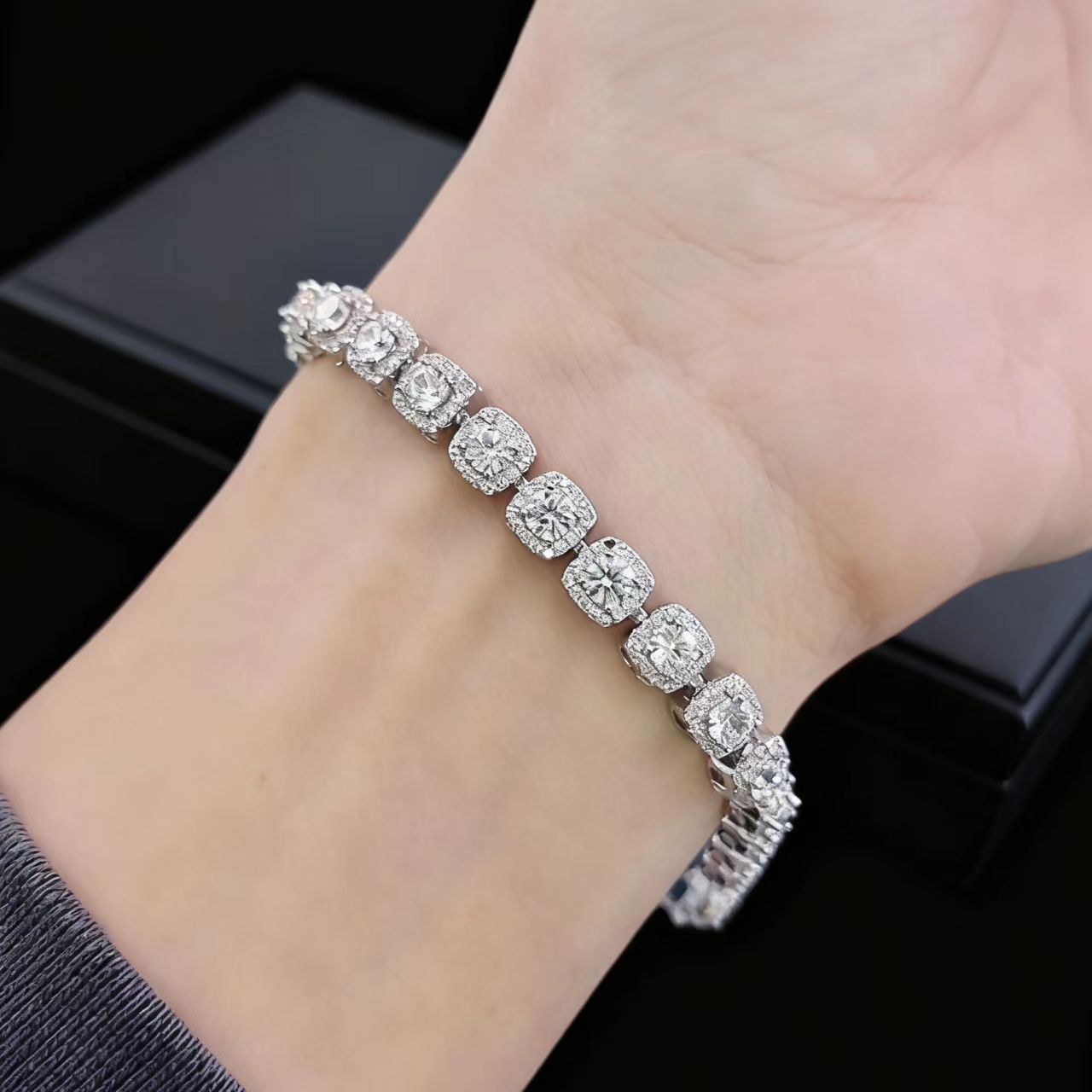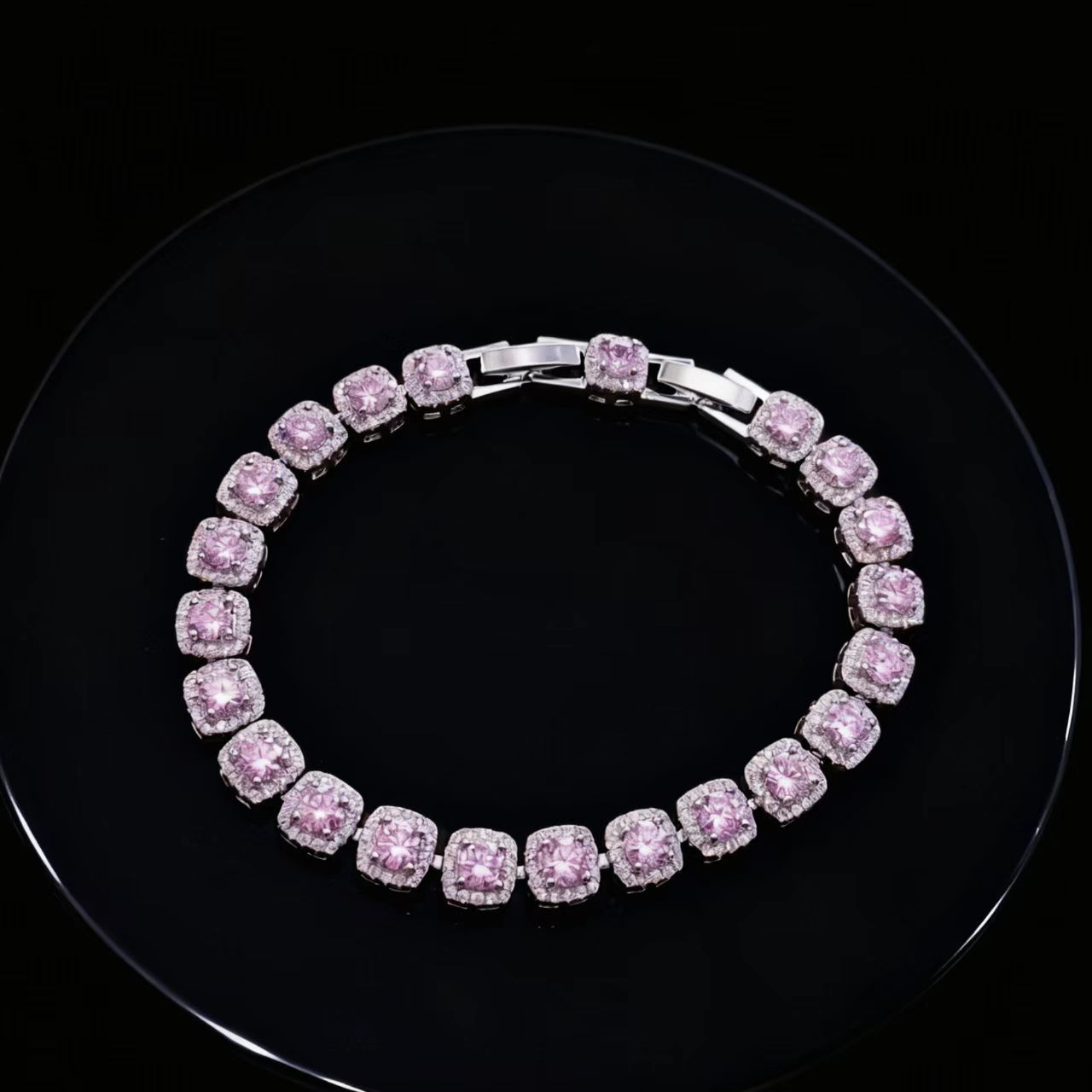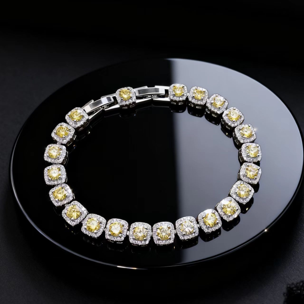 时尚潮流手饰公主方包满钻手链女 铜镀金镶嵌4MM锆石小方糖手链女