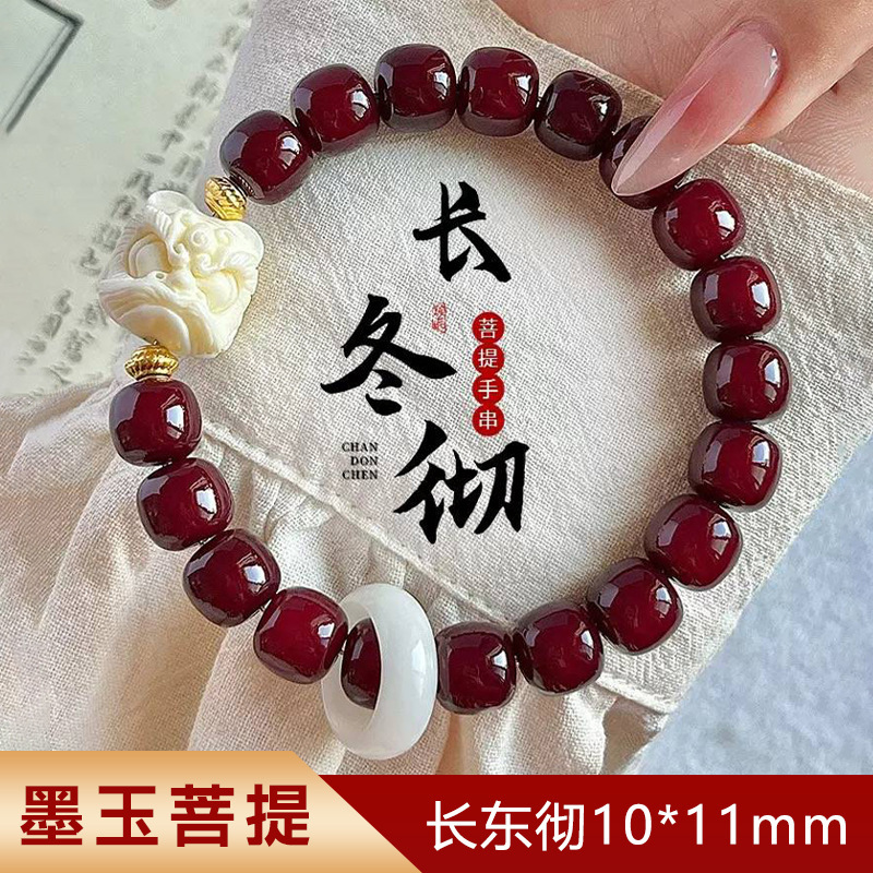 渐变白玉菩提子手串女款绕指柔佛珠男学生古风盘玩念珠百搭闺蜜款