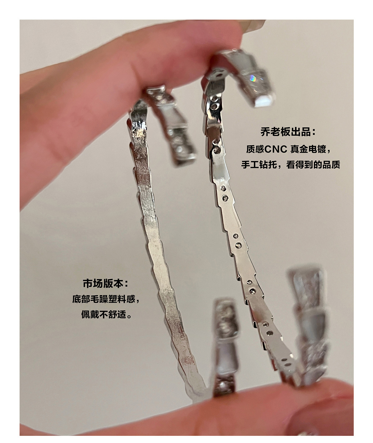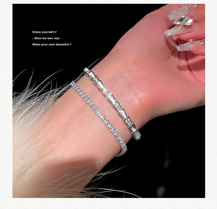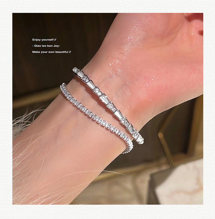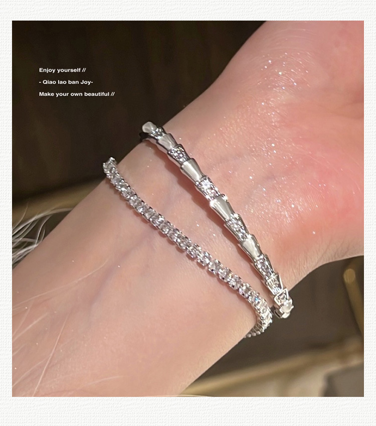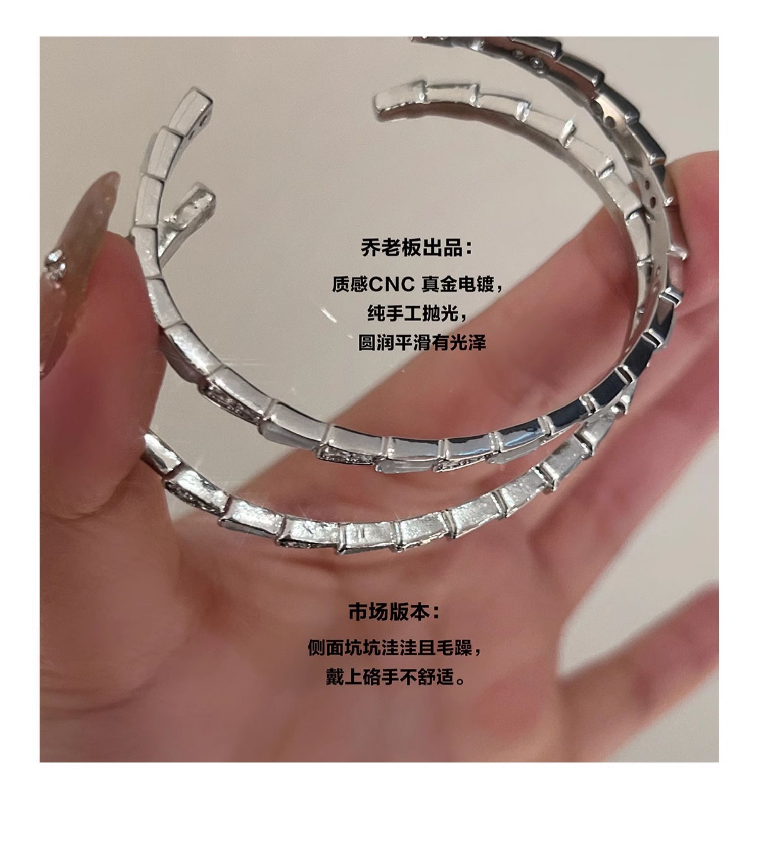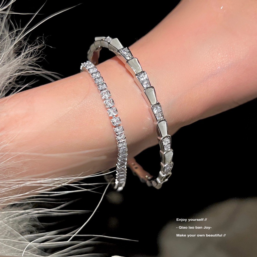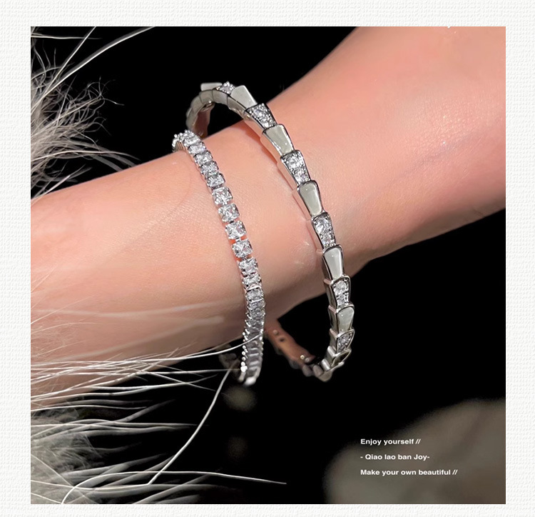钛钢不掉色新款贝母灵蛇形手镯闪钻质感手链锆石开口可调节银色手