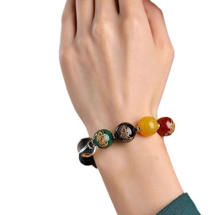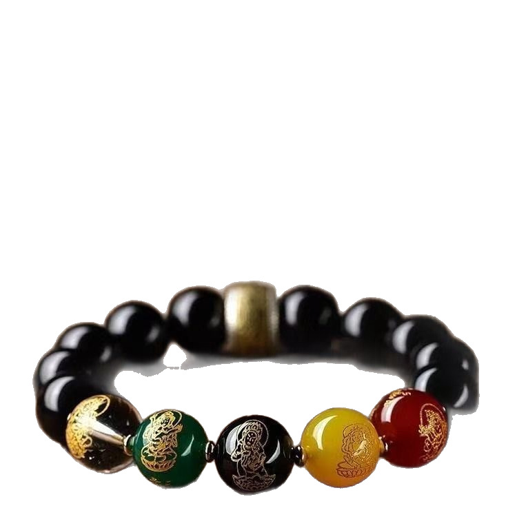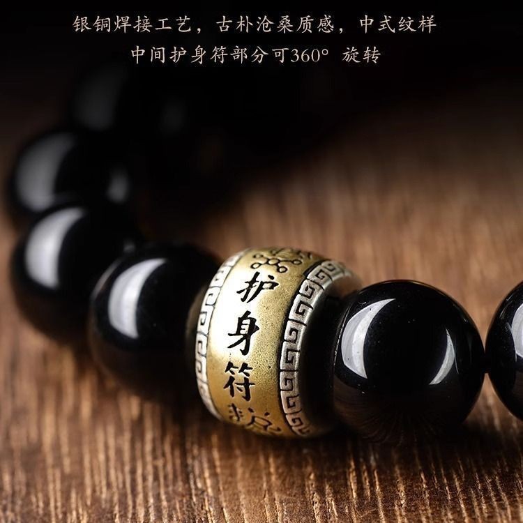 保真黑曜石五路财神手链本命年龙年男女手链S925银配件礼物