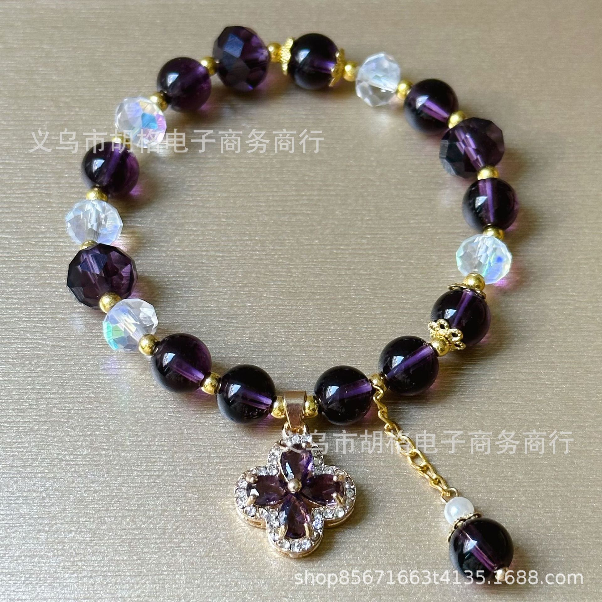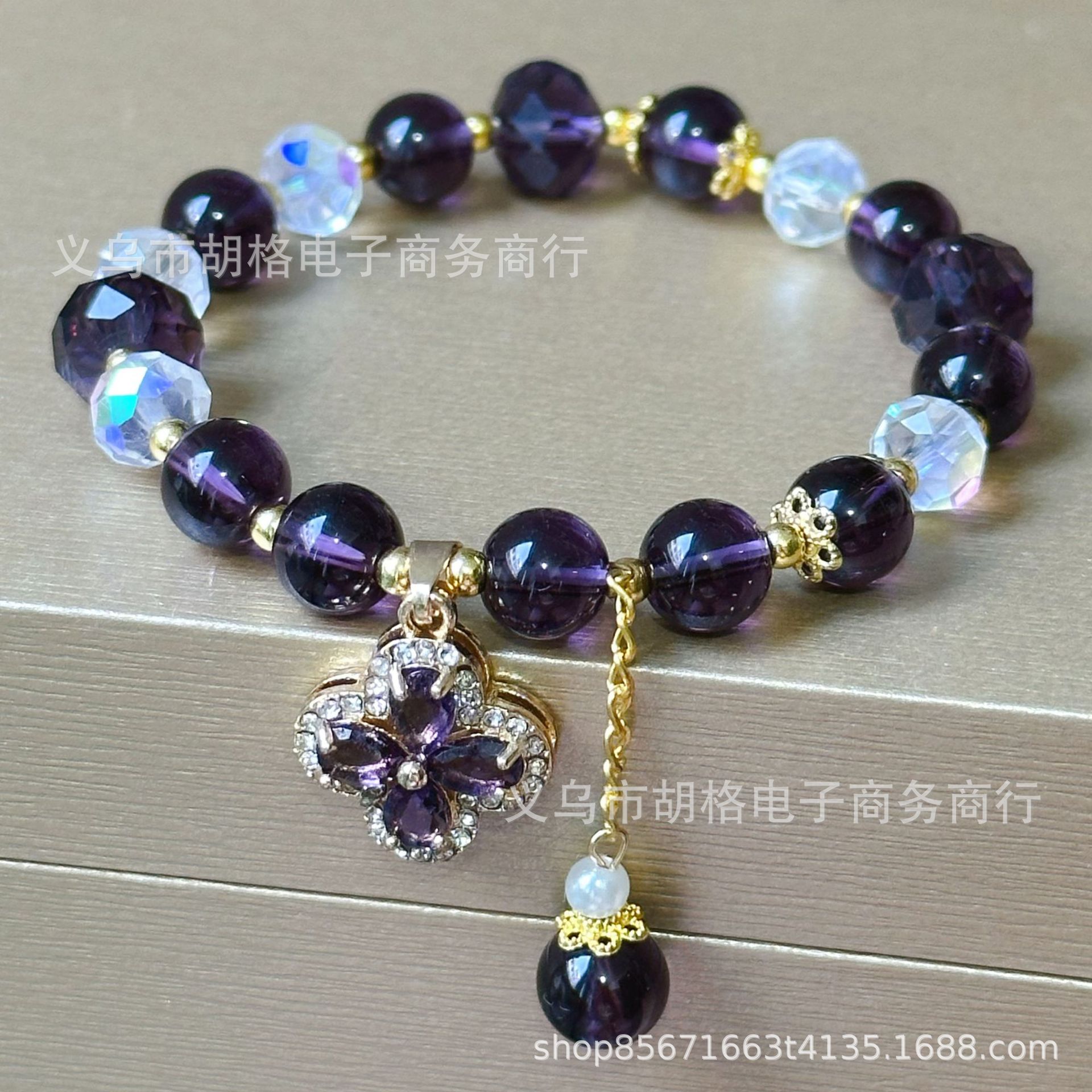 仿天然紫色水晶手链女森系冷淡风轻奢复古气质手串手环闺蜜姐妹饰