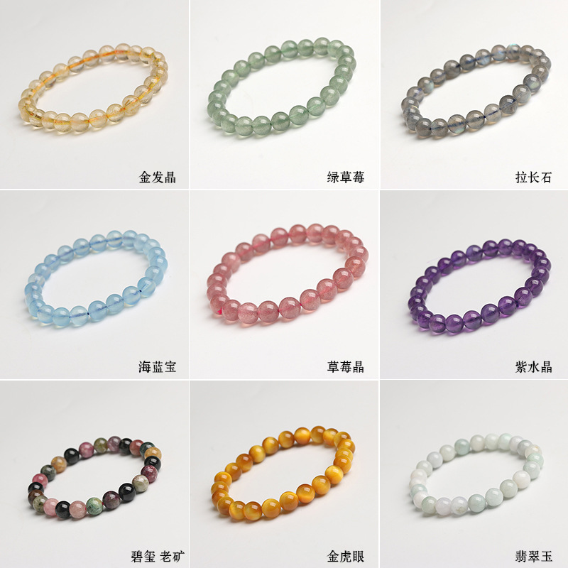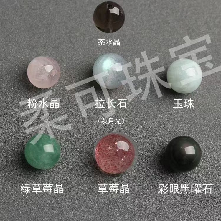 天然水晶景区百家姓散珠海蓝宝紫水晶月光石草莓晶手链DIY配珠