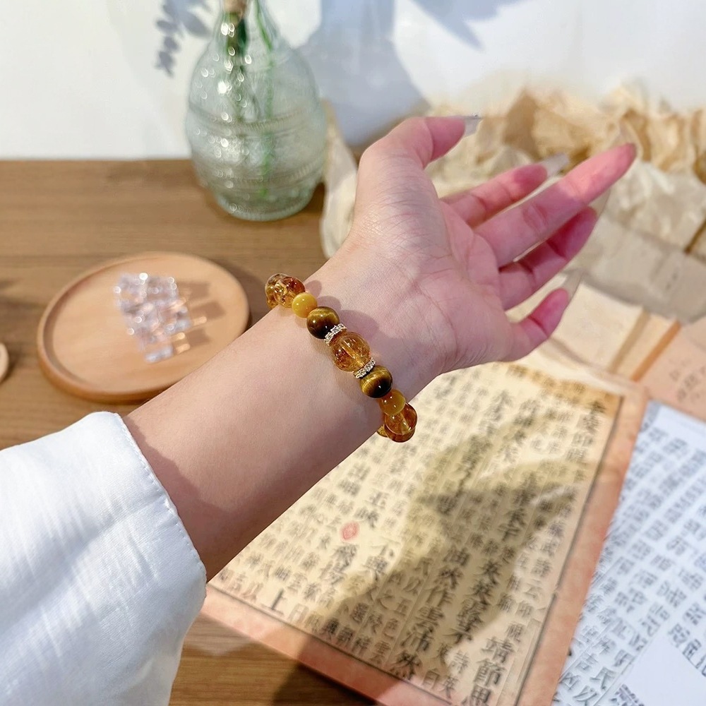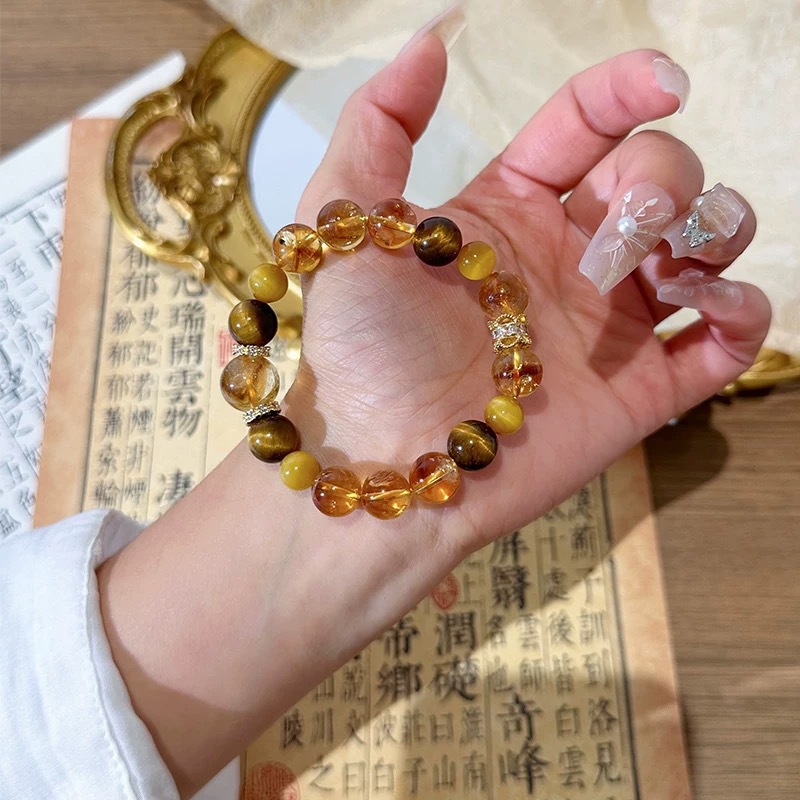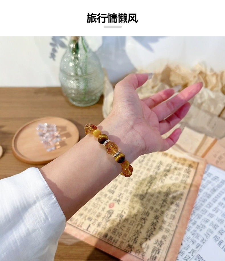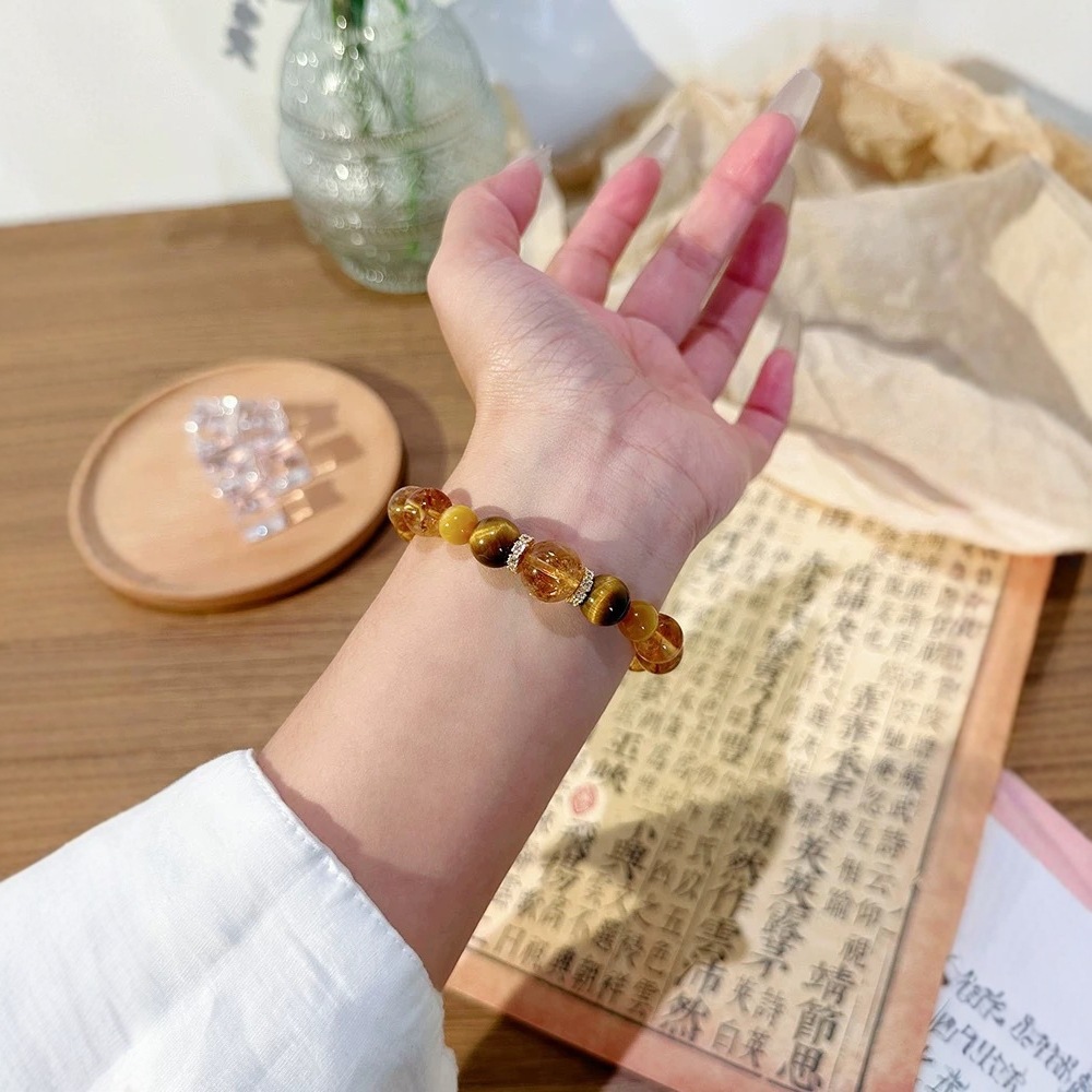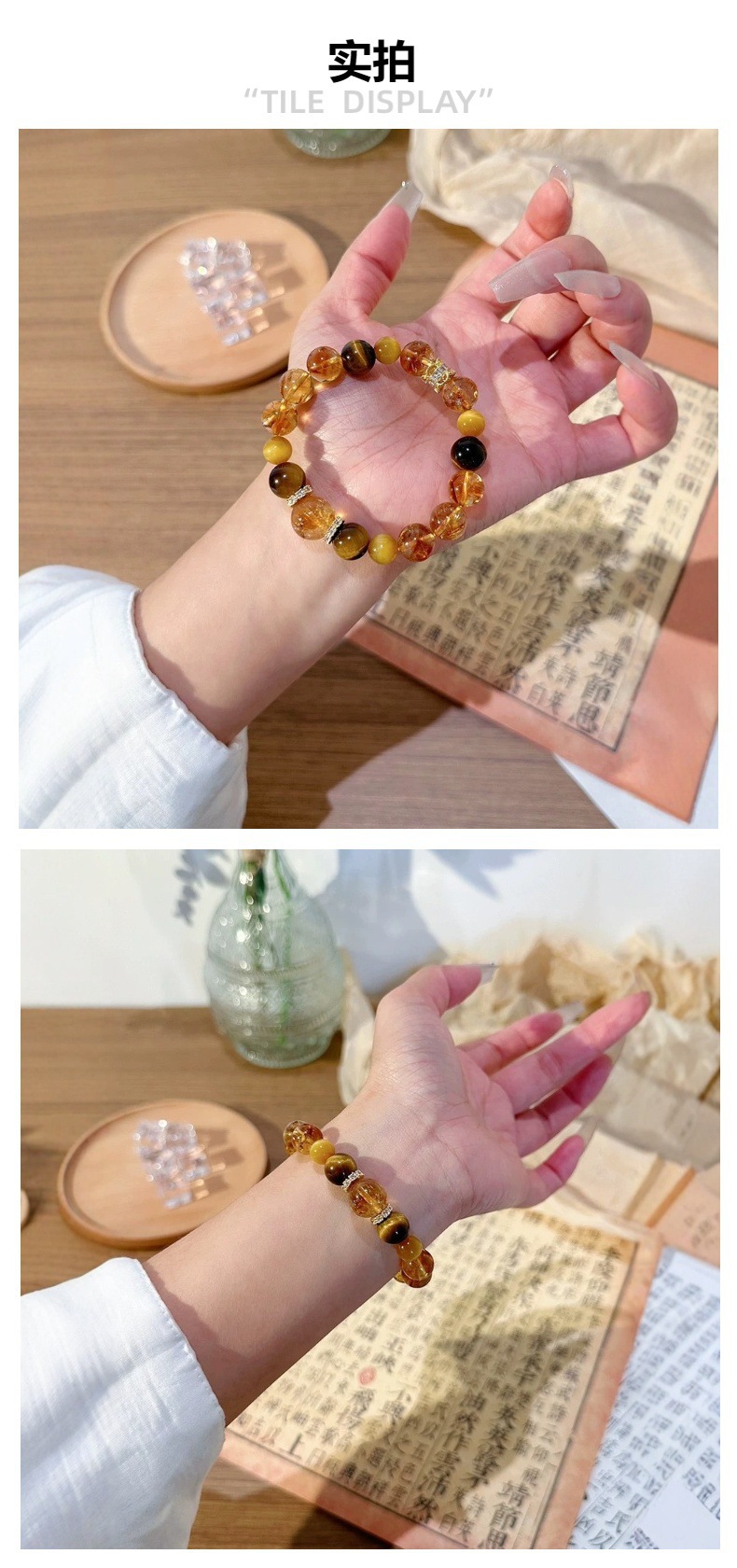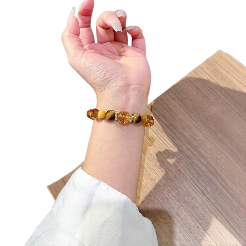 爆款金霸大综合天然水晶虎眼石黄塔晶单圈圆珠男女同款款手链