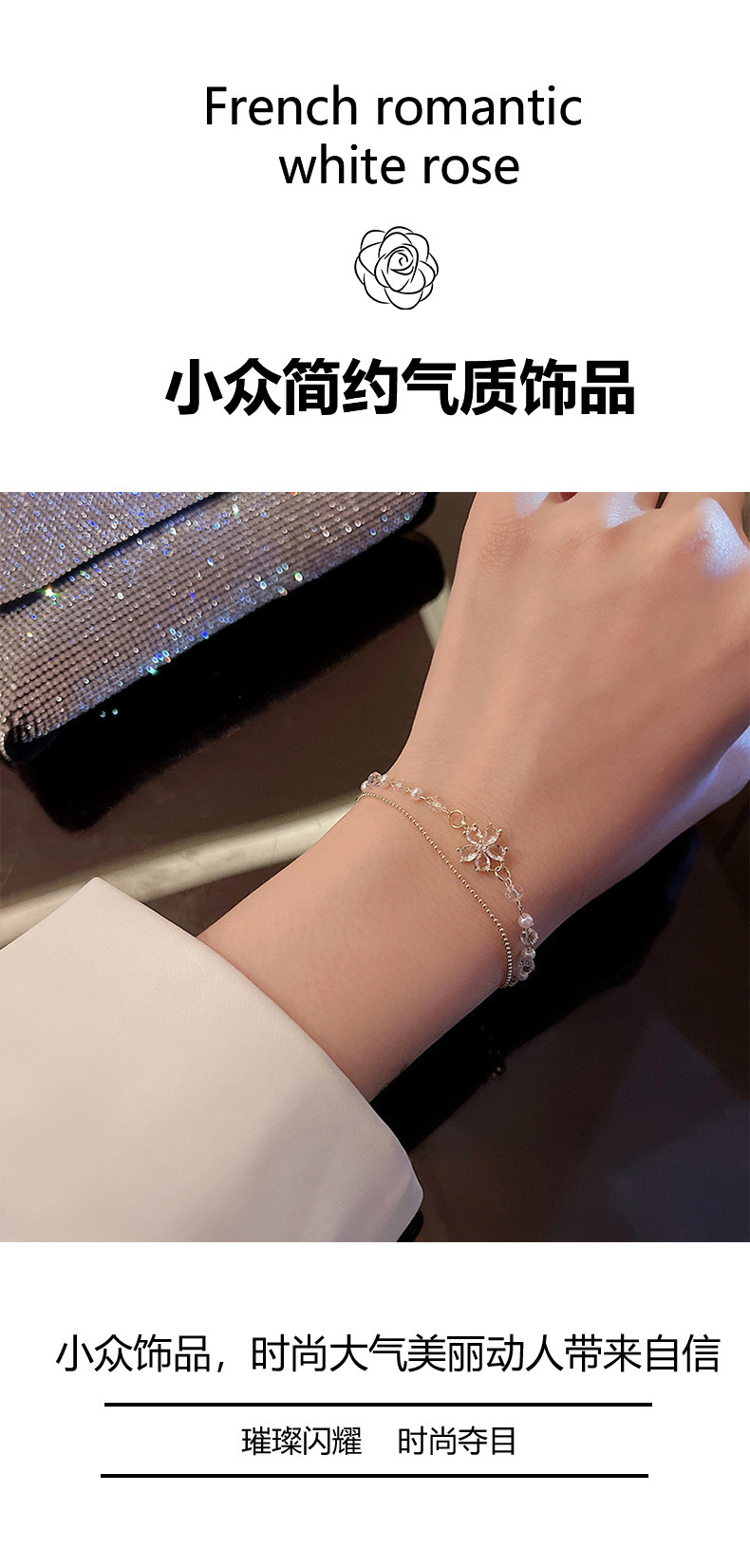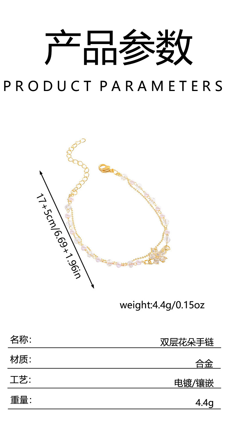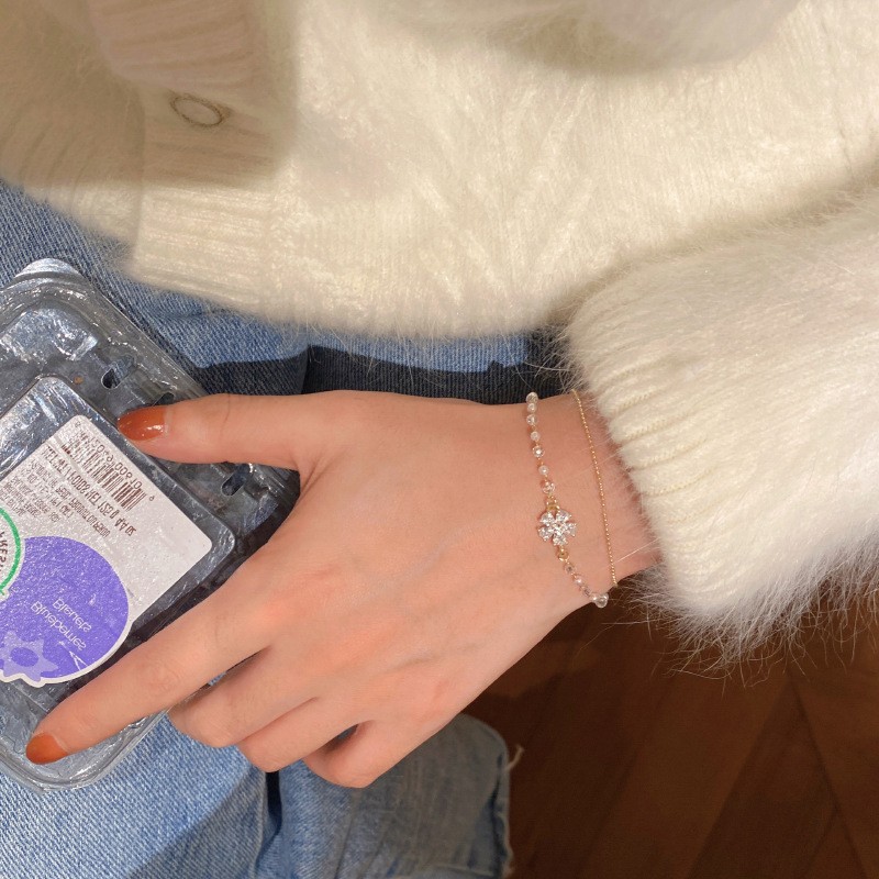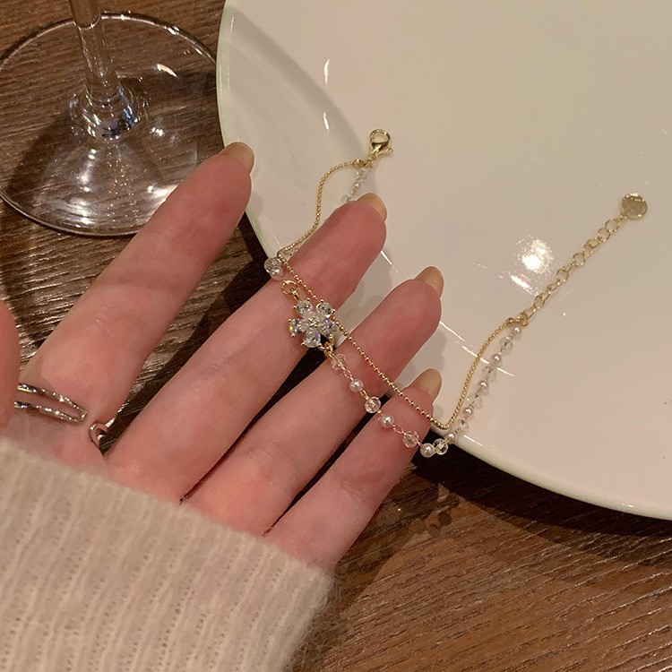 双层珍珠锆石花朵手链女小众设计高级感百搭叠戴闺蜜手环首饰礼物