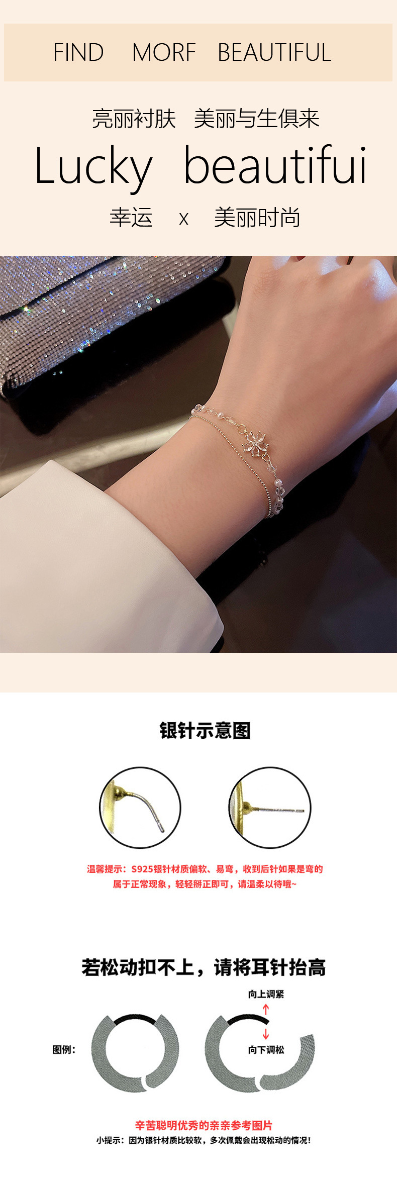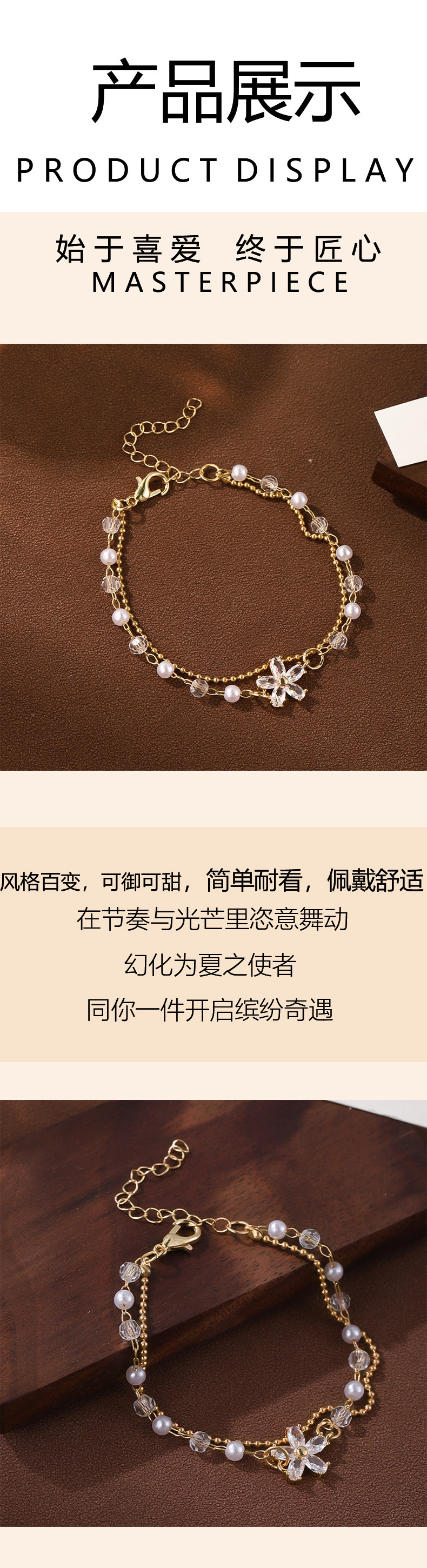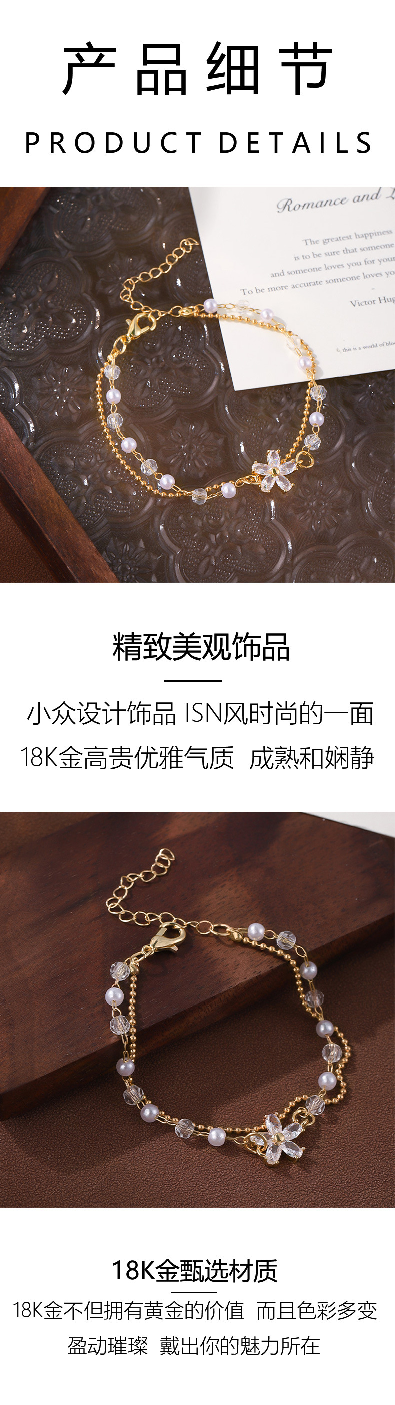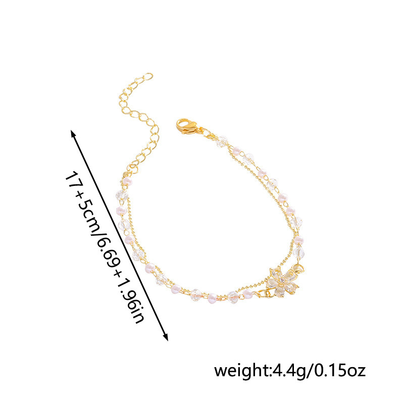 双层珍珠锆石花朵手链女小众设计高级感百搭叠戴闺蜜手环首饰礼物