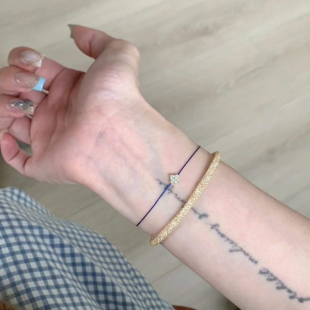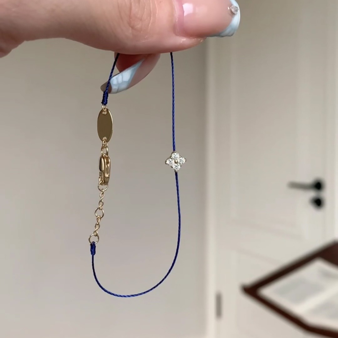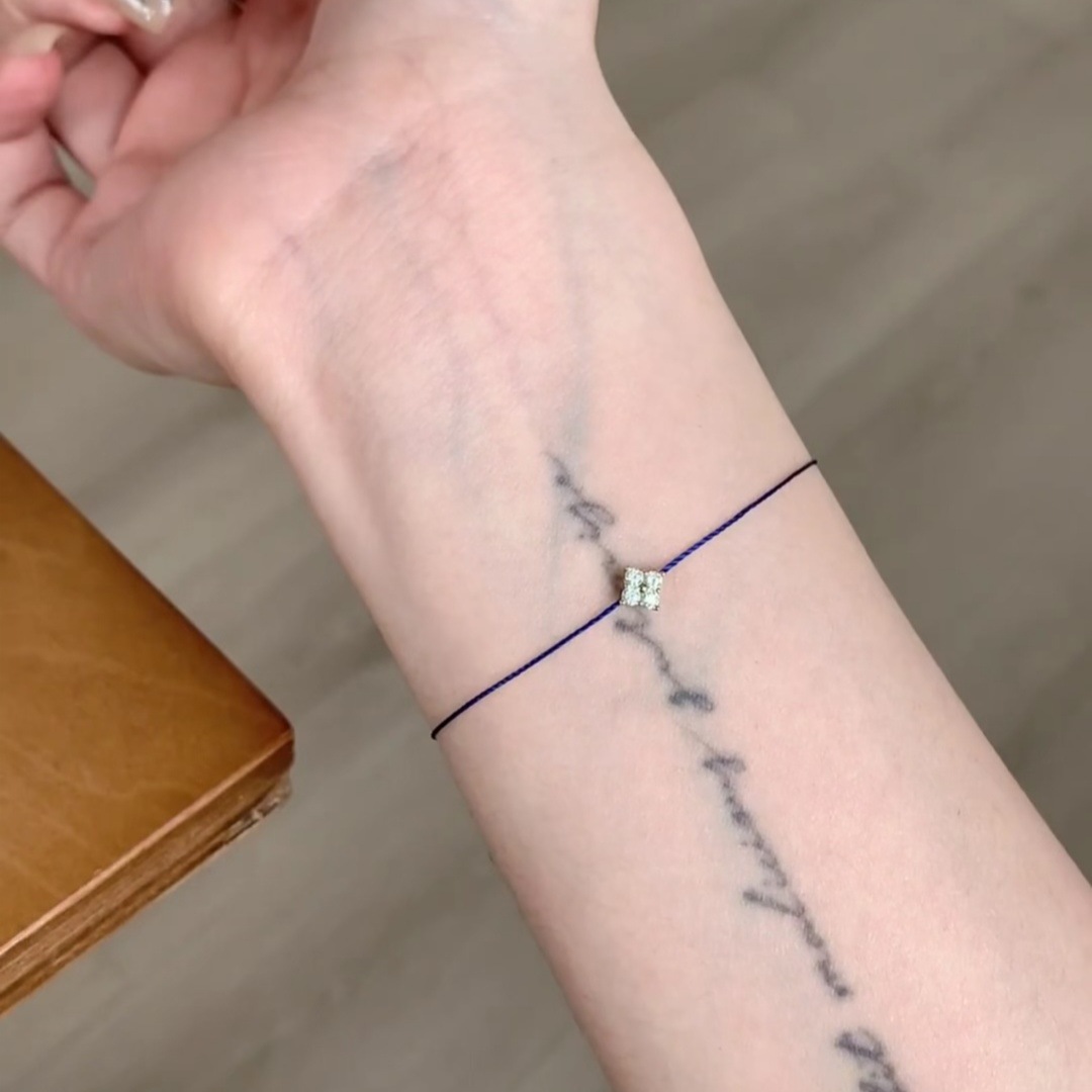 法国红绳爆闪满钻四叶草锆石手链女款手工编织超细高级感闺蜜手绳