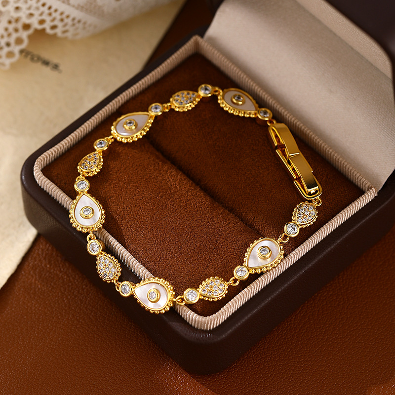 爆款贝母情侣锆石手链女生轻奢高级感恶魔之眼手饰品简约真金电镀