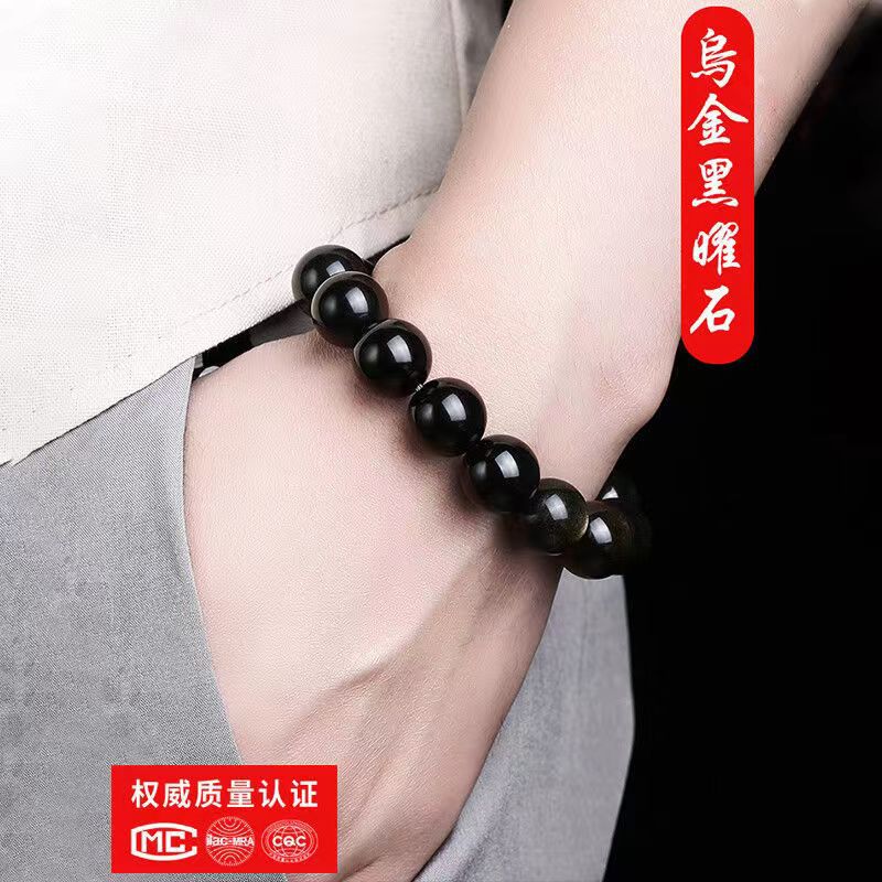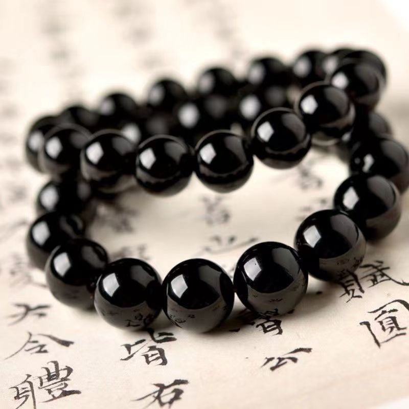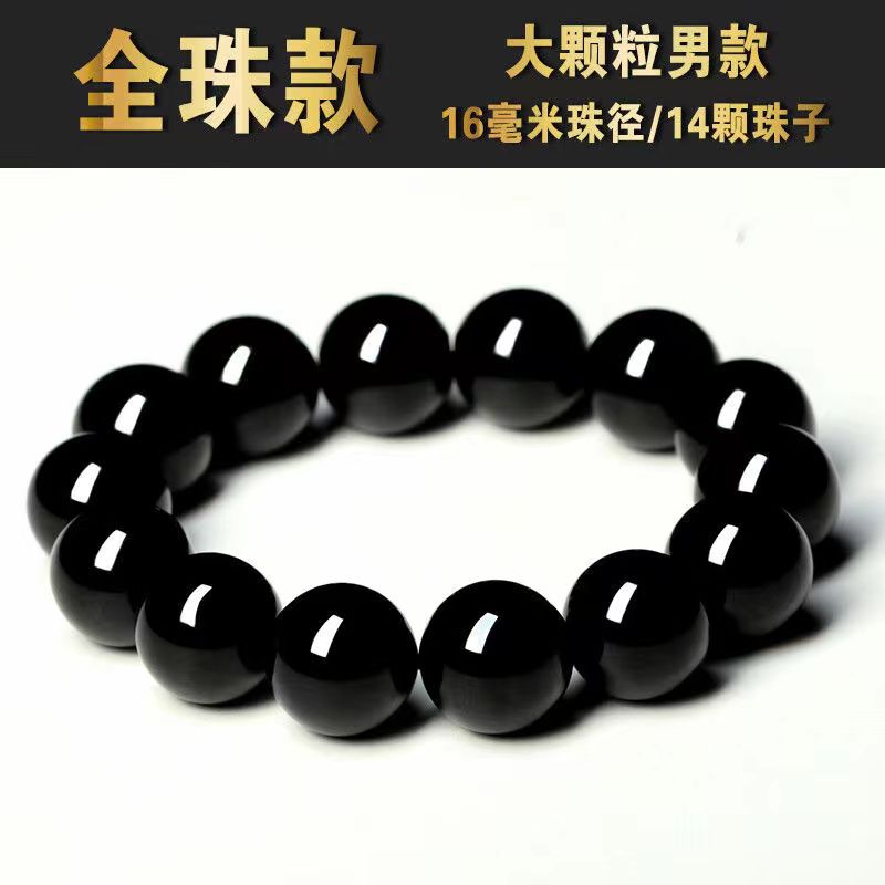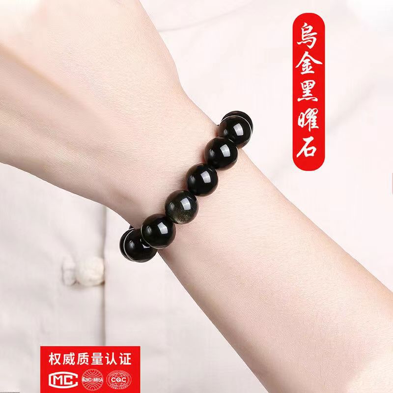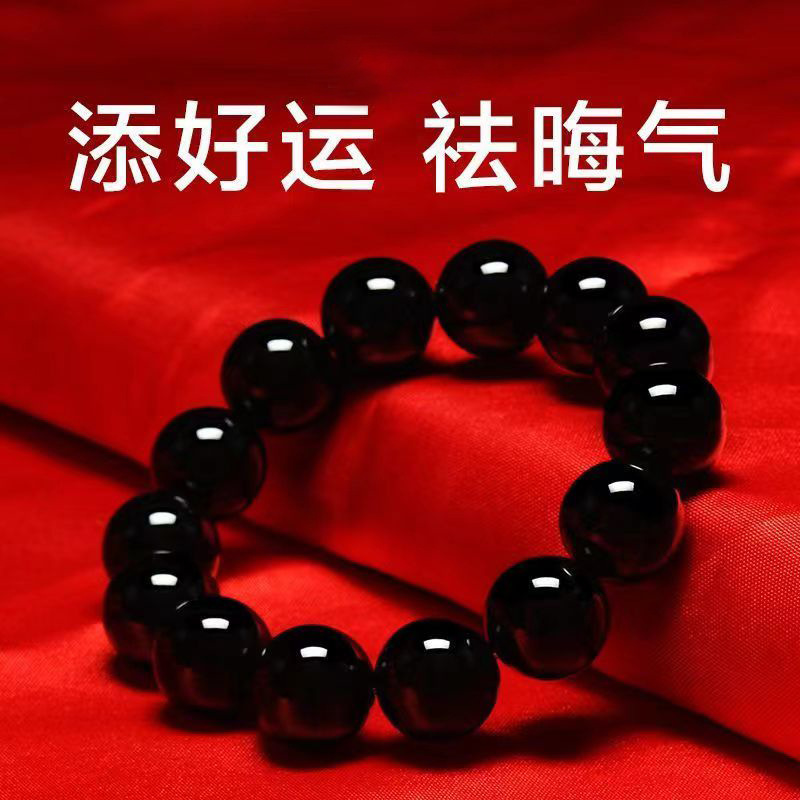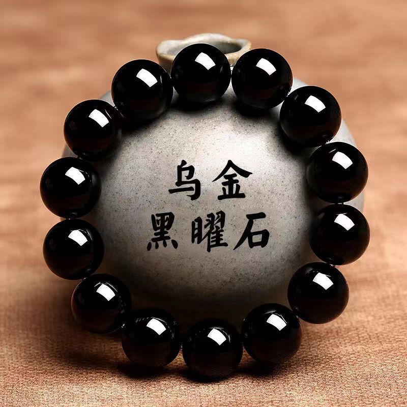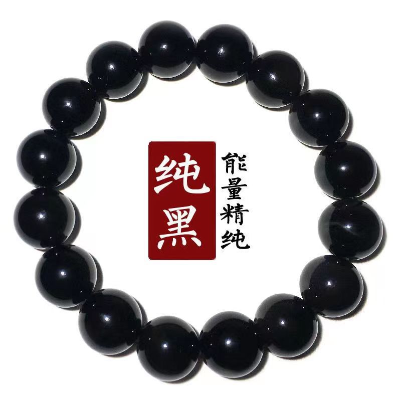 黑耀石黑色珠子手链男潮串珠收藏级乌金散珠仿黑曜石单圈手串男女