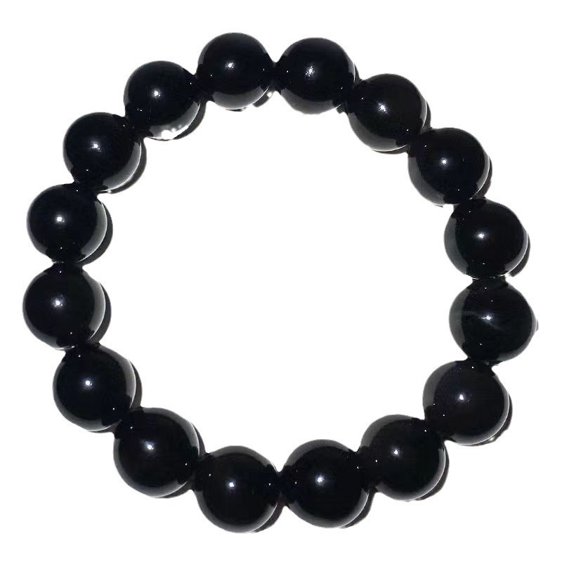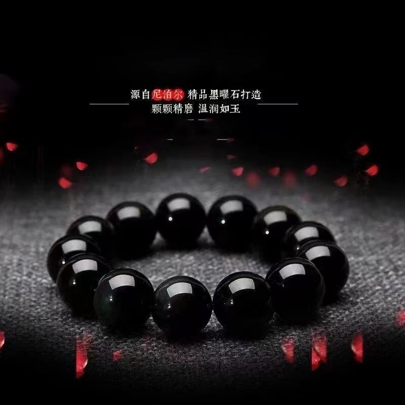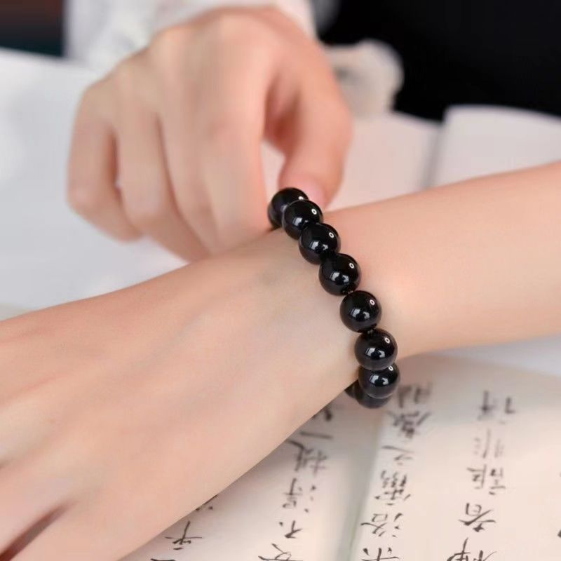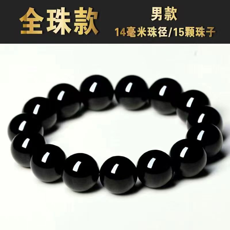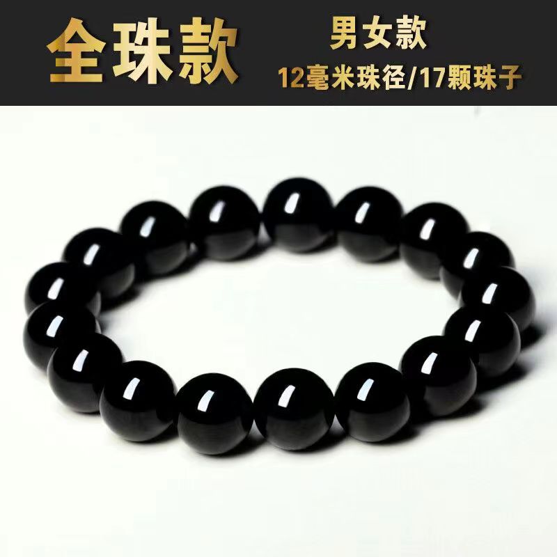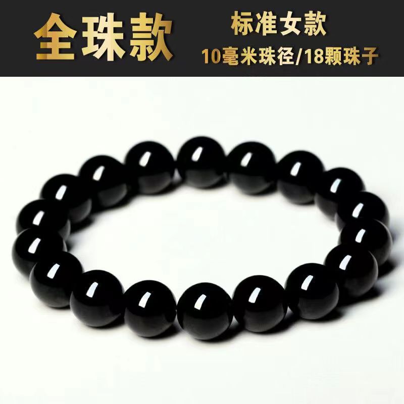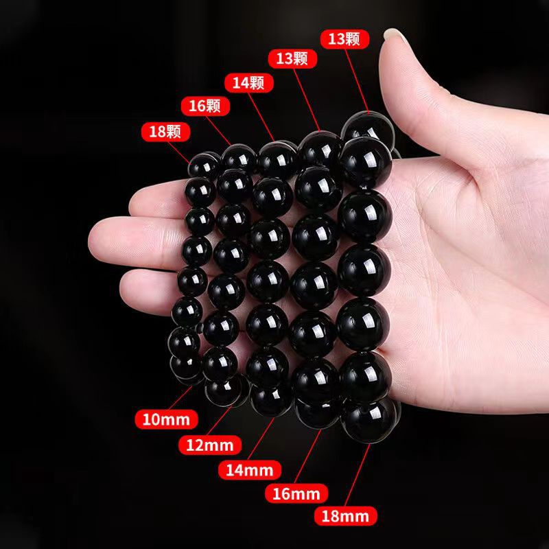 黑耀石黑色珠子手链男潮串珠收藏级乌金散珠仿黑曜石单圈手串男女