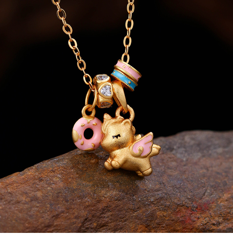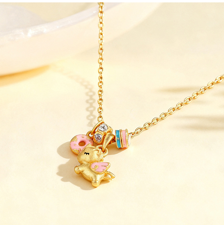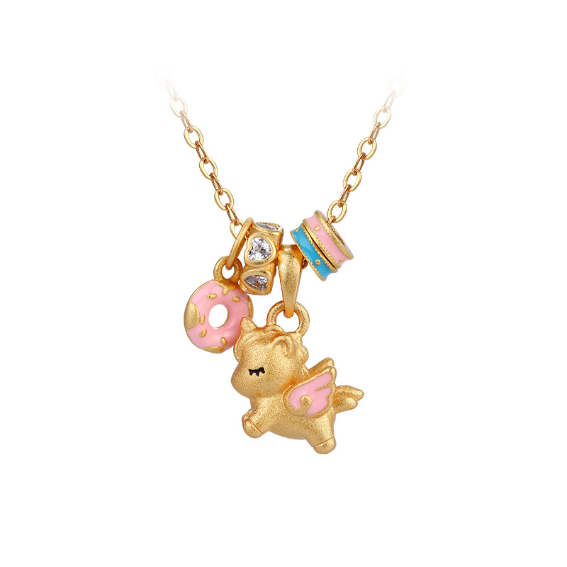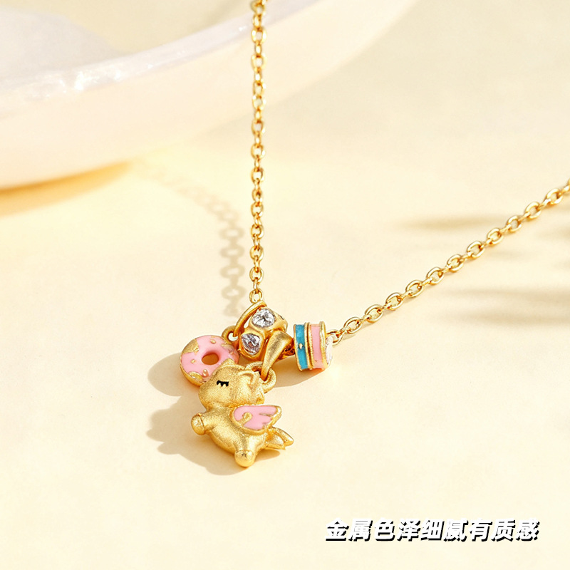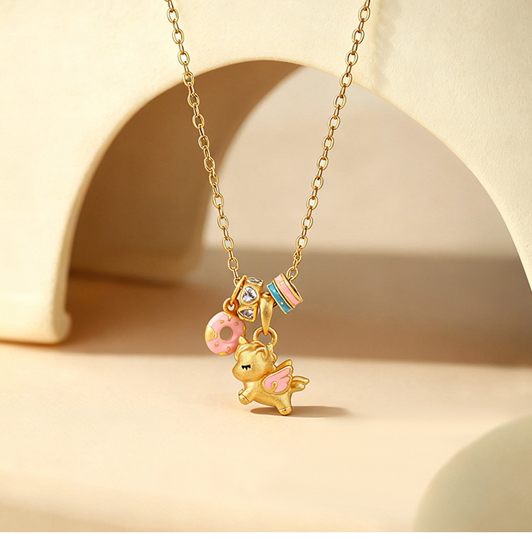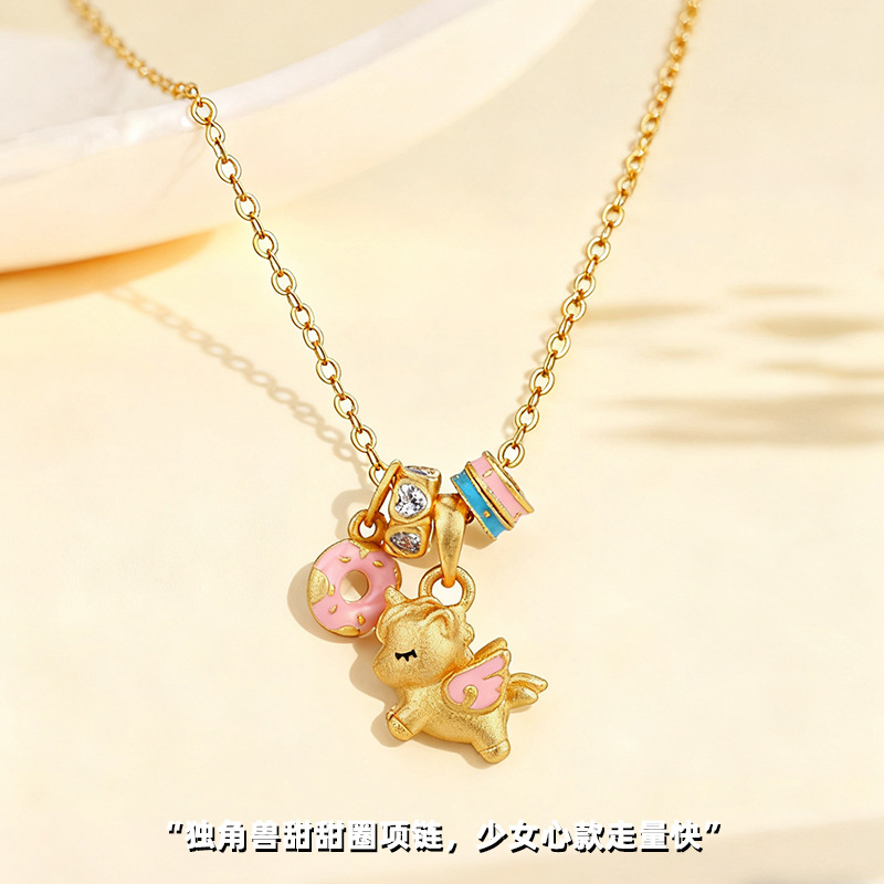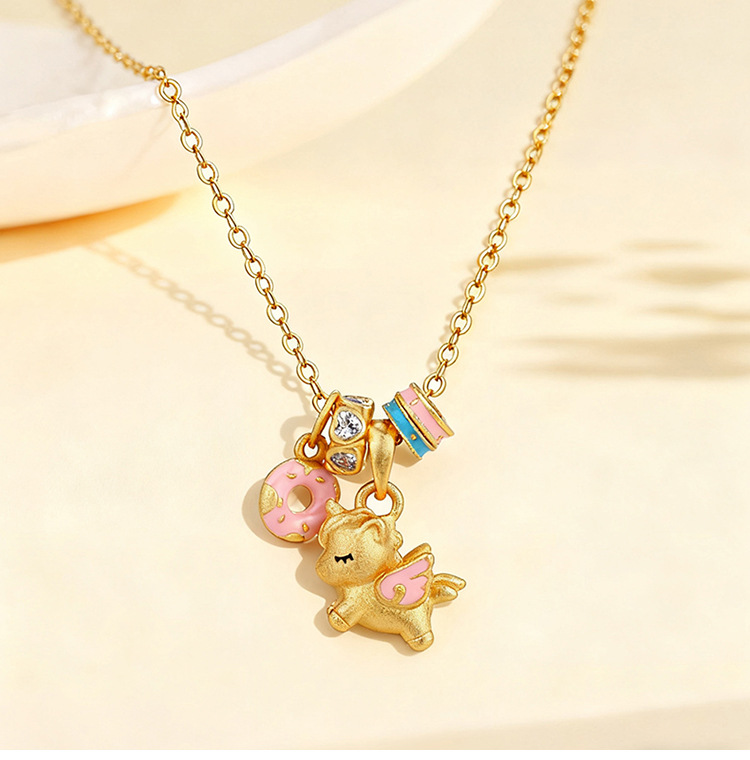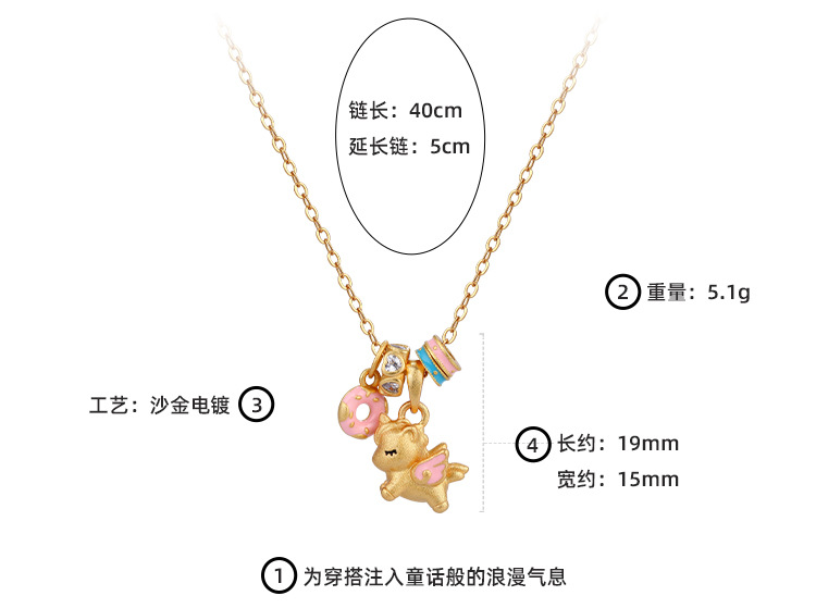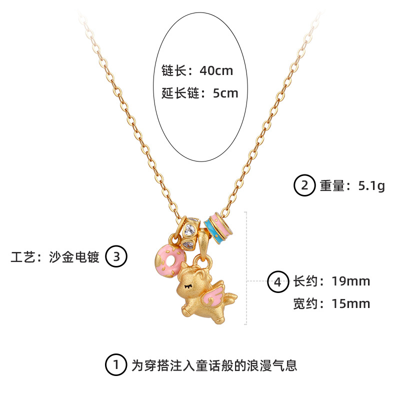 沙金电镀珐琅甜梦独角兽项链配饰女吊坠高级感轻奢小众可爱锁骨链