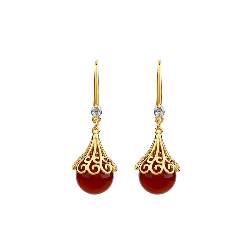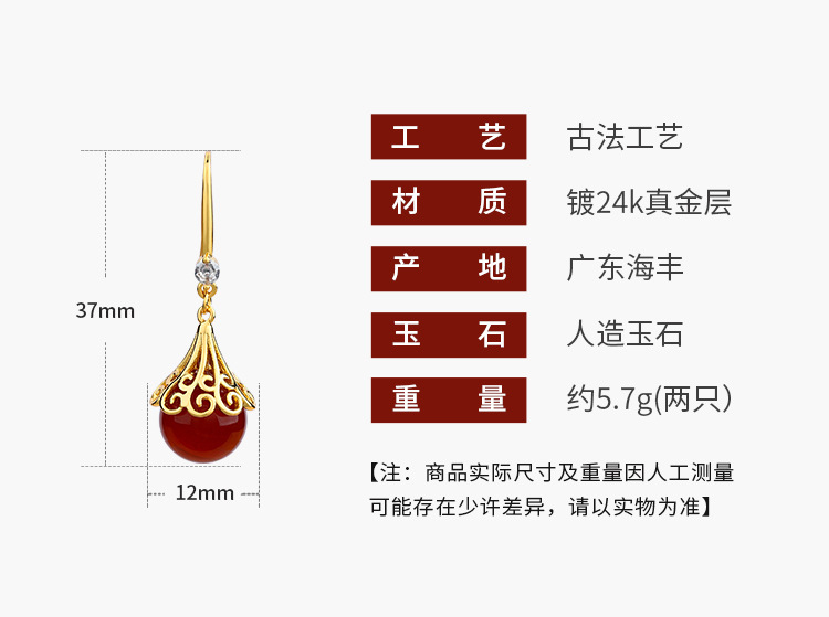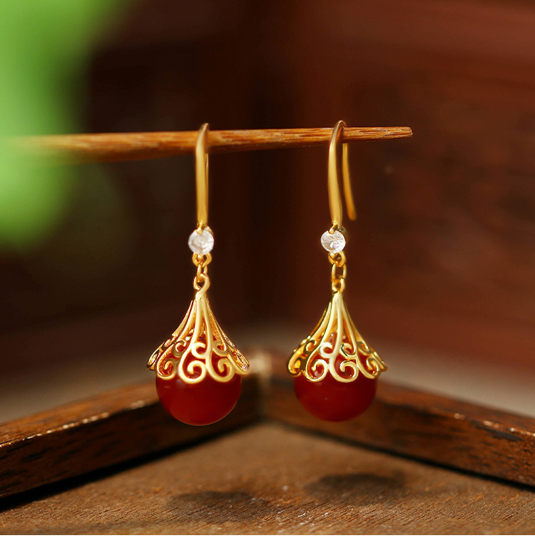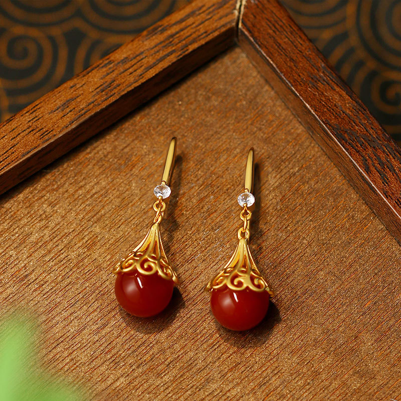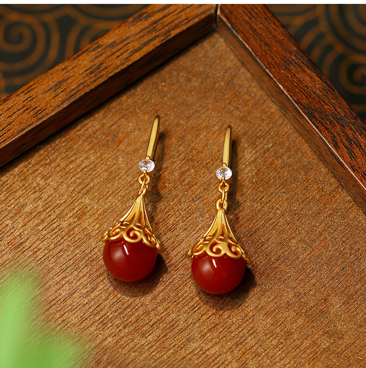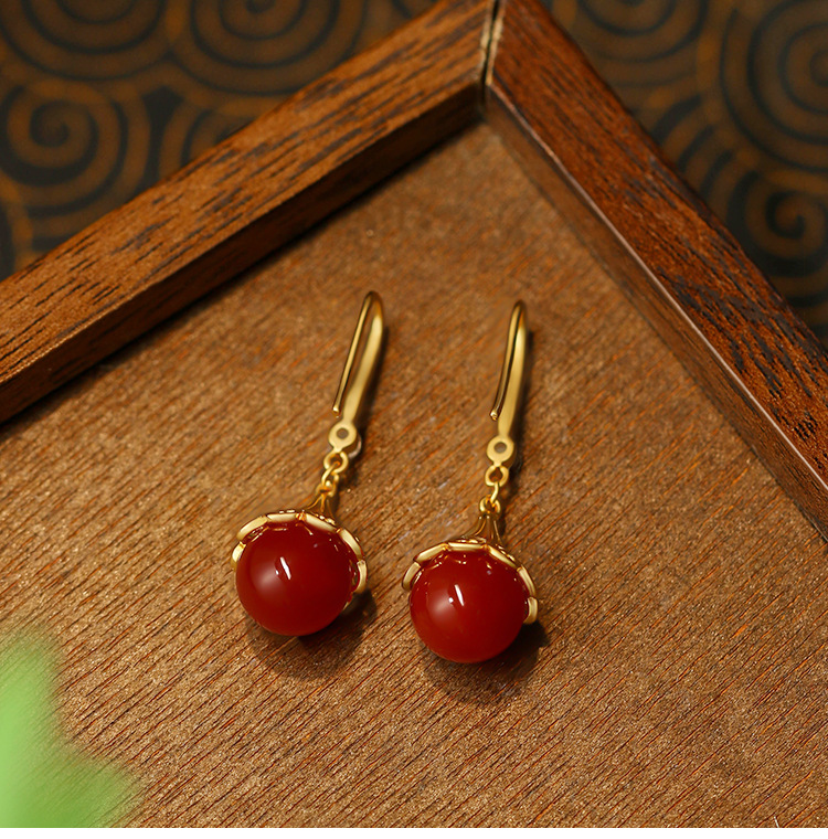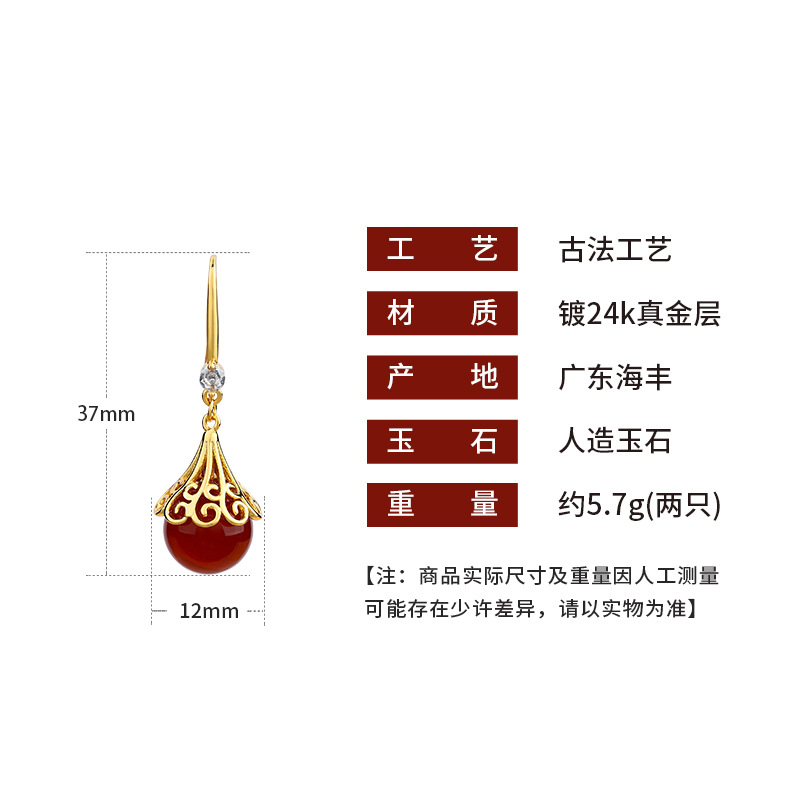 新中式喜庆红色小香风高级感珠珠耳环轻奢时尚气质旗袍古装耳饰品
