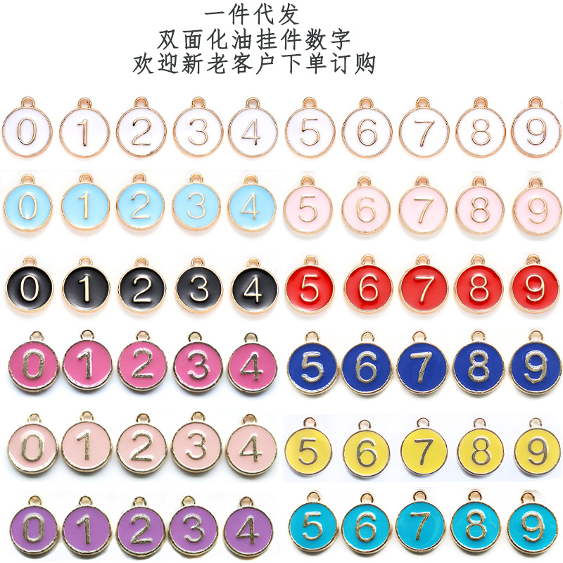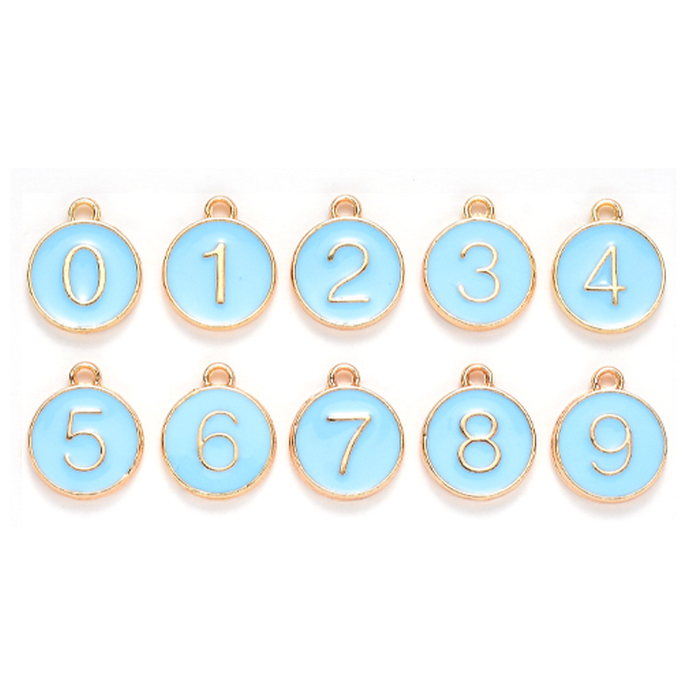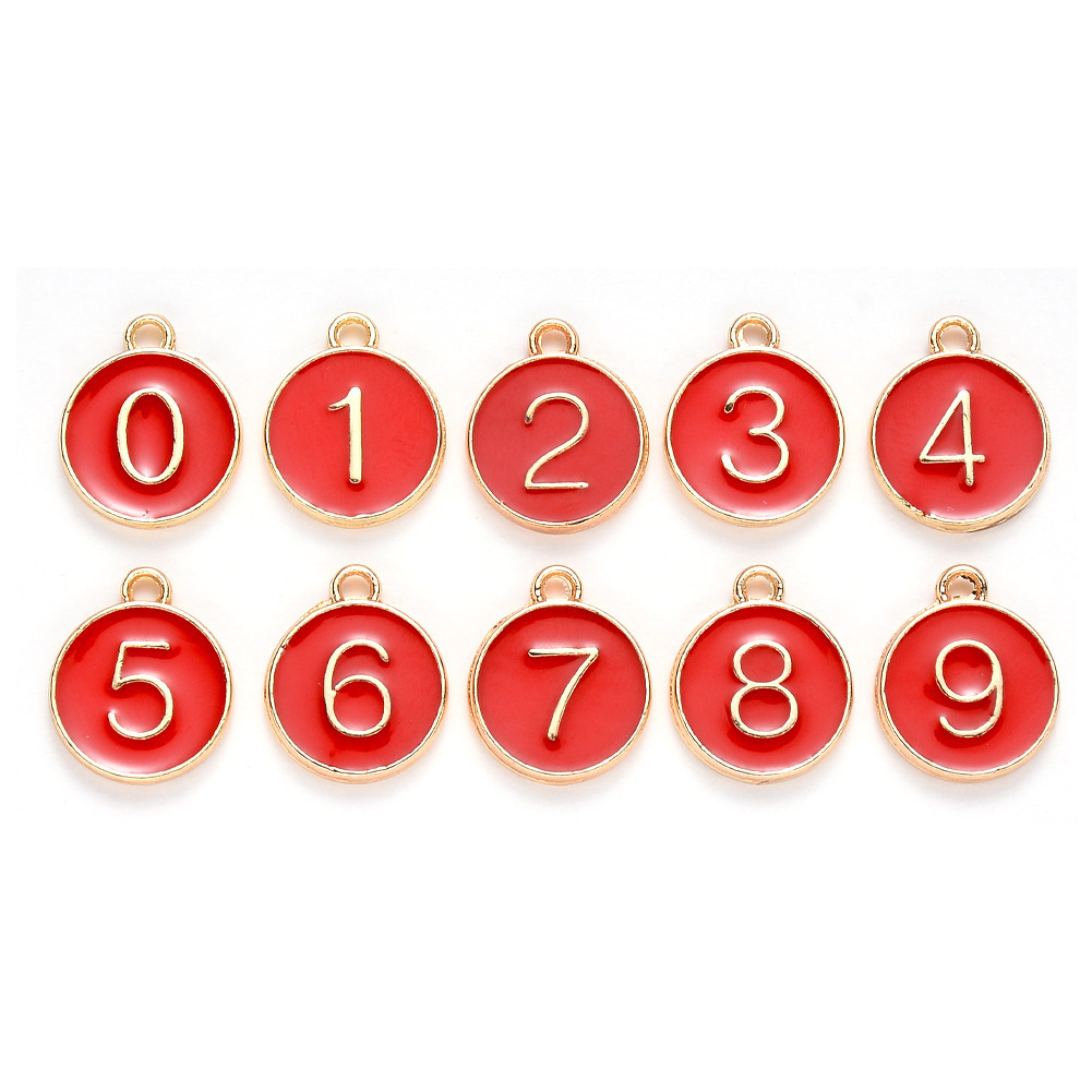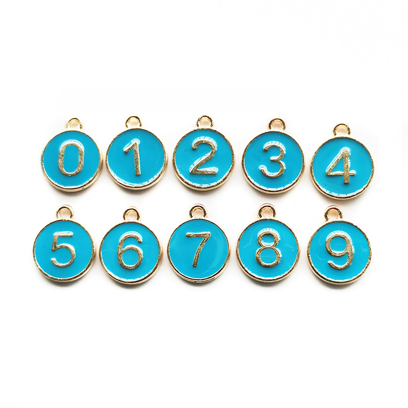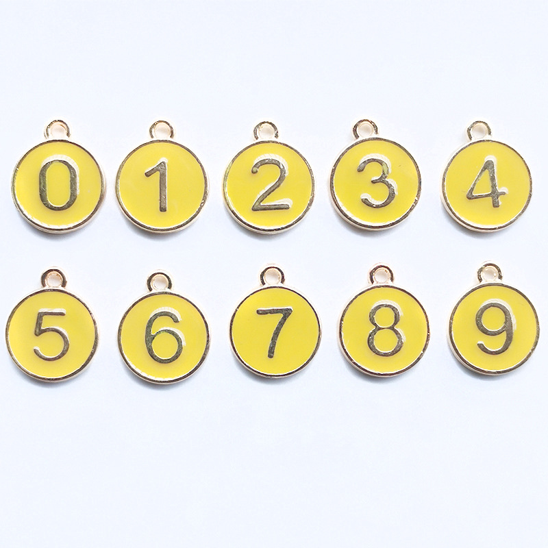 KC金色滴油合金吊坠数字0-9适用手链脚链项链首饰配件批发饰品