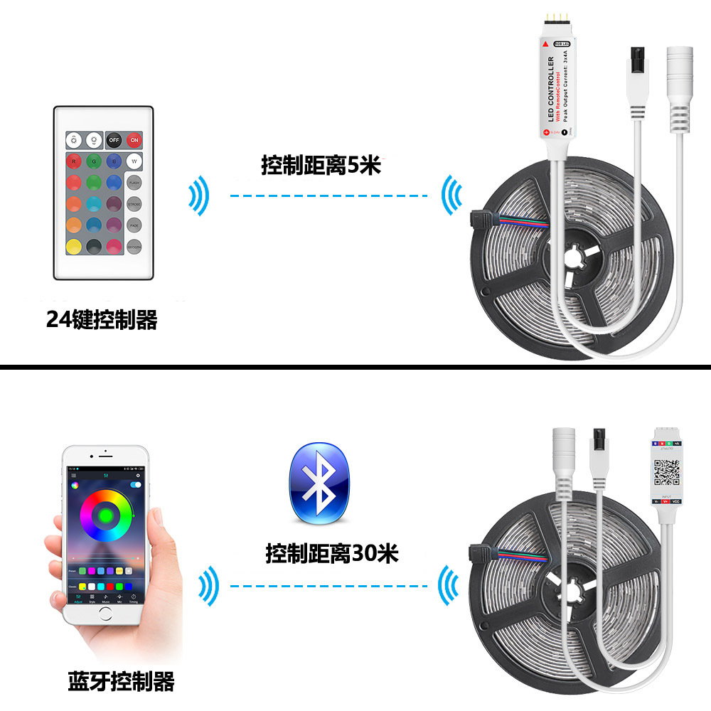 LED灯带2835/5050RGB防水灯条红外蓝牙WiFi控制器套装亚马逊热卖