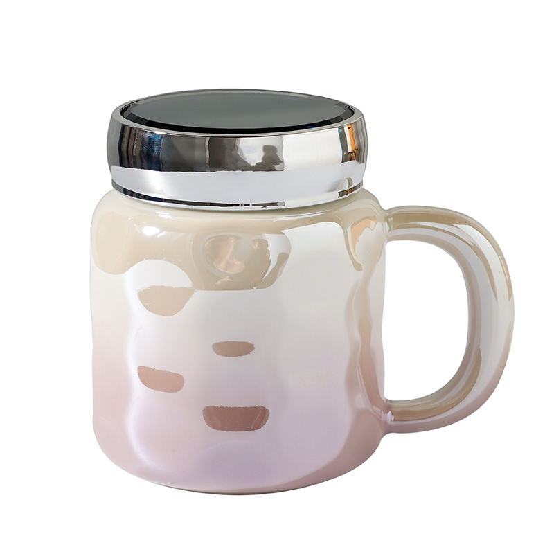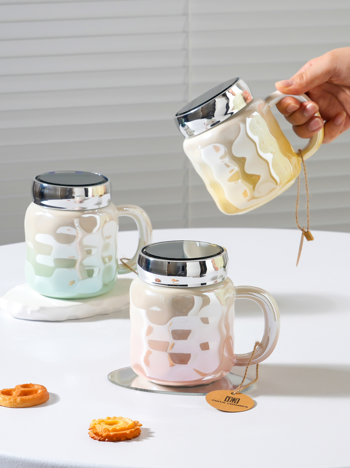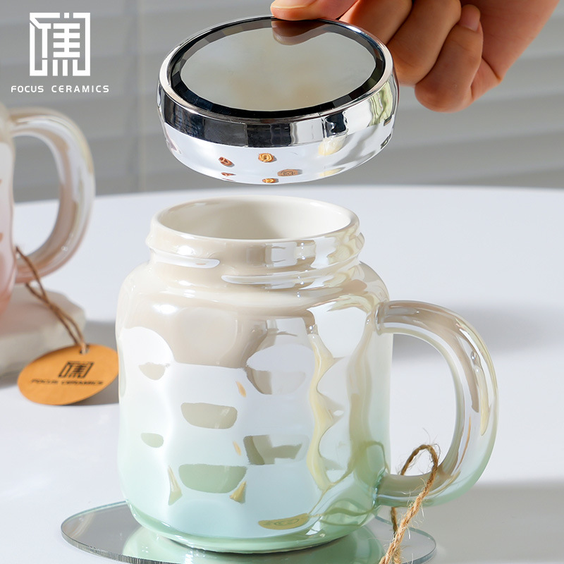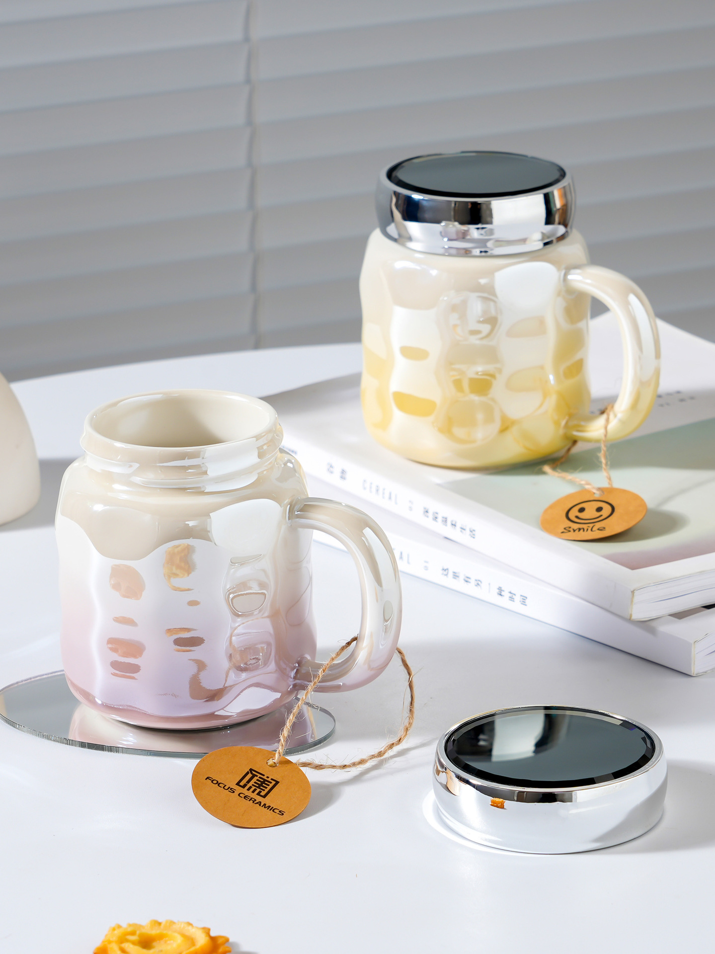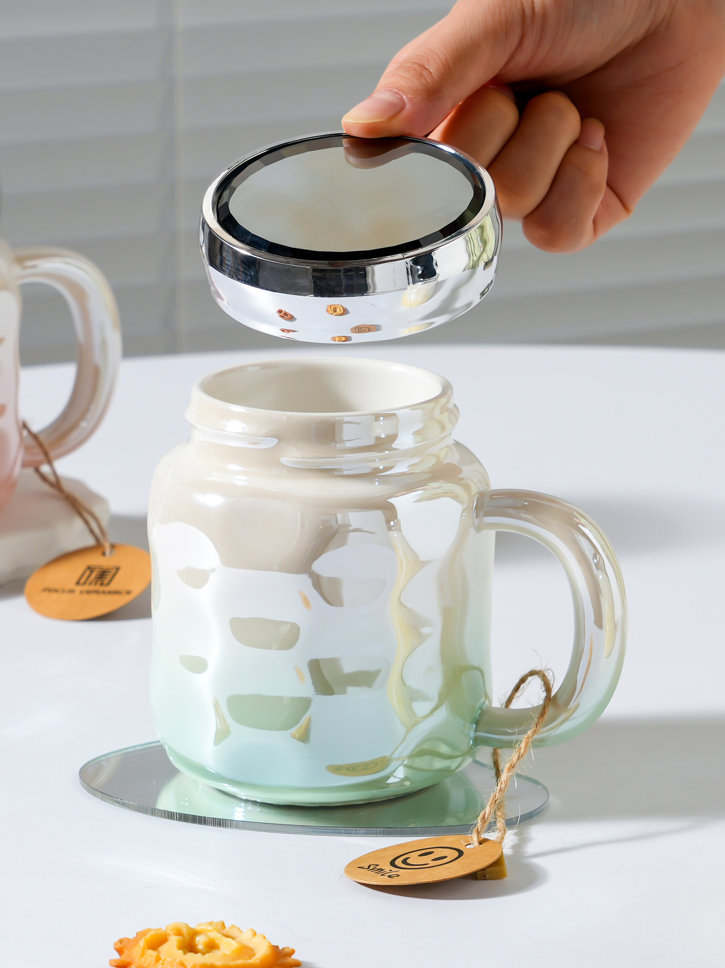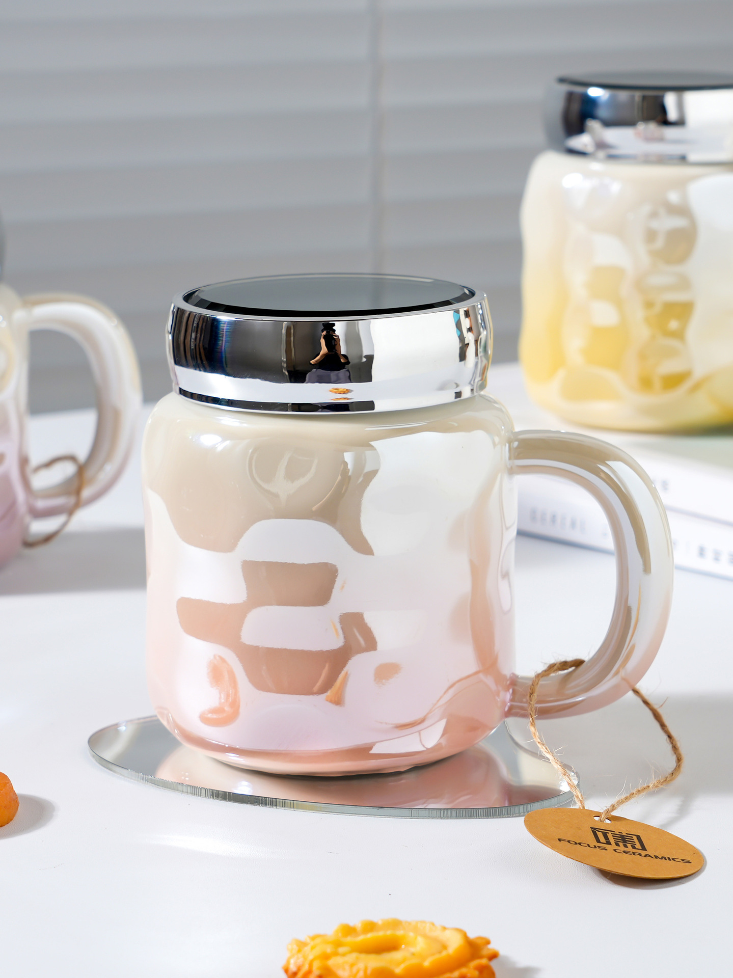 珠光陶瓷保温杯带镜面盖轻奢高颜值女生家用马克杯创意办公室水杯
