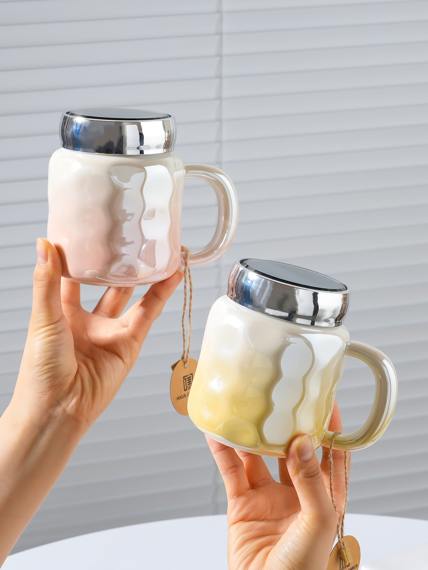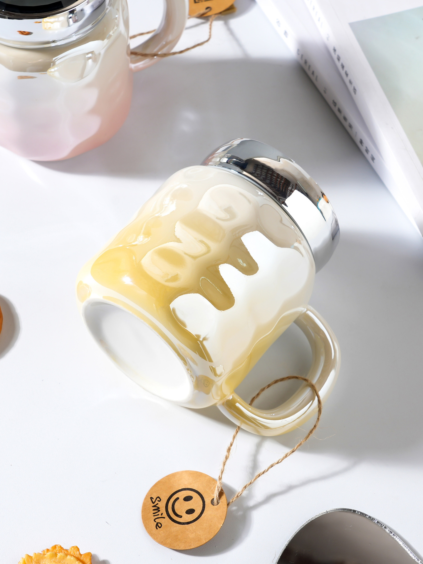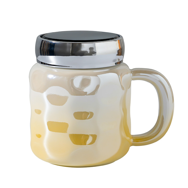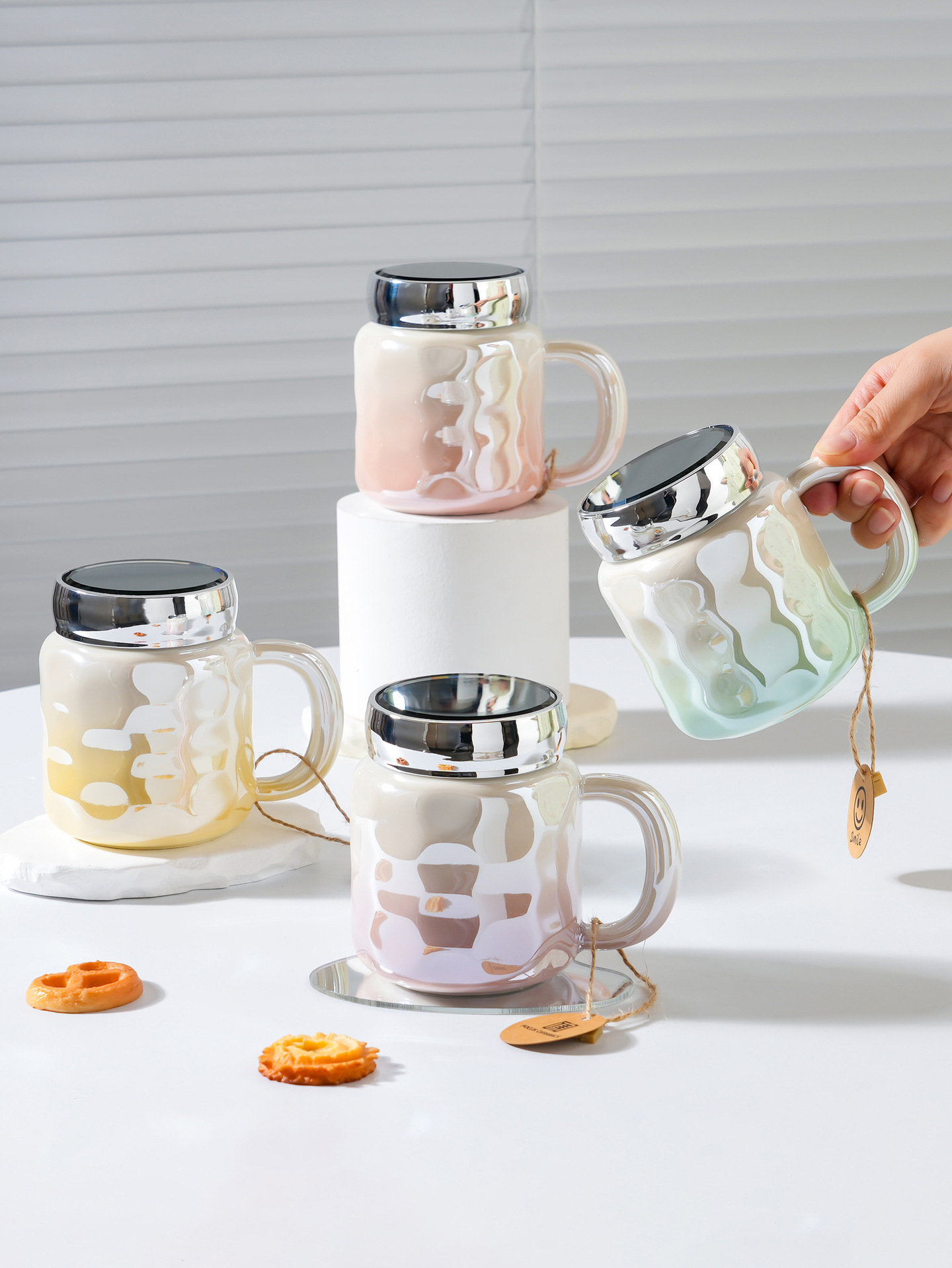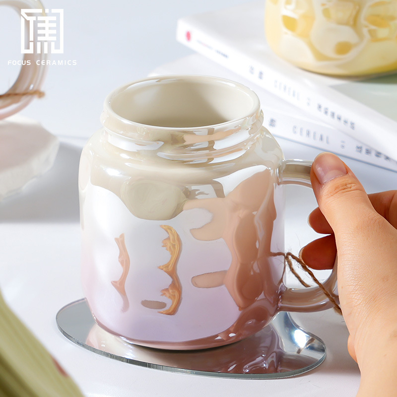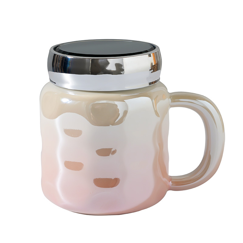 珠光陶瓷保温杯带镜面盖轻奢高颜值女生家用马克杯创意办公室水杯