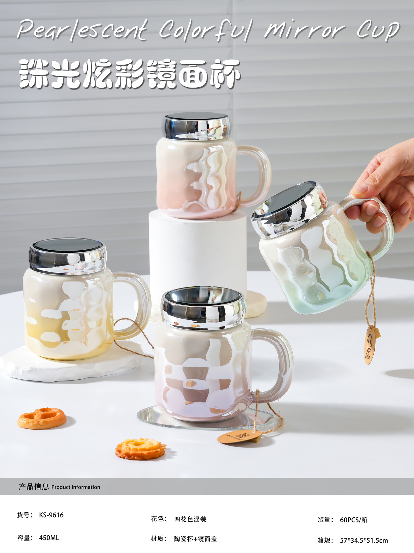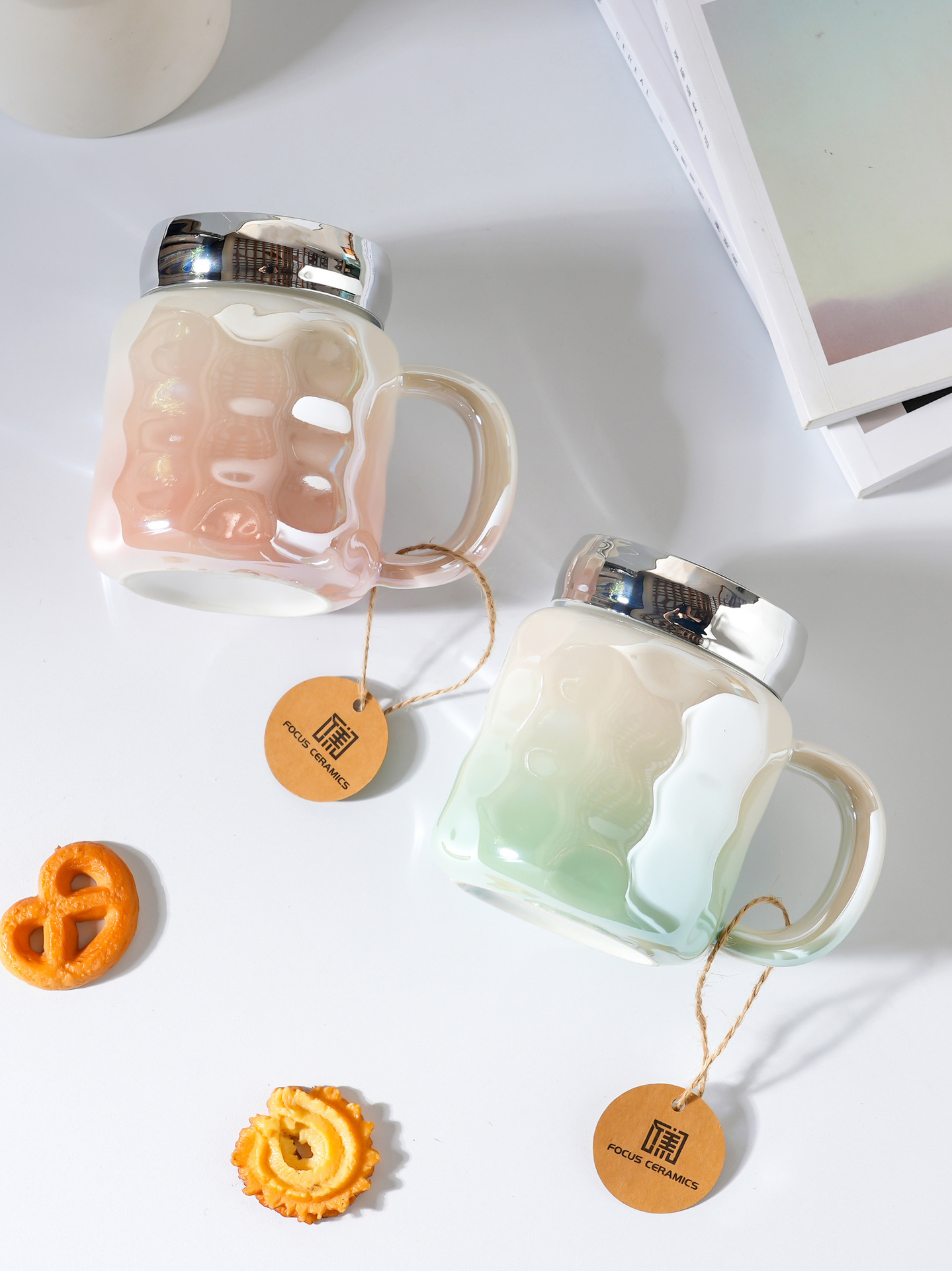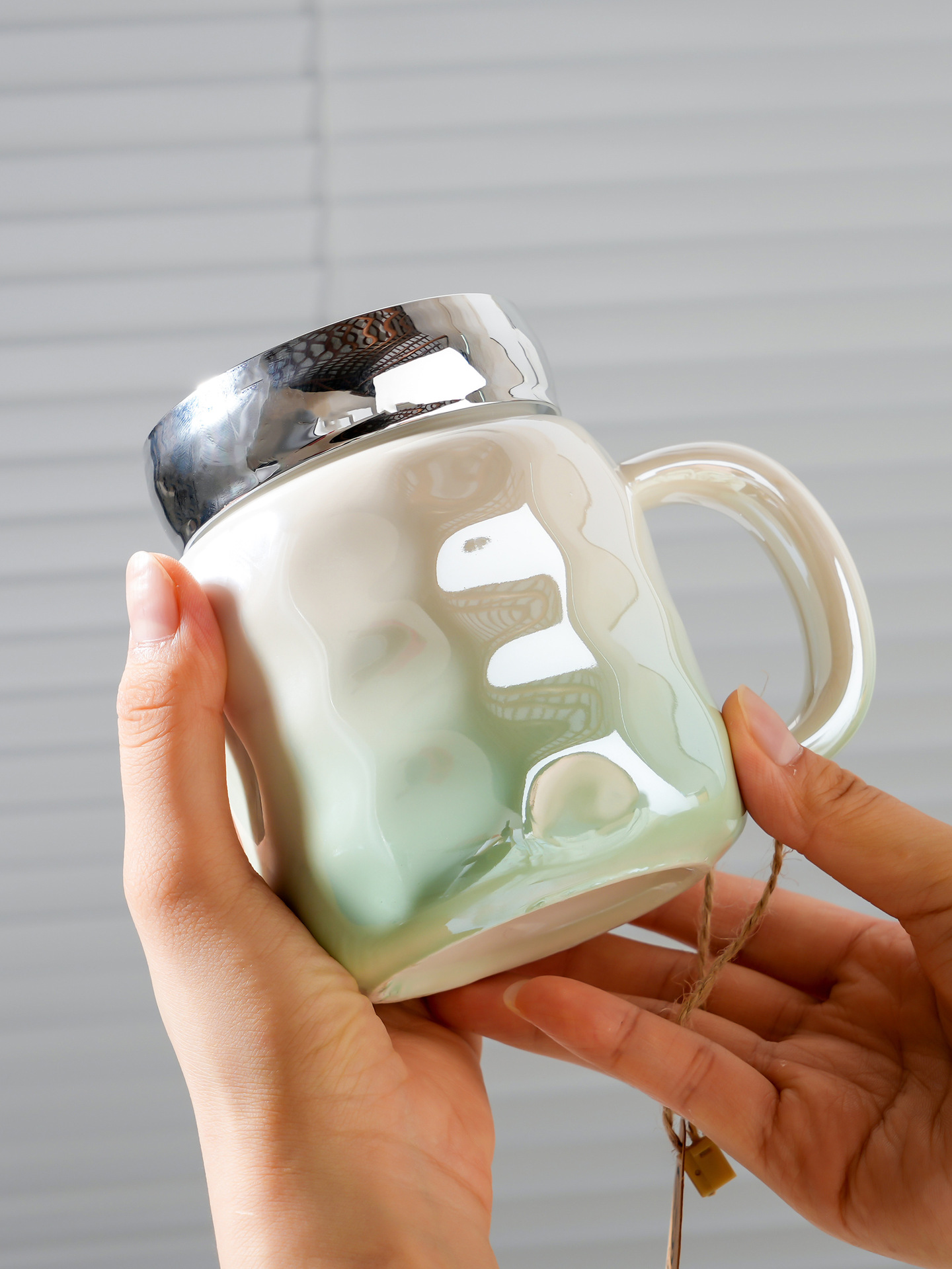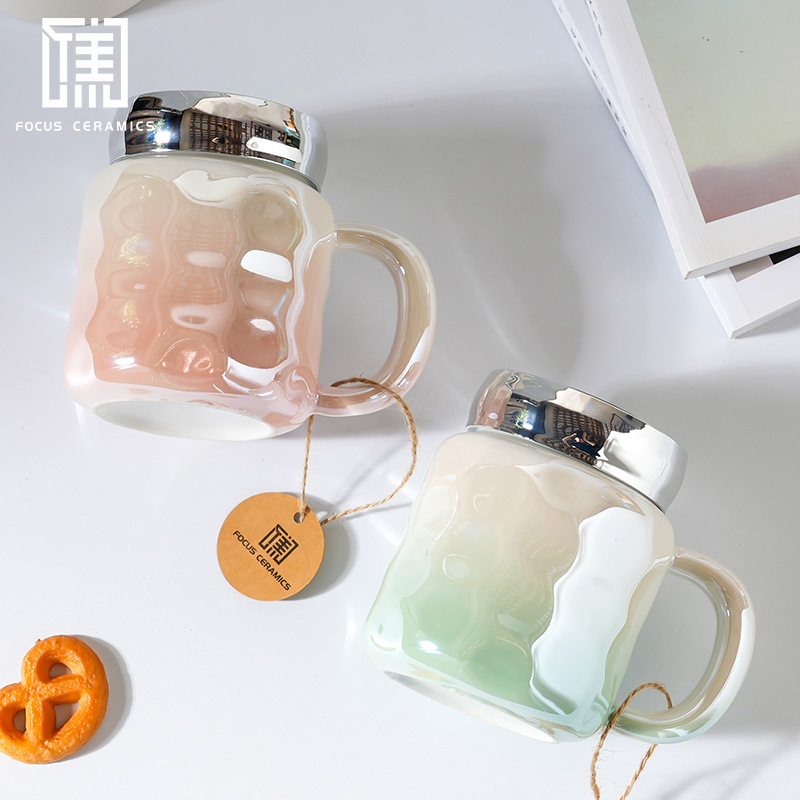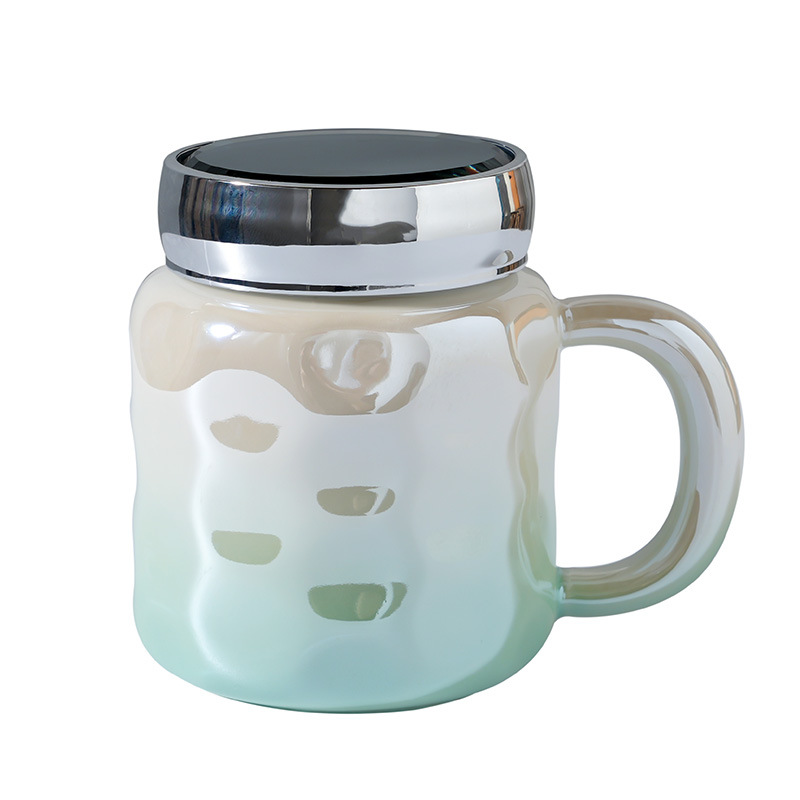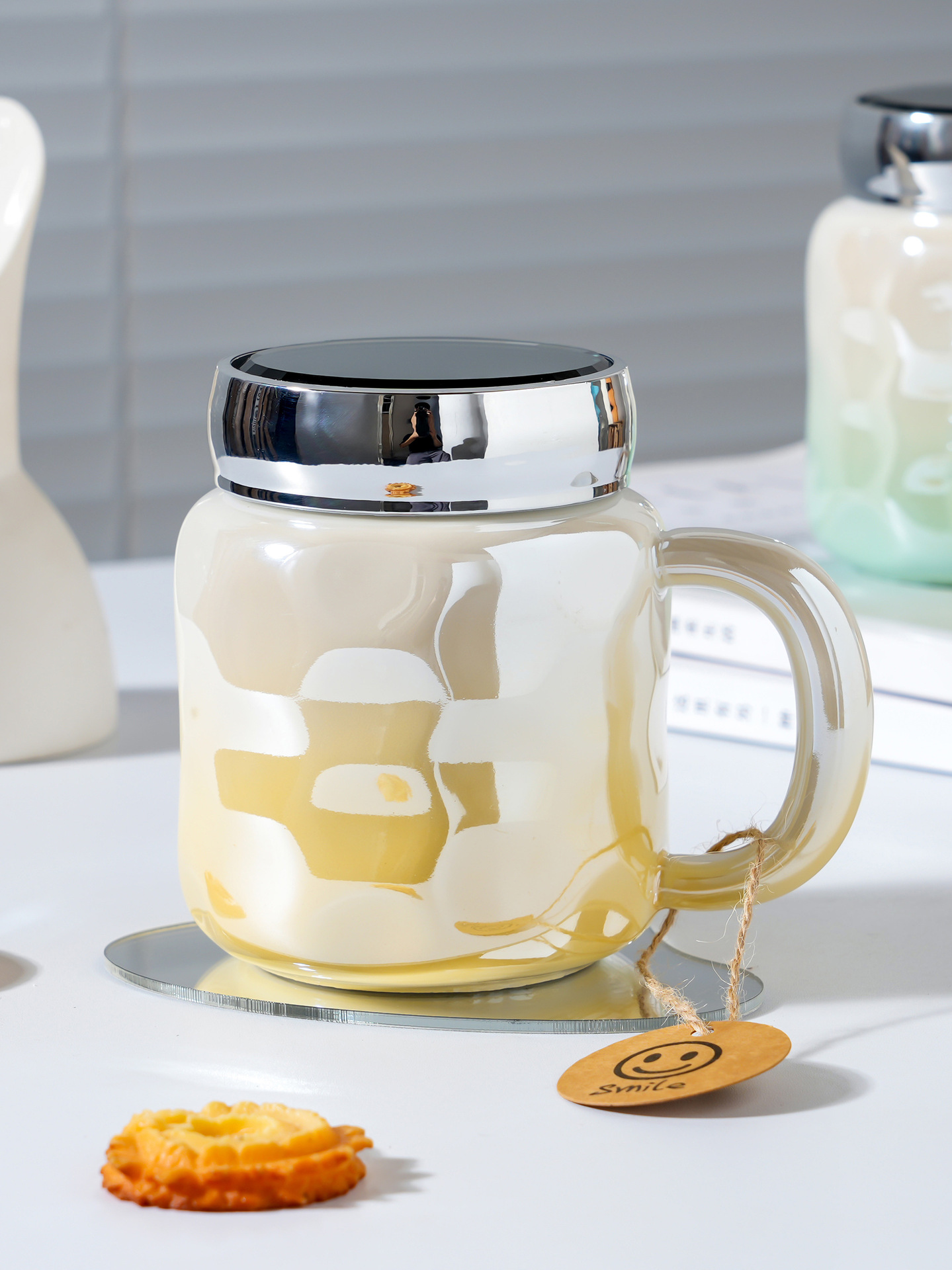 珠光陶瓷保温杯带镜面盖轻奢高颜值女生家用马克杯创意办公室水杯