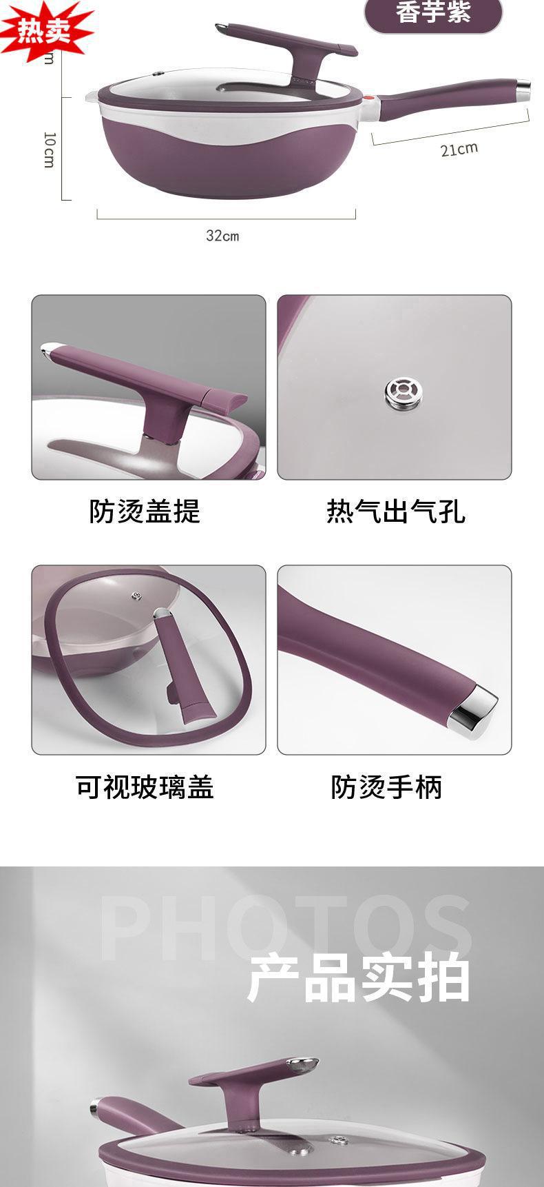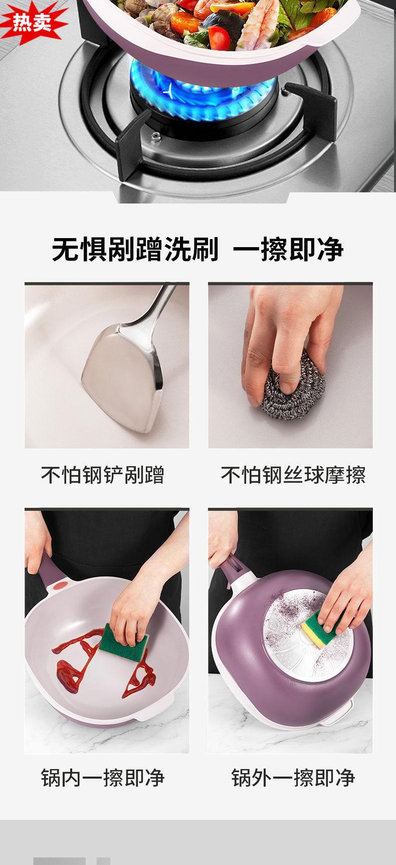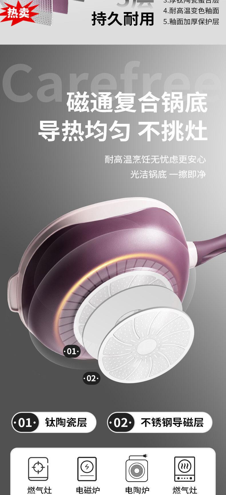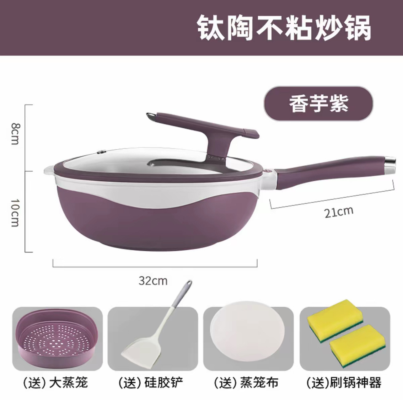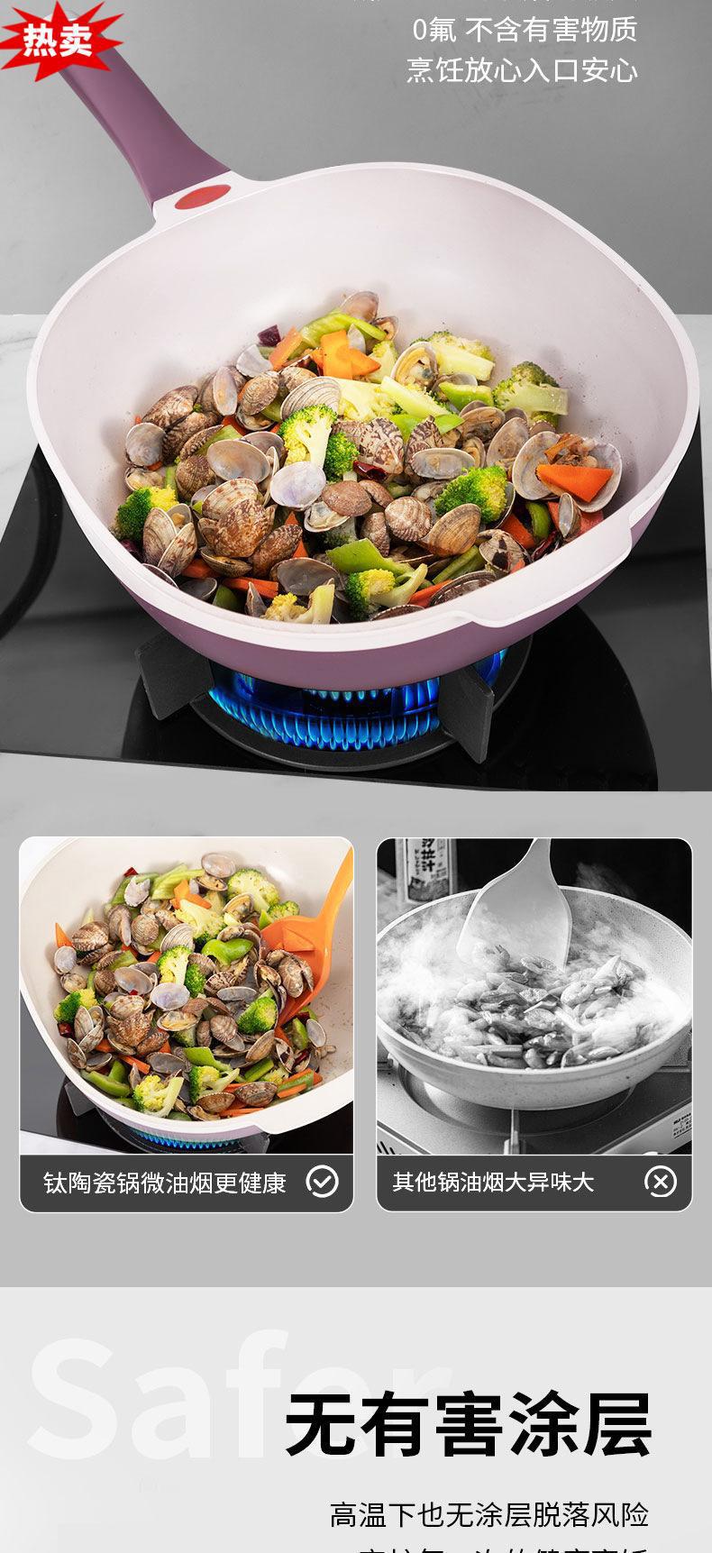 新款钛陶瓷轻油少烟多功能蒸煮两用不粘炒锅电磁炉煤气家用煎炒锅
