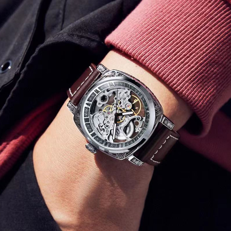 外贸厂家手表男机械镂空 潮流男士全自动机械表 夜光小众雕花腕表