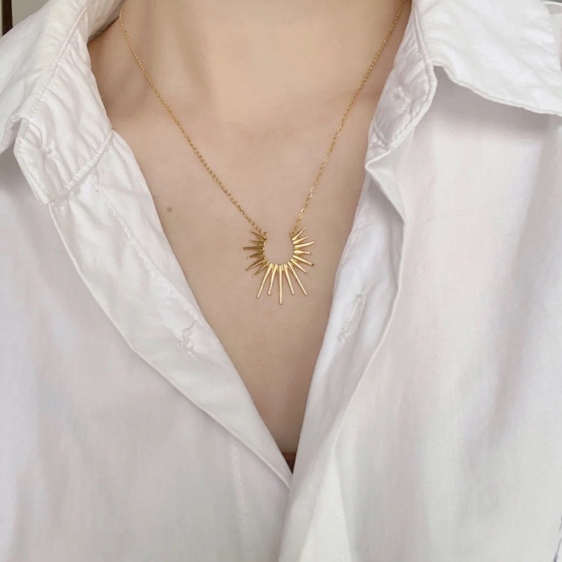 欧美ins冷淡风太阳锁骨链子 高级感小众设计男女百搭钛钢吊坠项链
