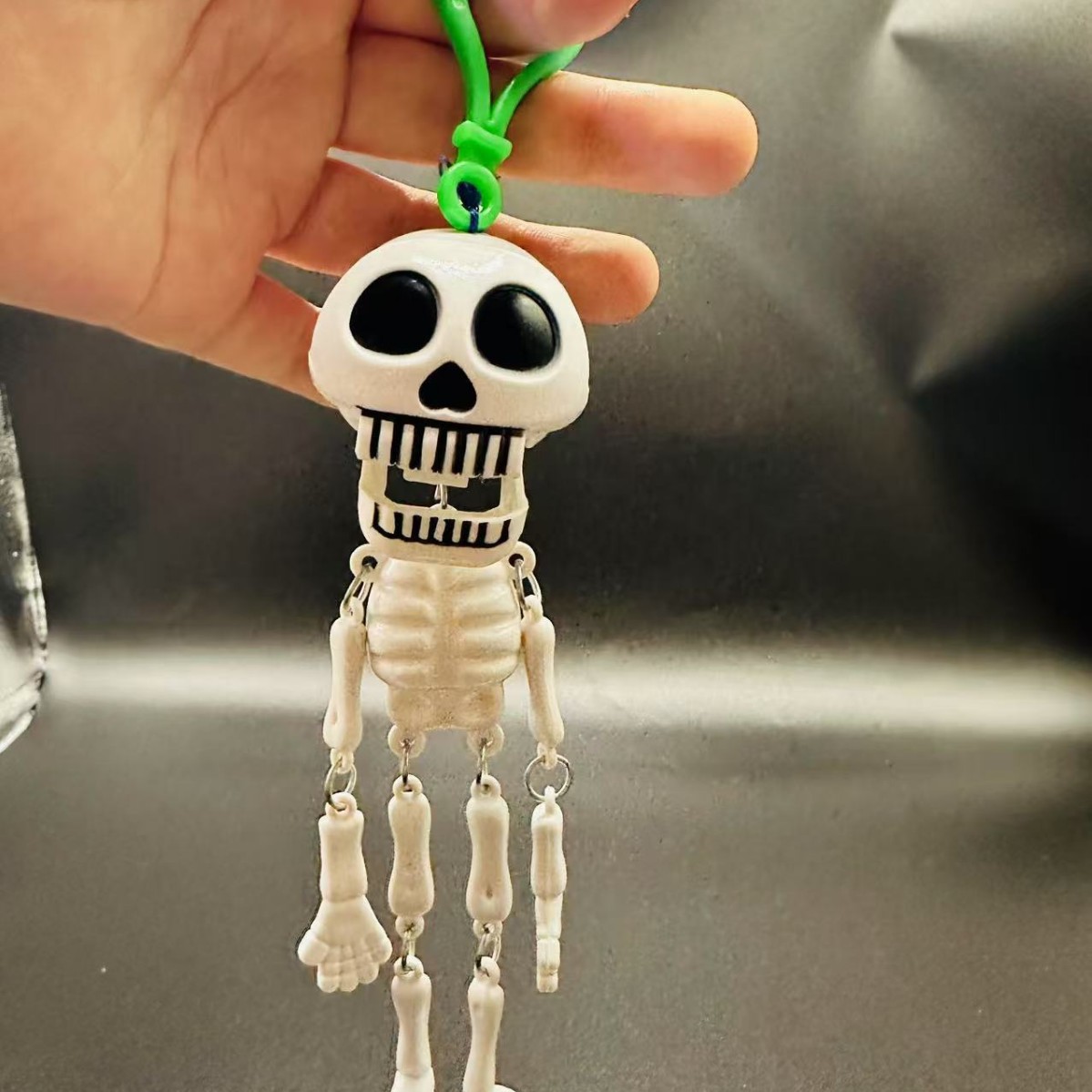 现货跨境爆款趣味拉线骷髅头钥匙扣万圣节搞怪拉线骷髅骨架包包挂