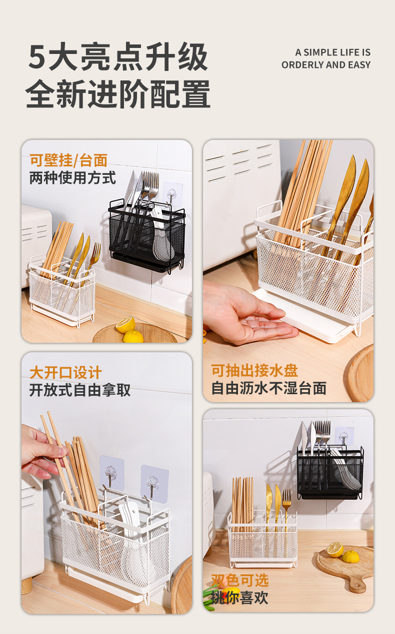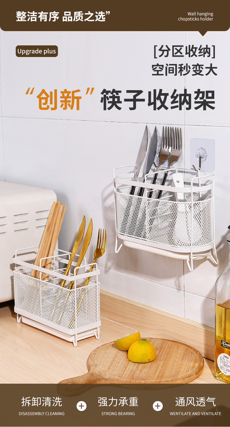 厨房筷子筒桌面高颜值圆形方形壁挂筷笼锅铲勺子通风刀叉收纳架