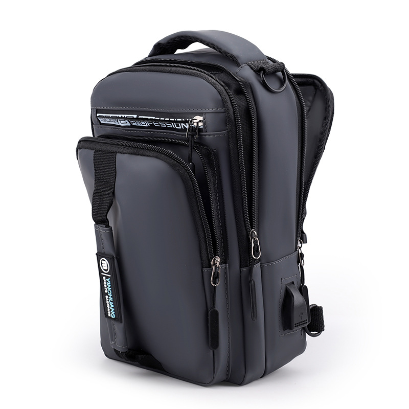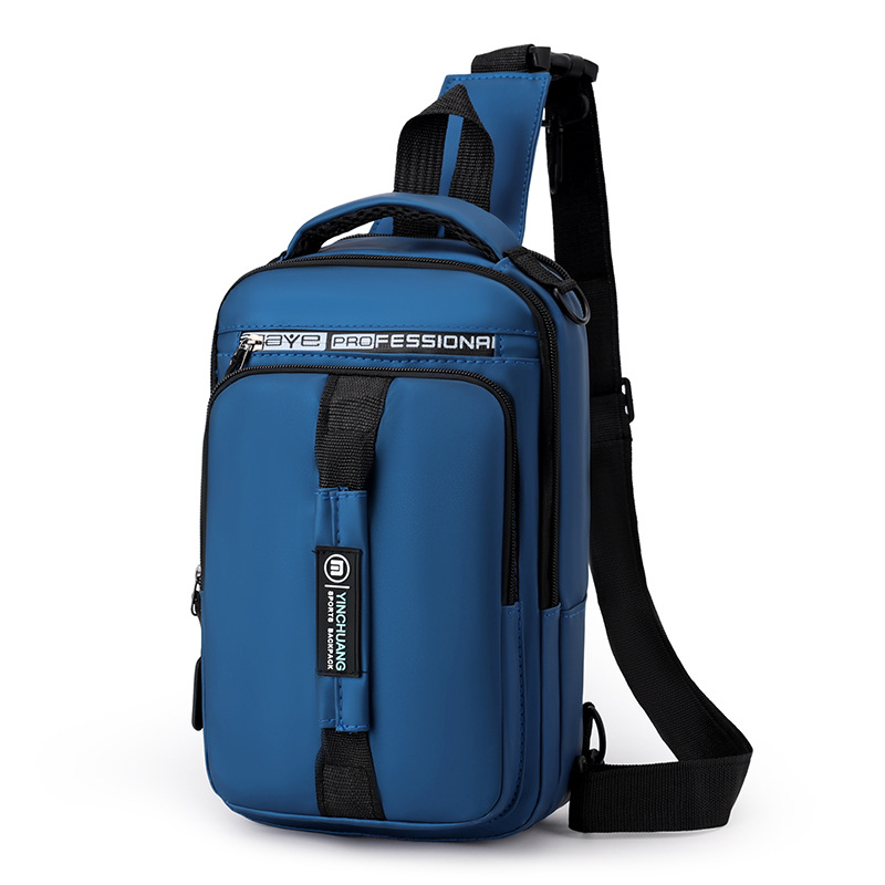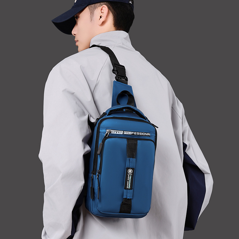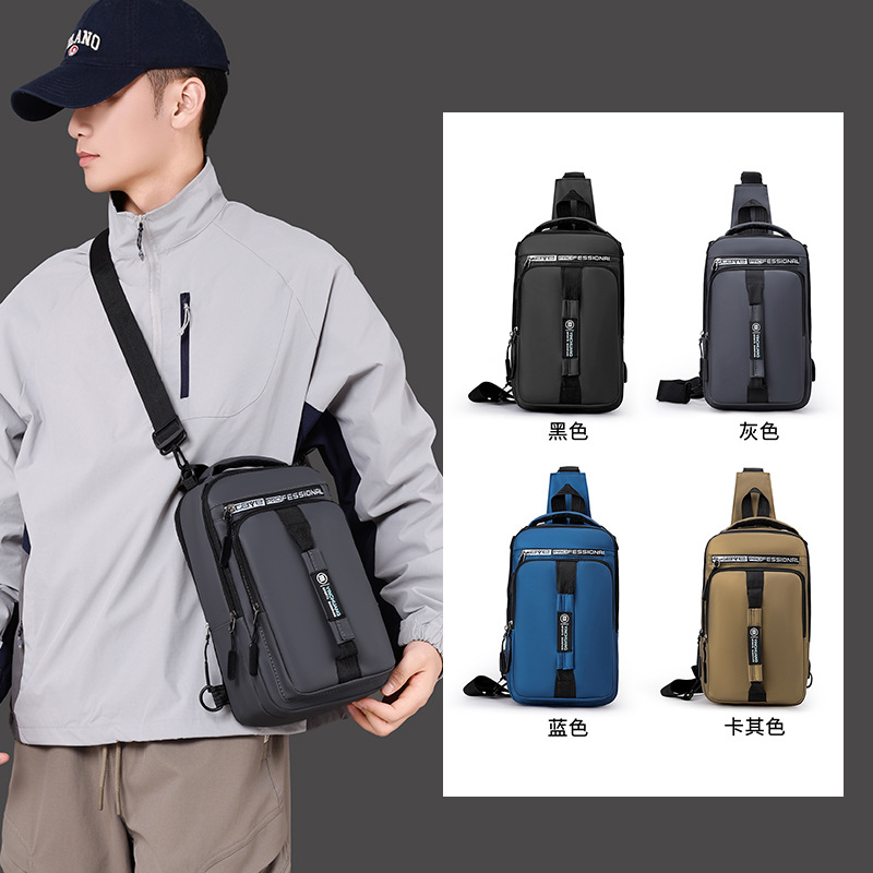 纯色牛津布挎小包男士单肩斜挎包商务休闲通勤胸前包usb双肩包