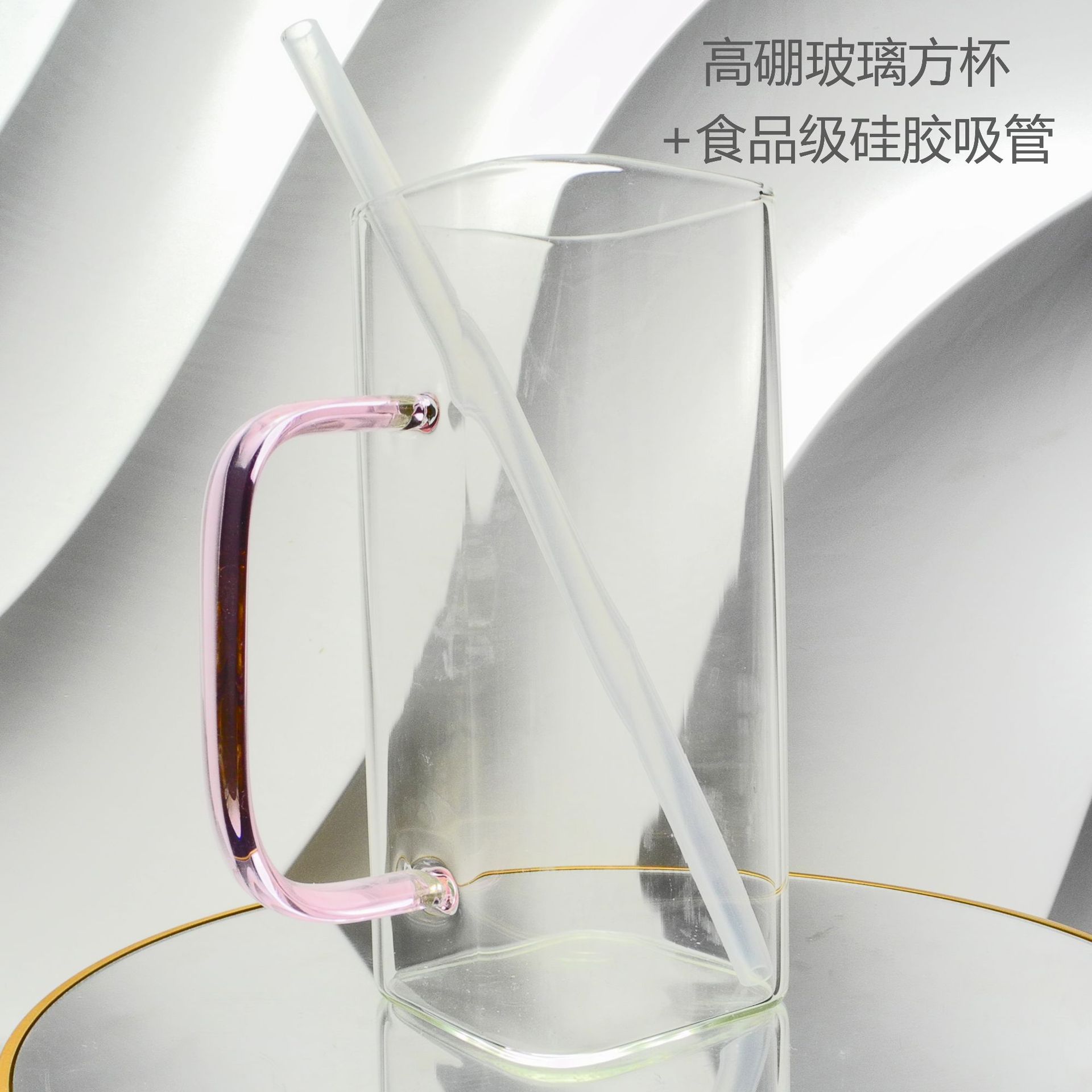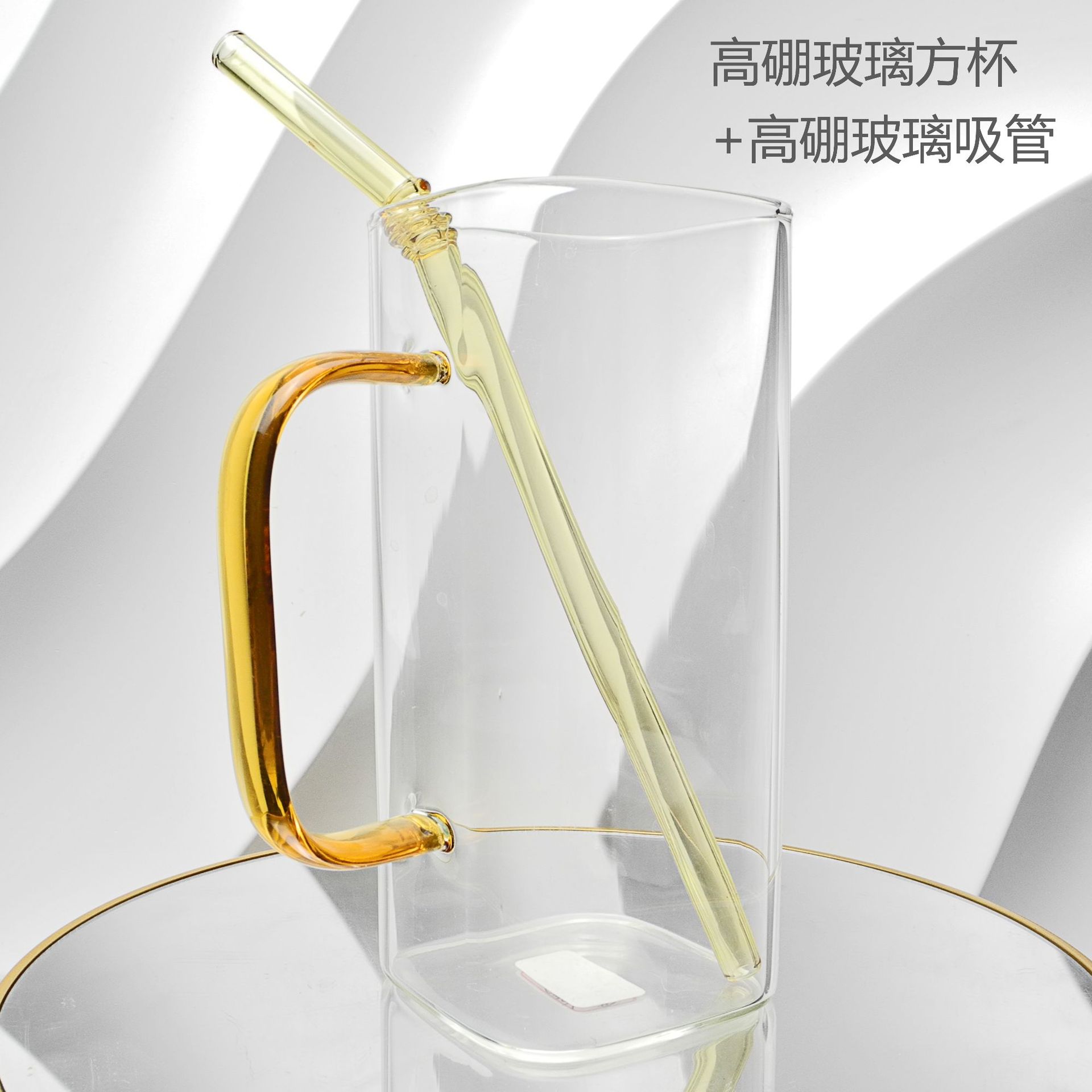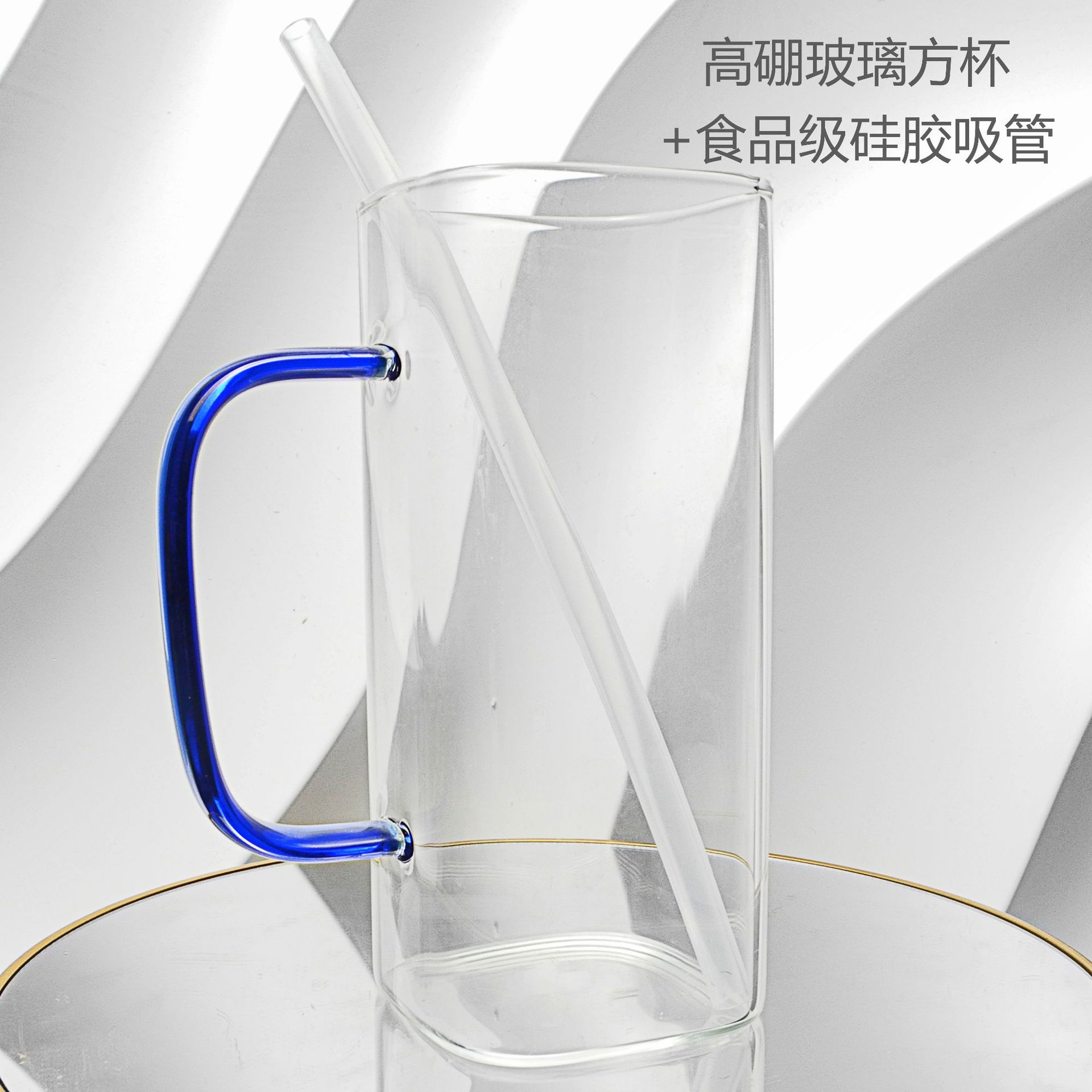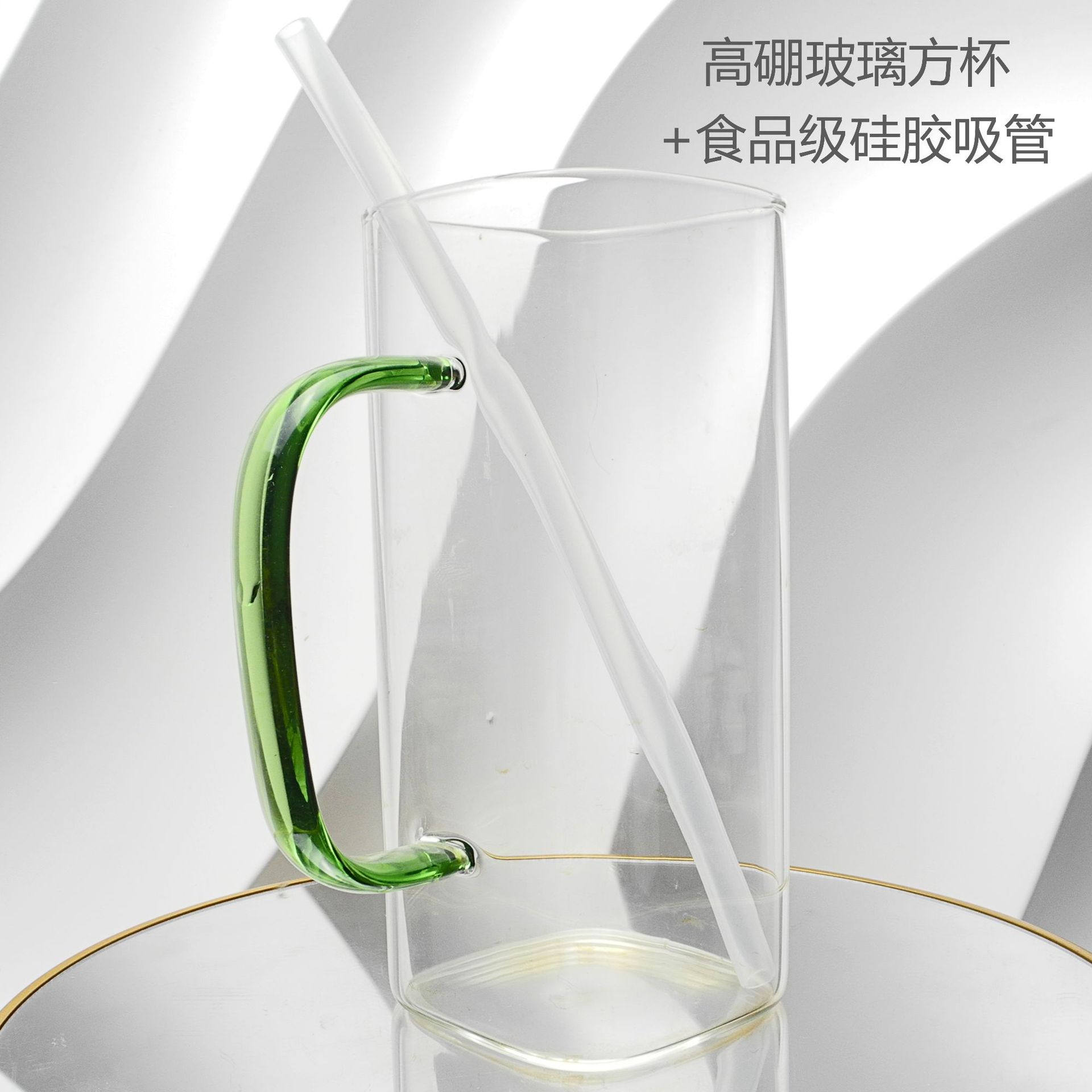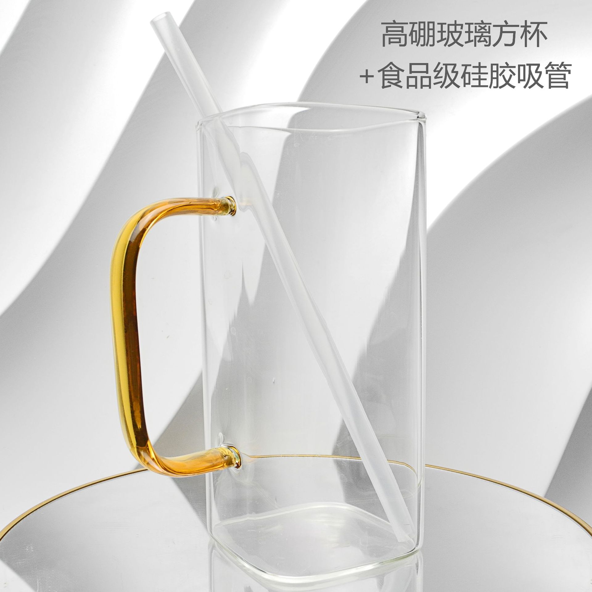 厂家彩色把手方形玻璃杯水杯家用网红INS吸管耐高温透明杯子