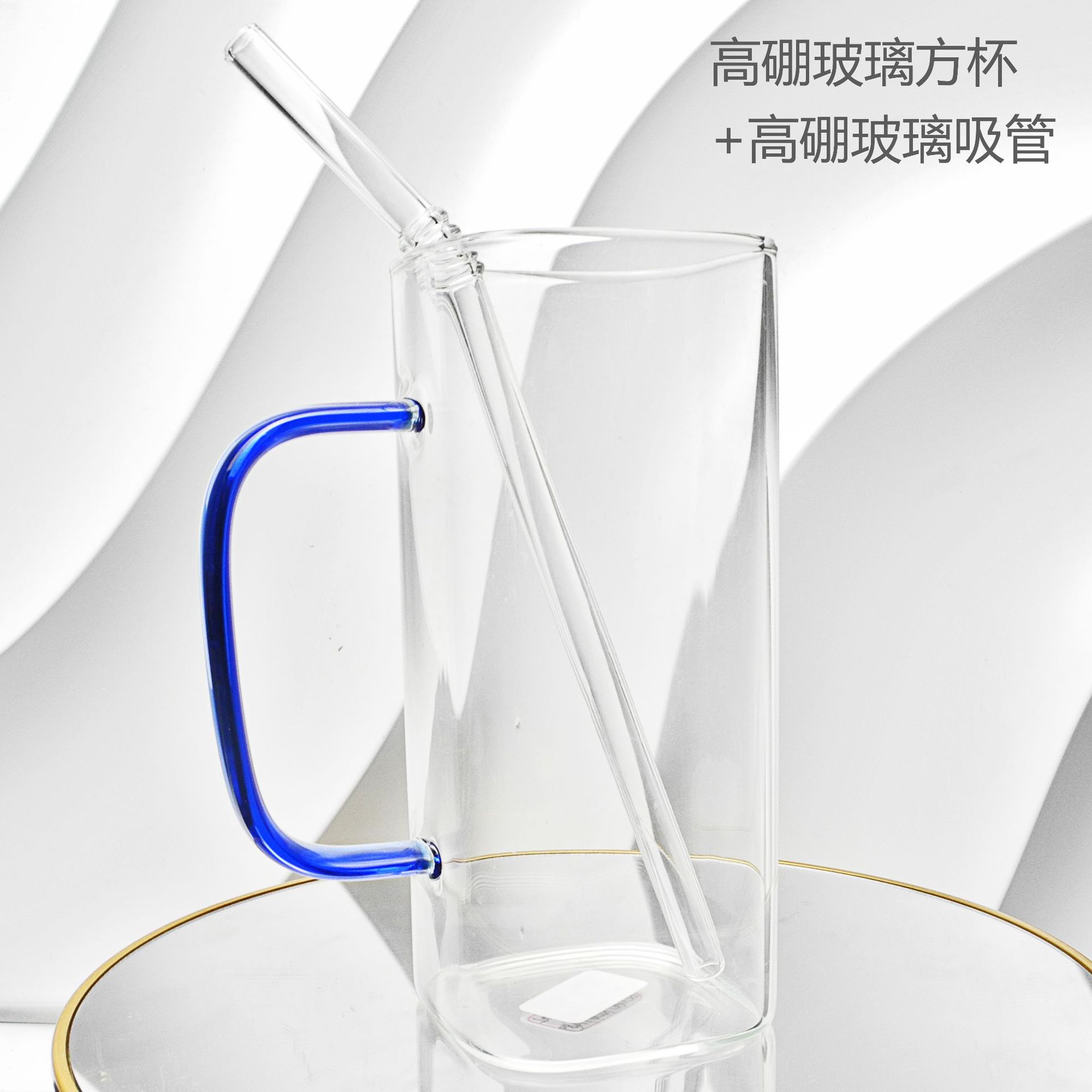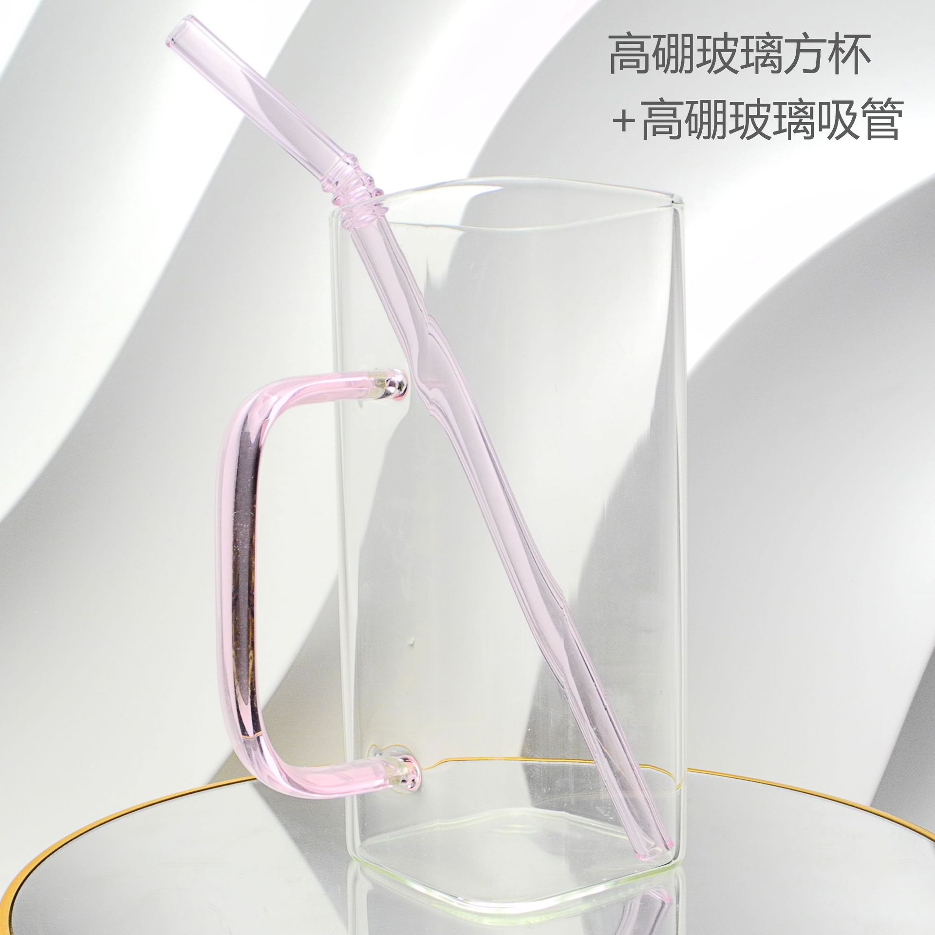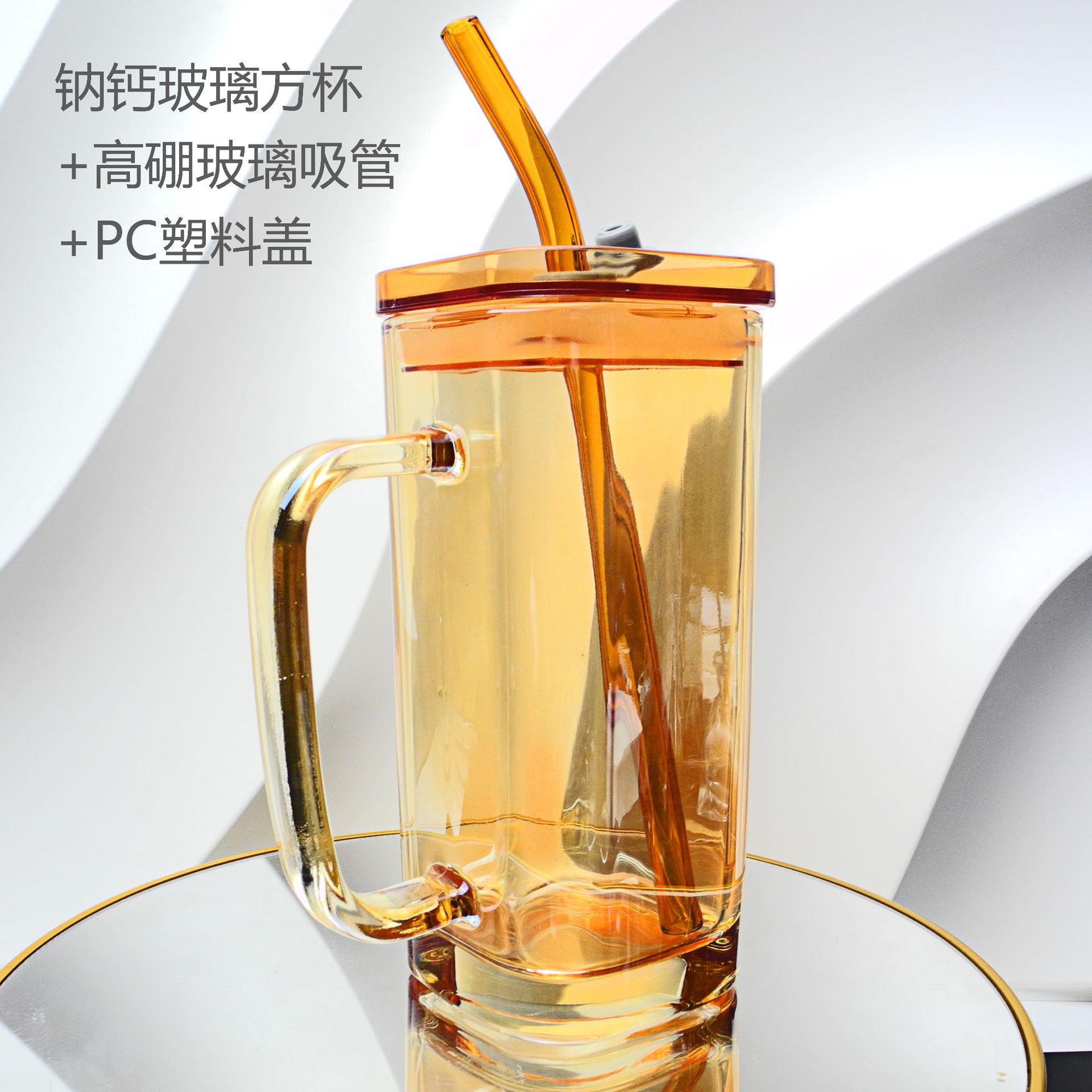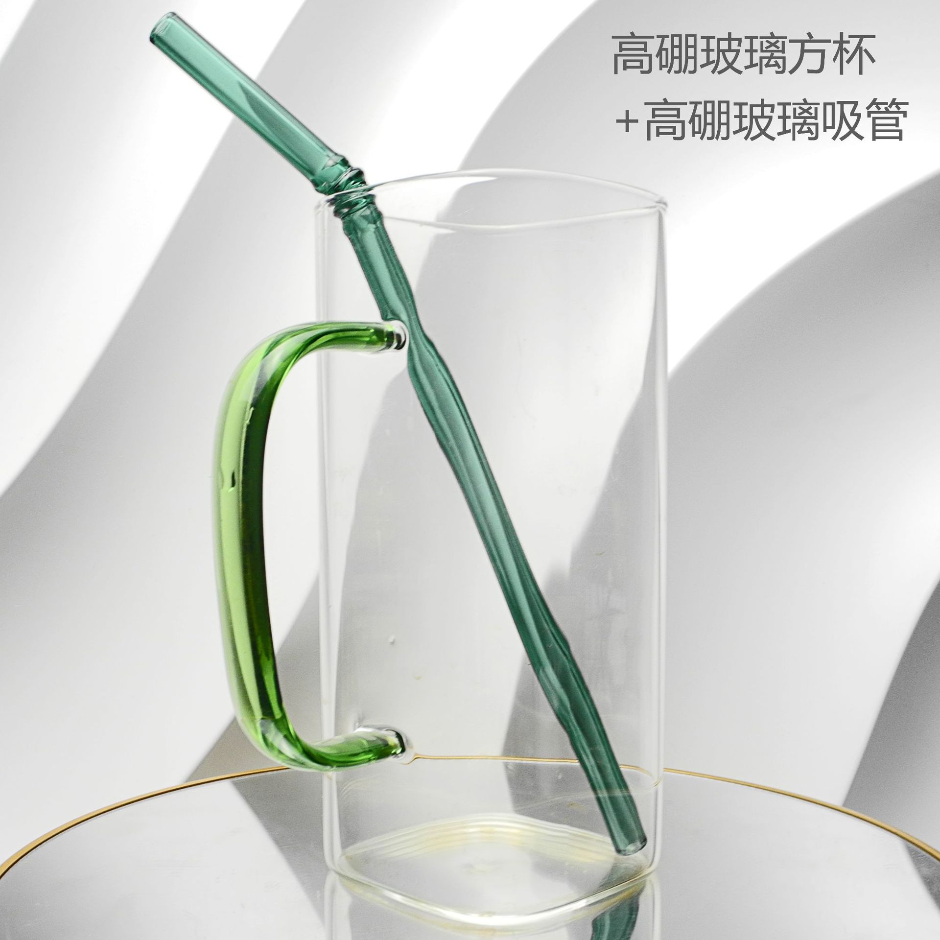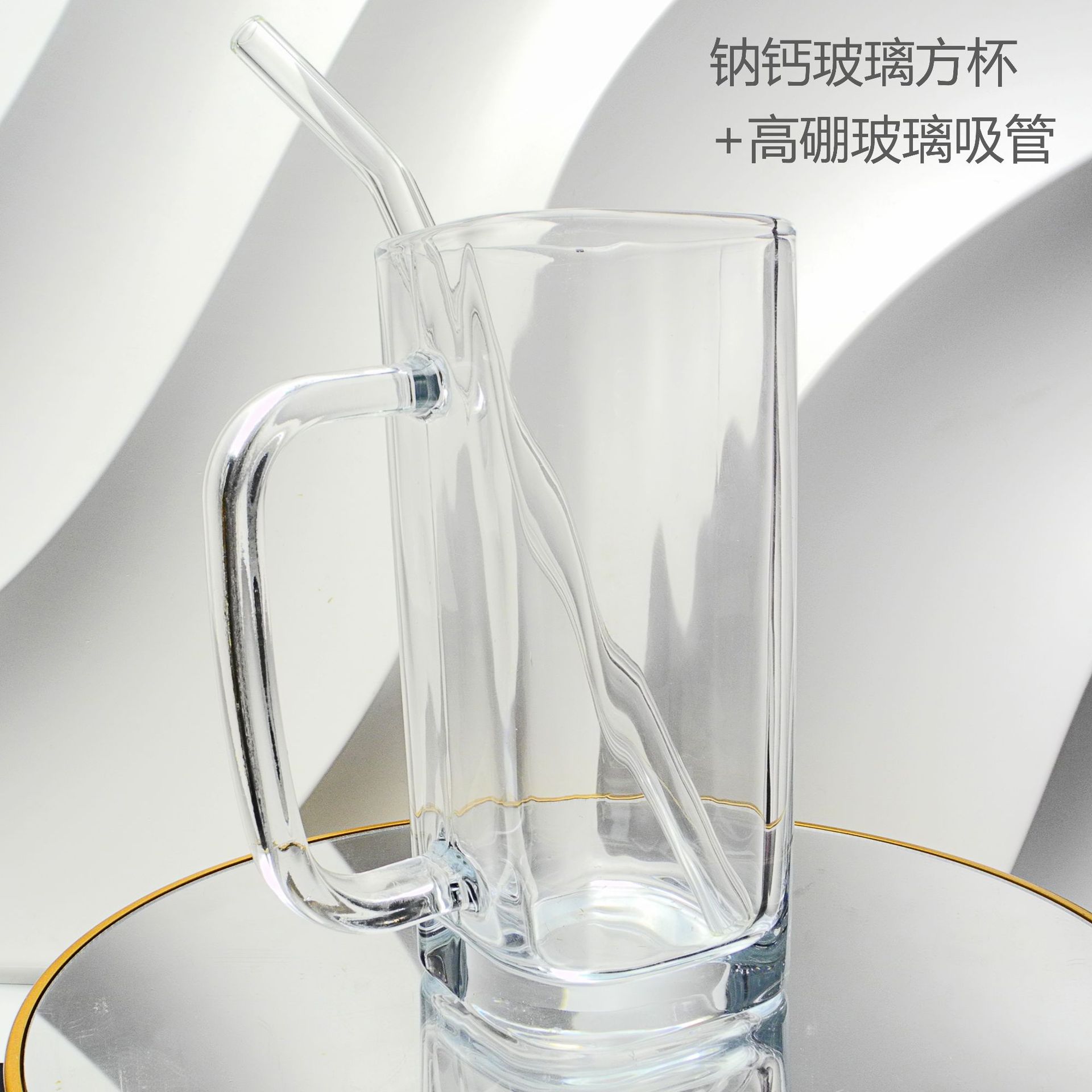 厂家彩色把手方形玻璃杯水杯家用网红INS吸管耐高温透明杯子