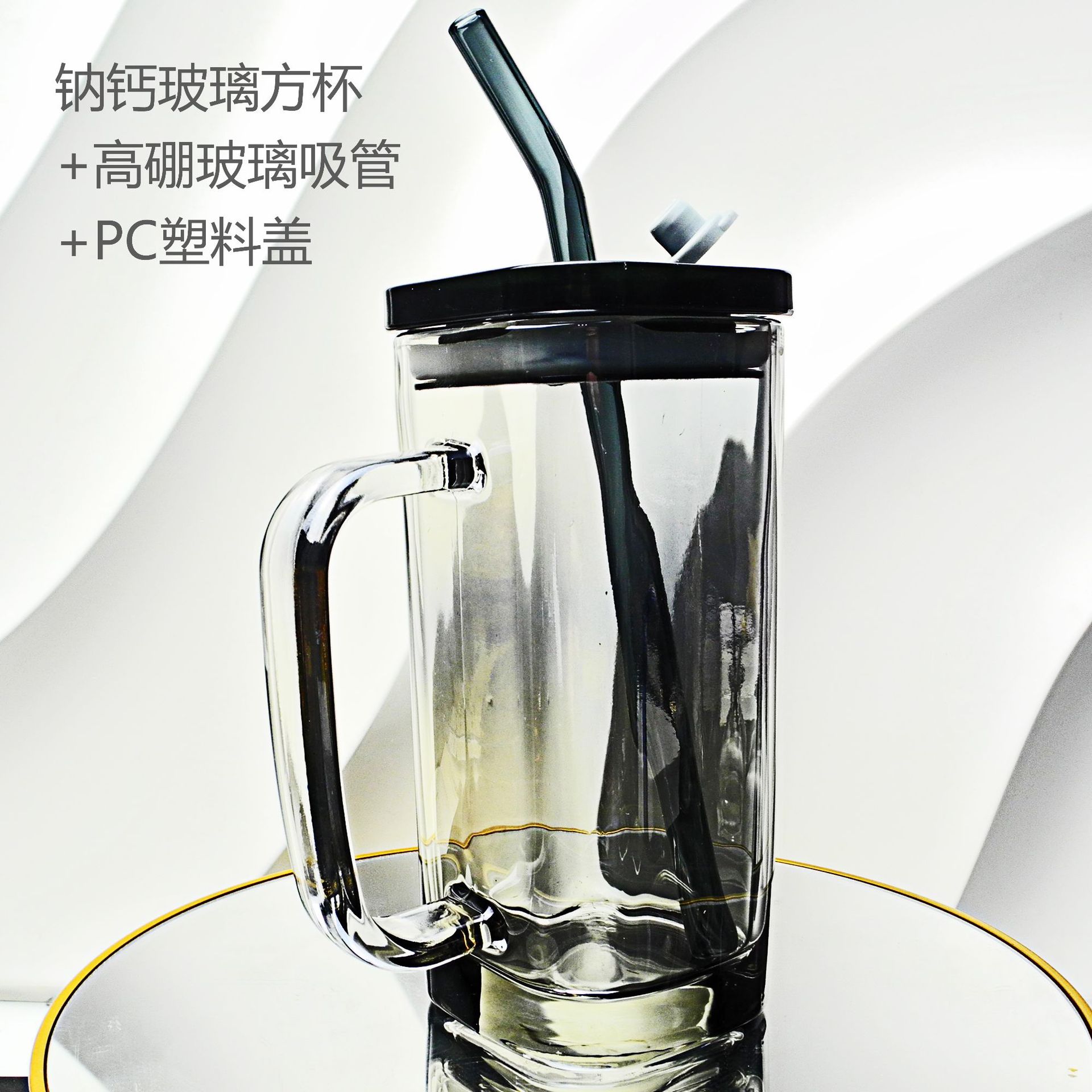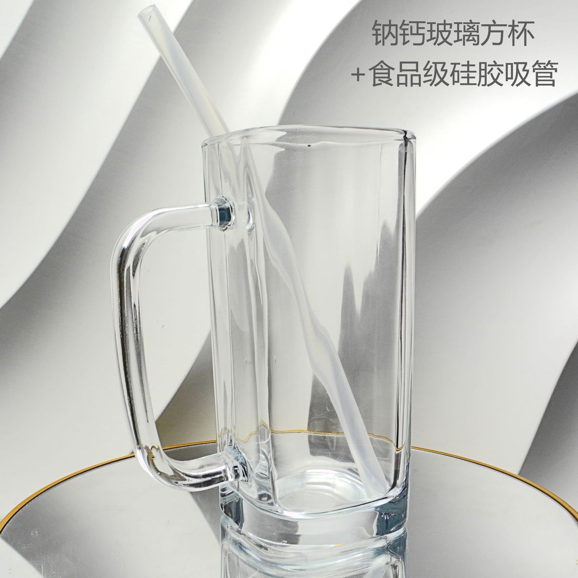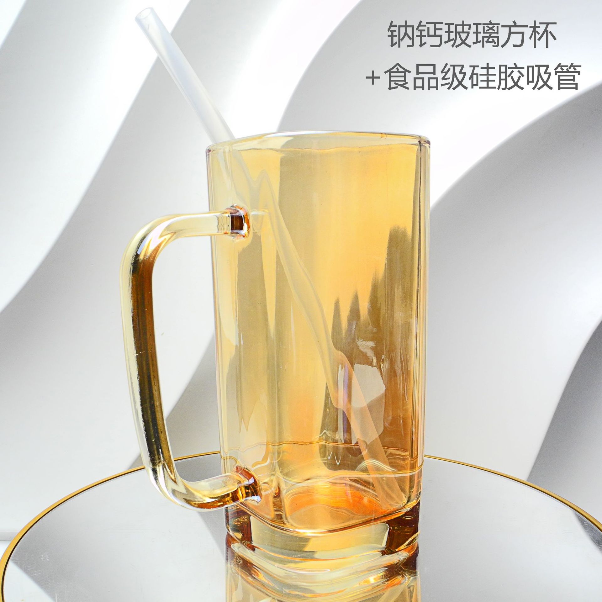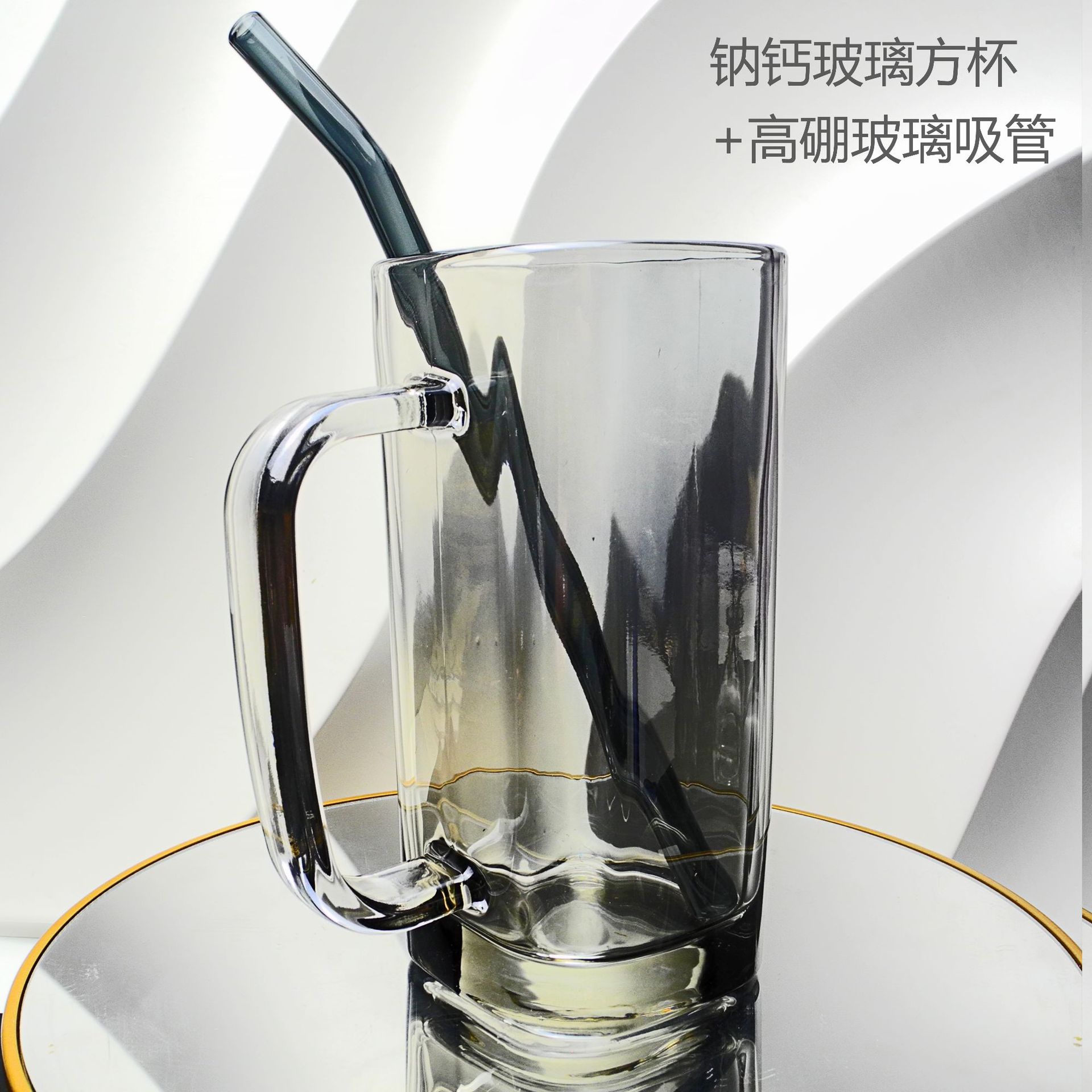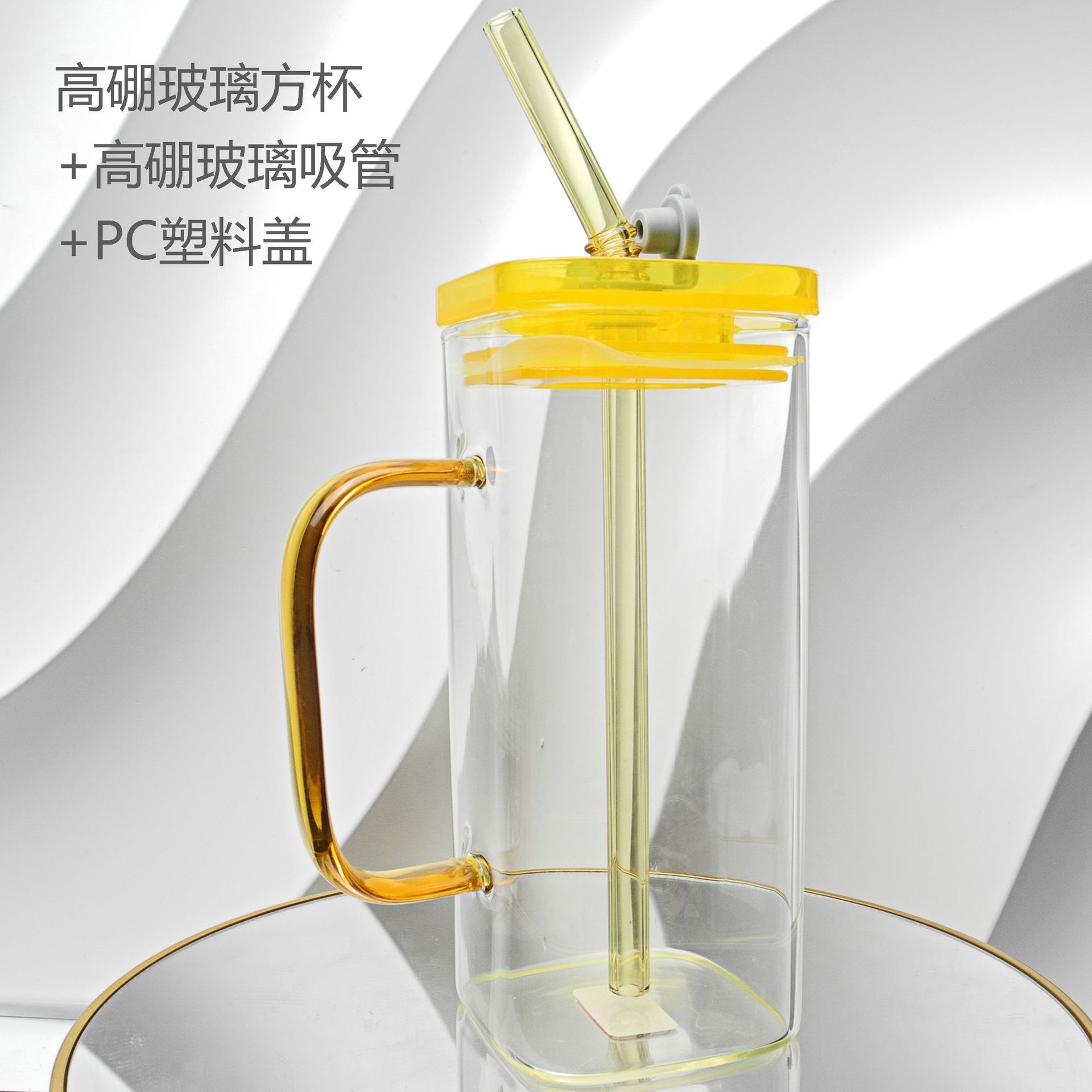 厂家彩色把手方形玻璃杯水杯家用网红INS吸管耐高温透明杯子