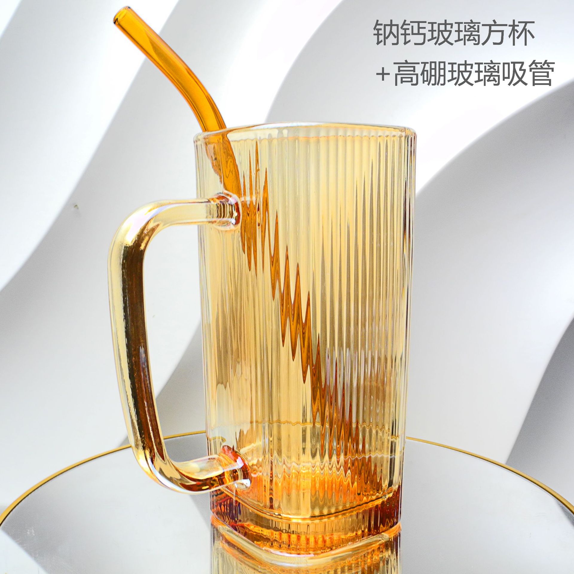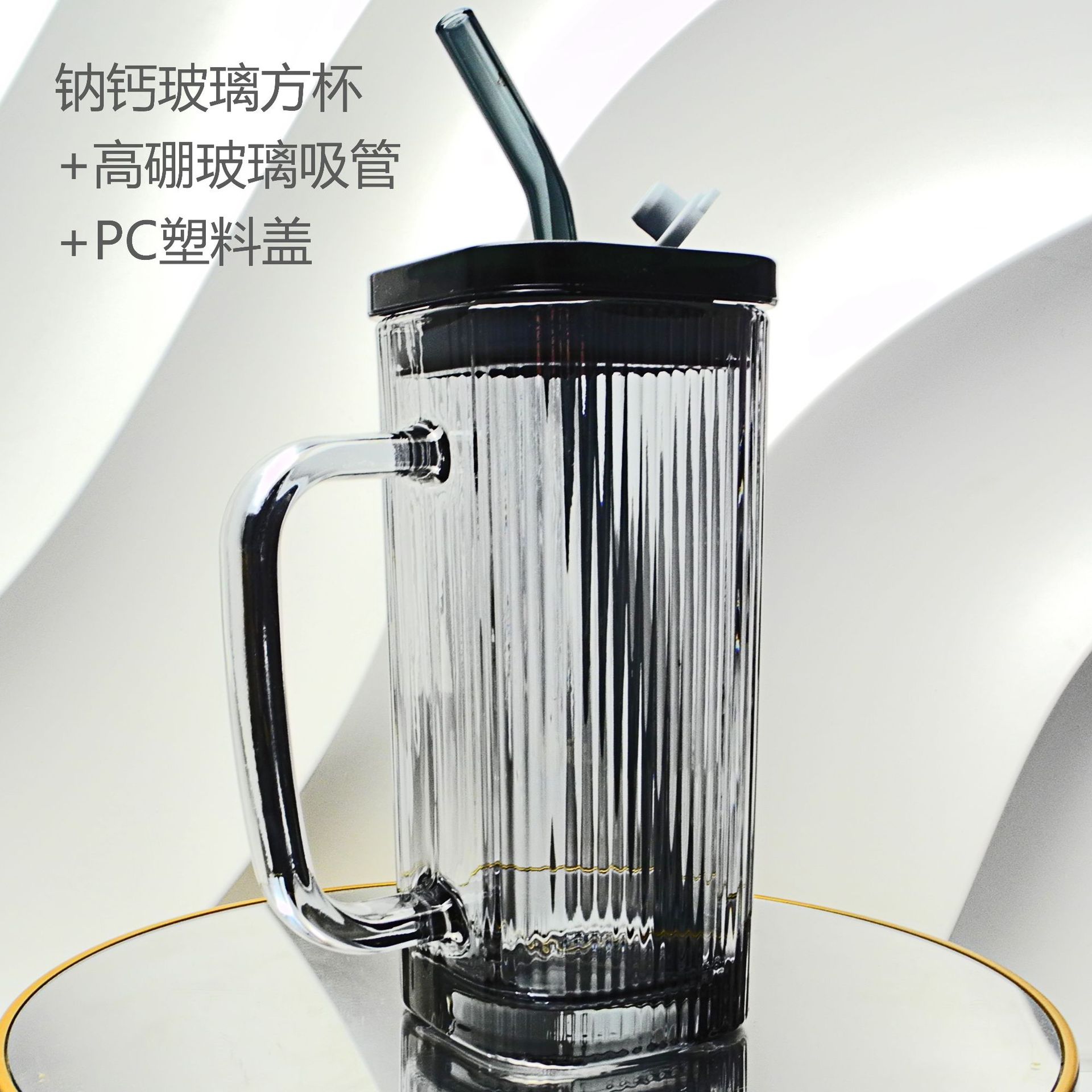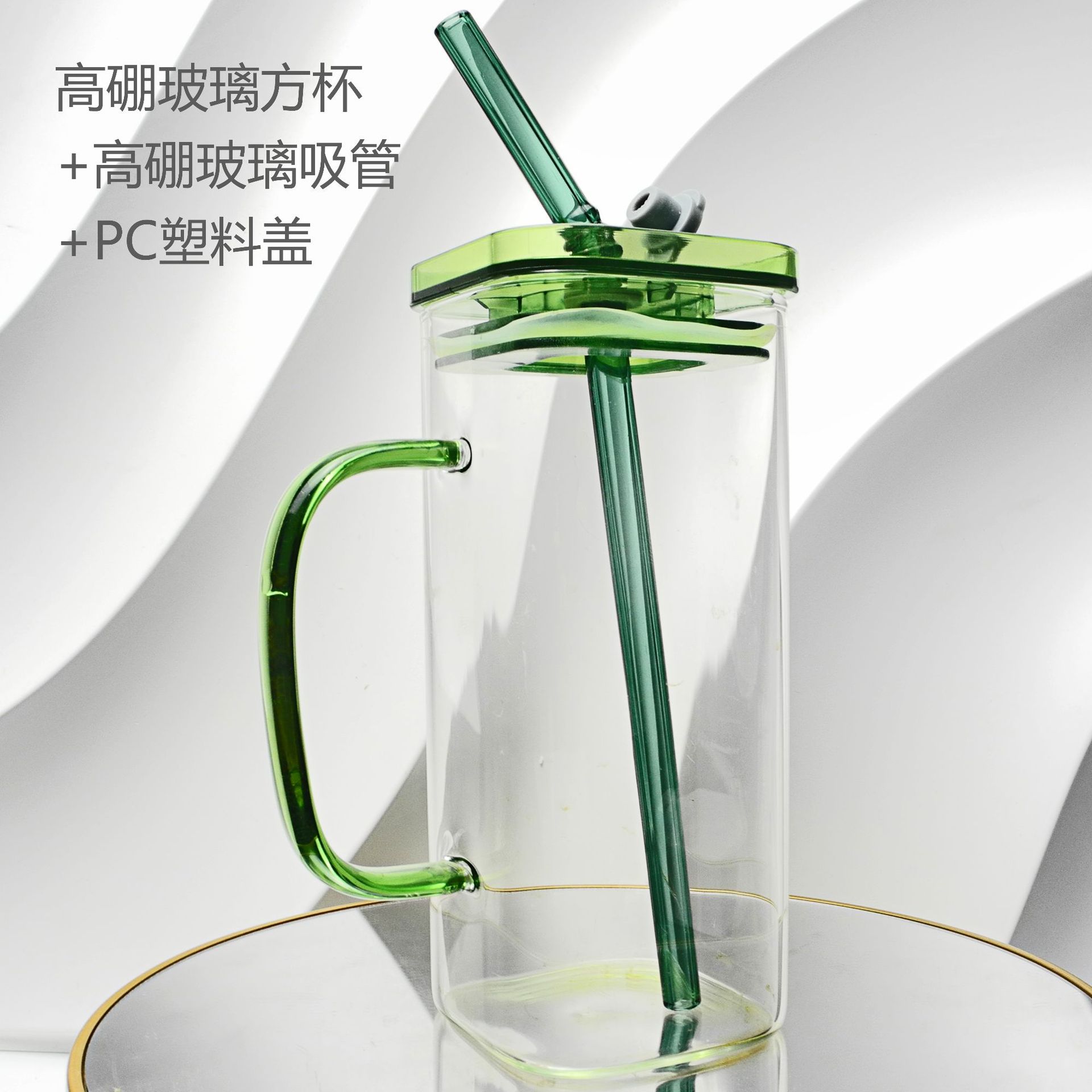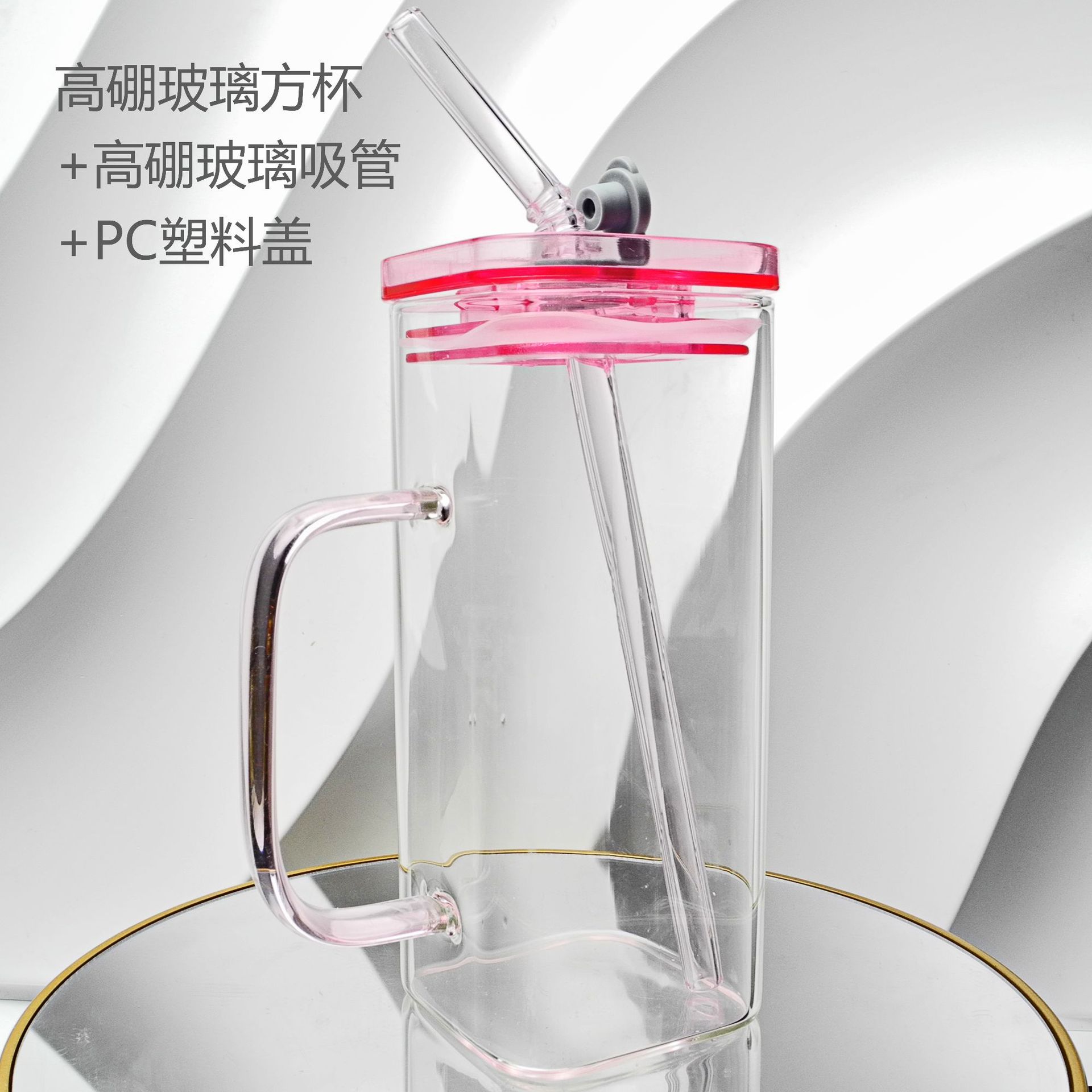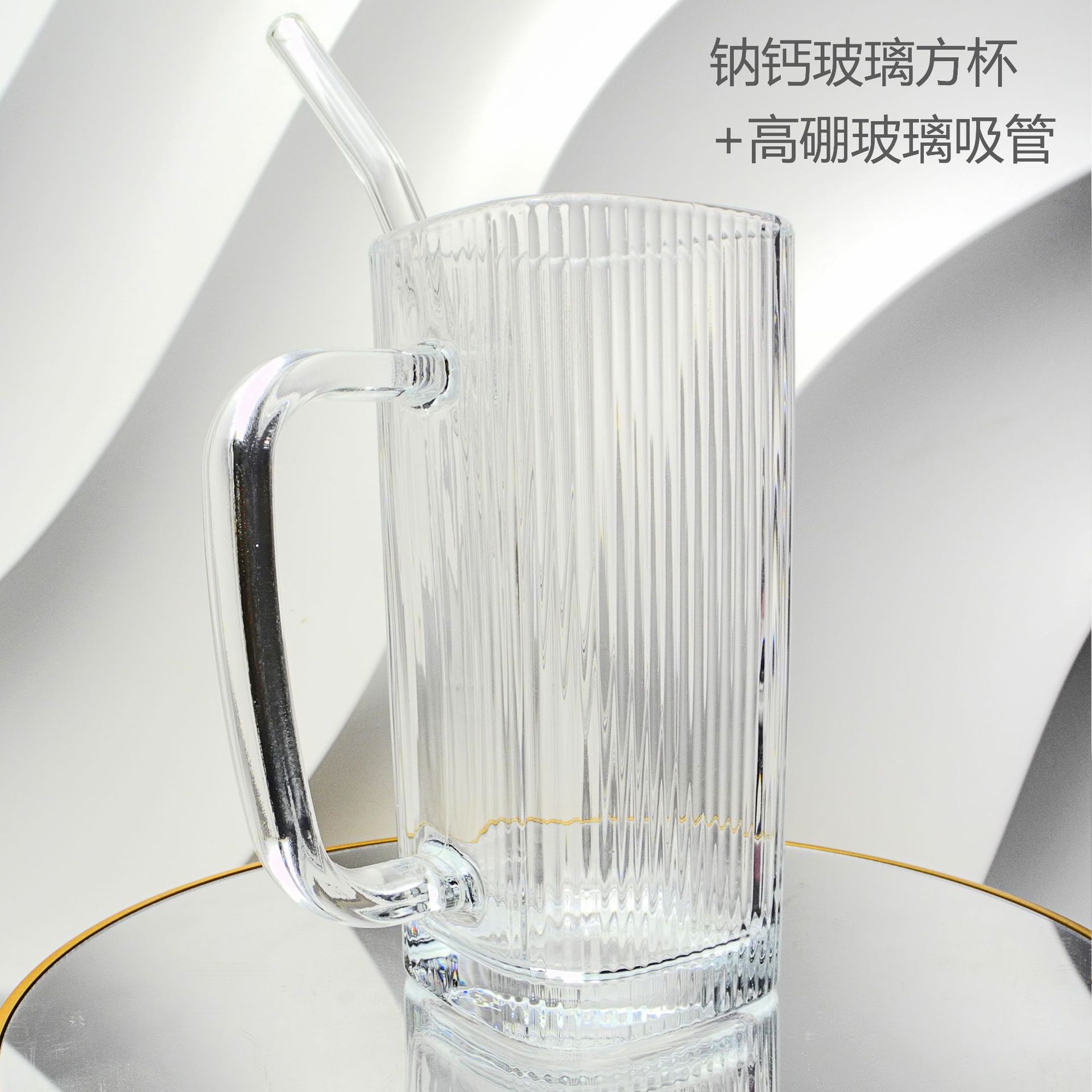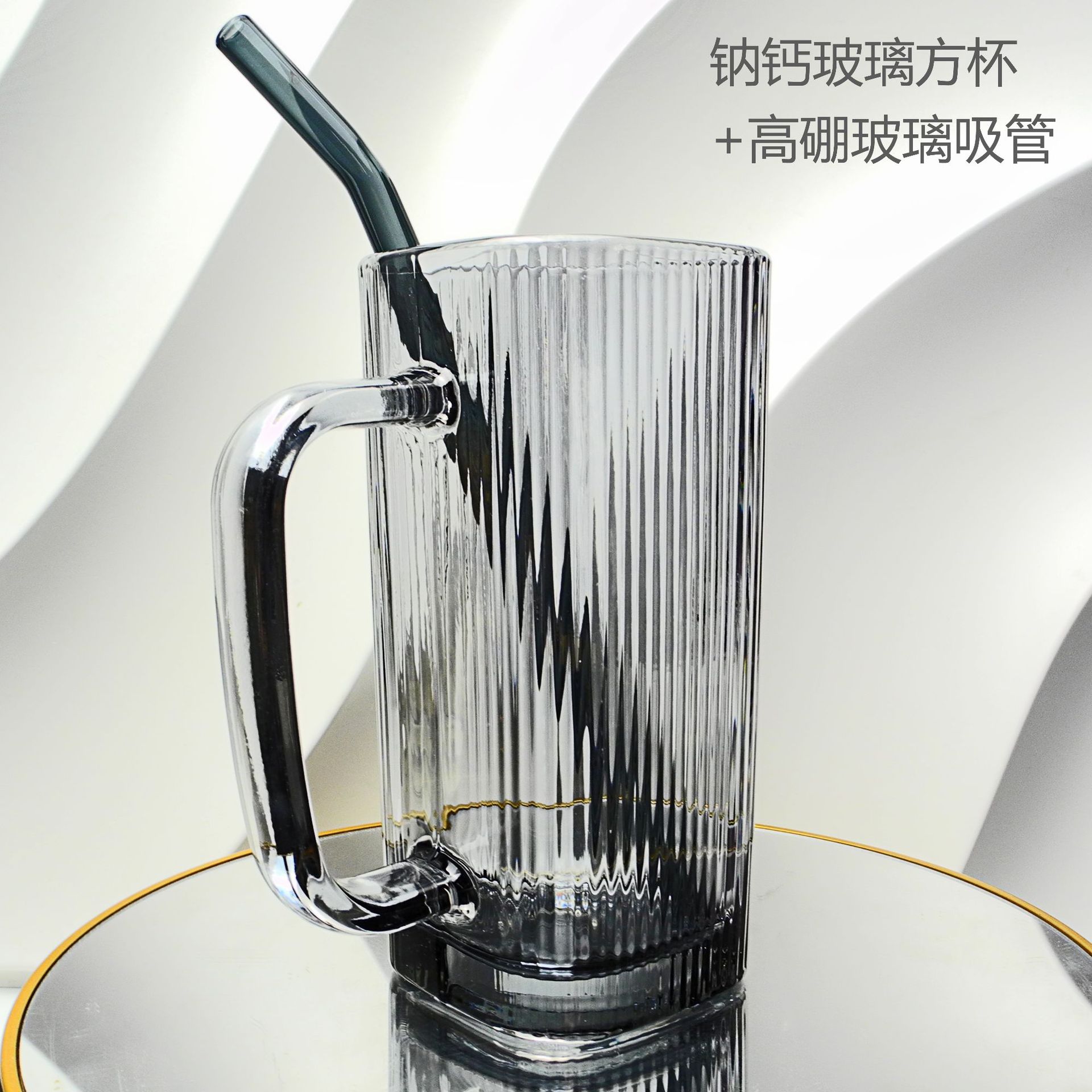 厂家彩色把手方形玻璃杯水杯家用网红INS吸管耐高温透明杯子