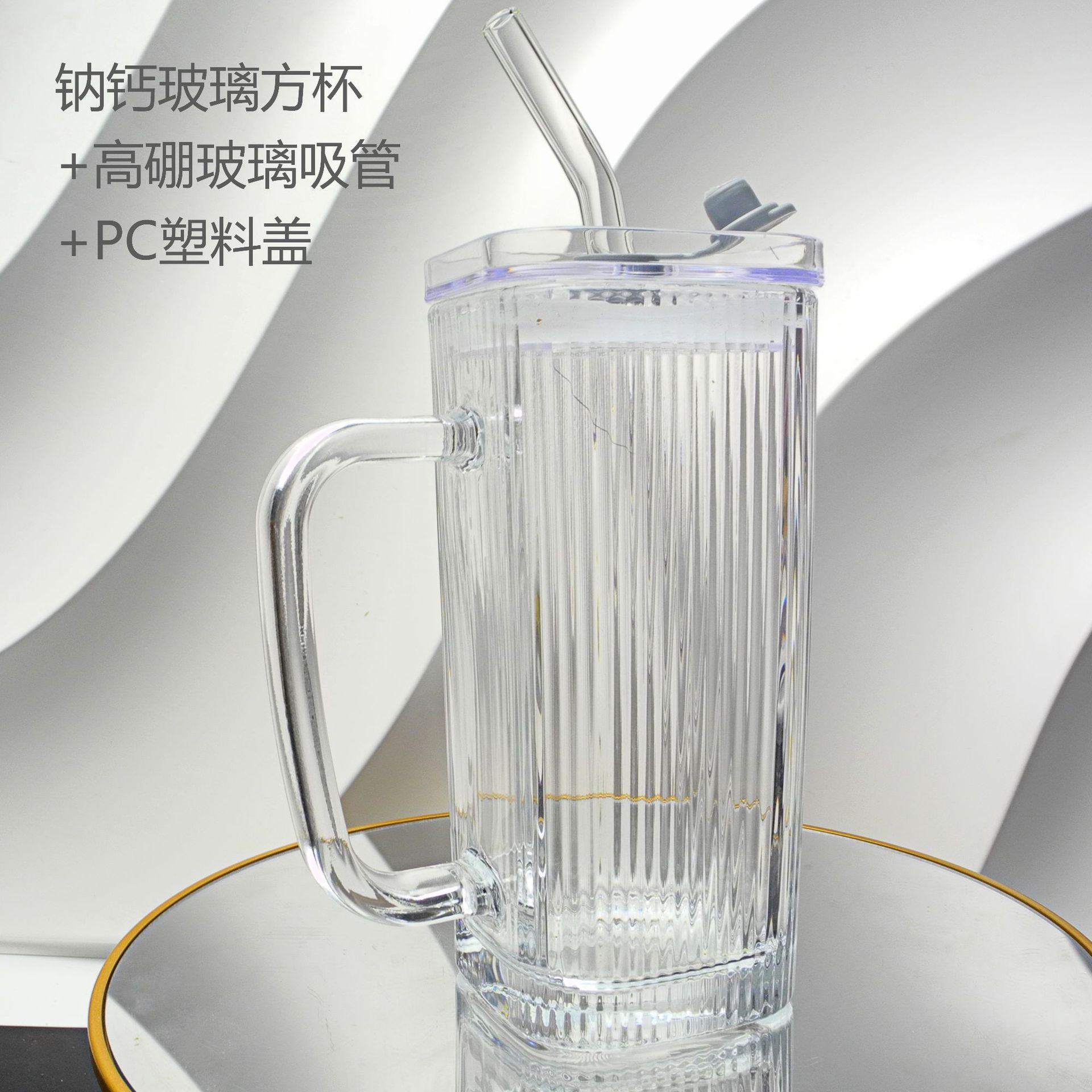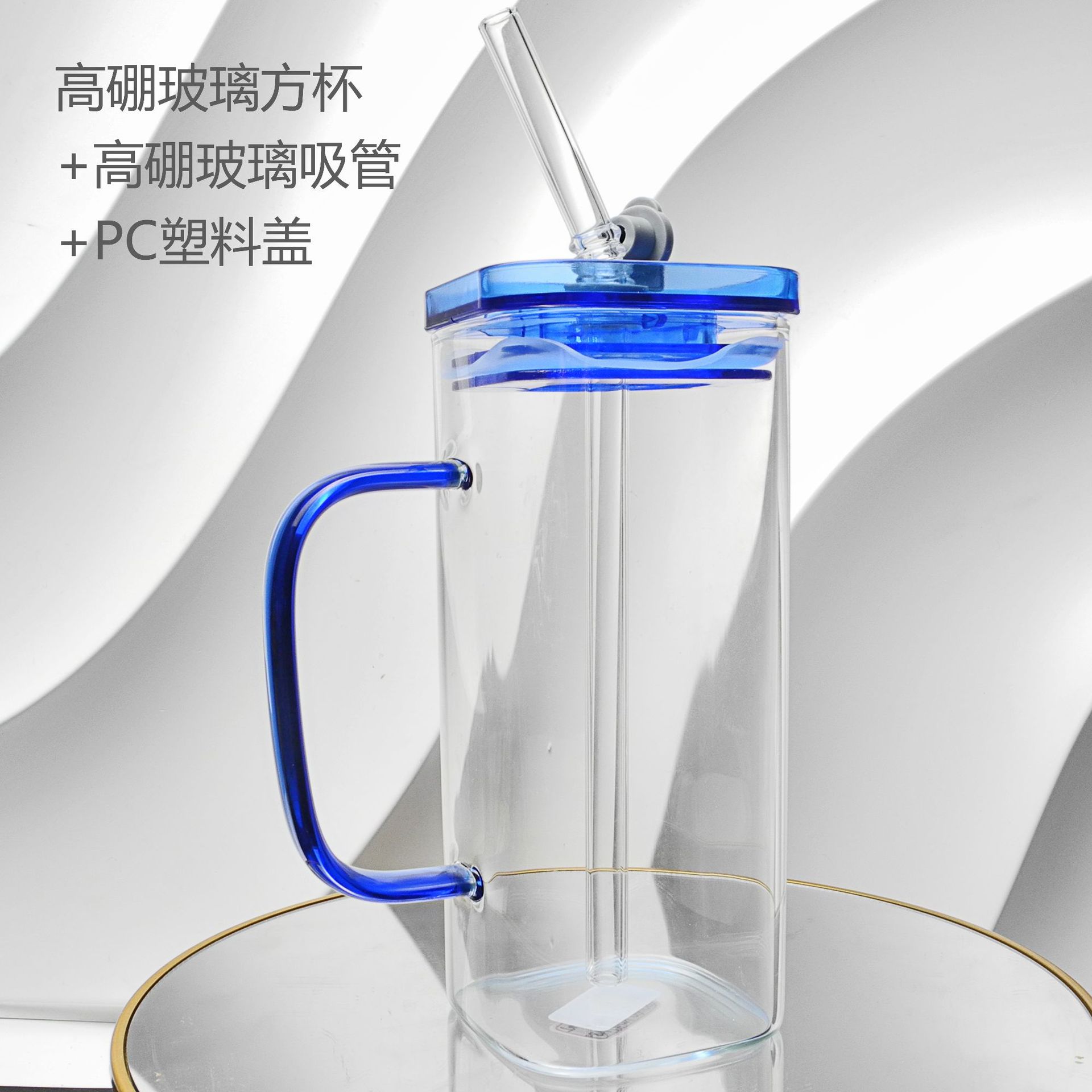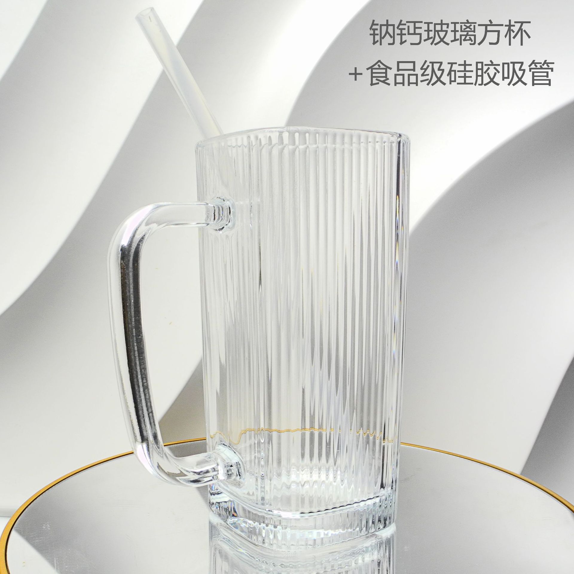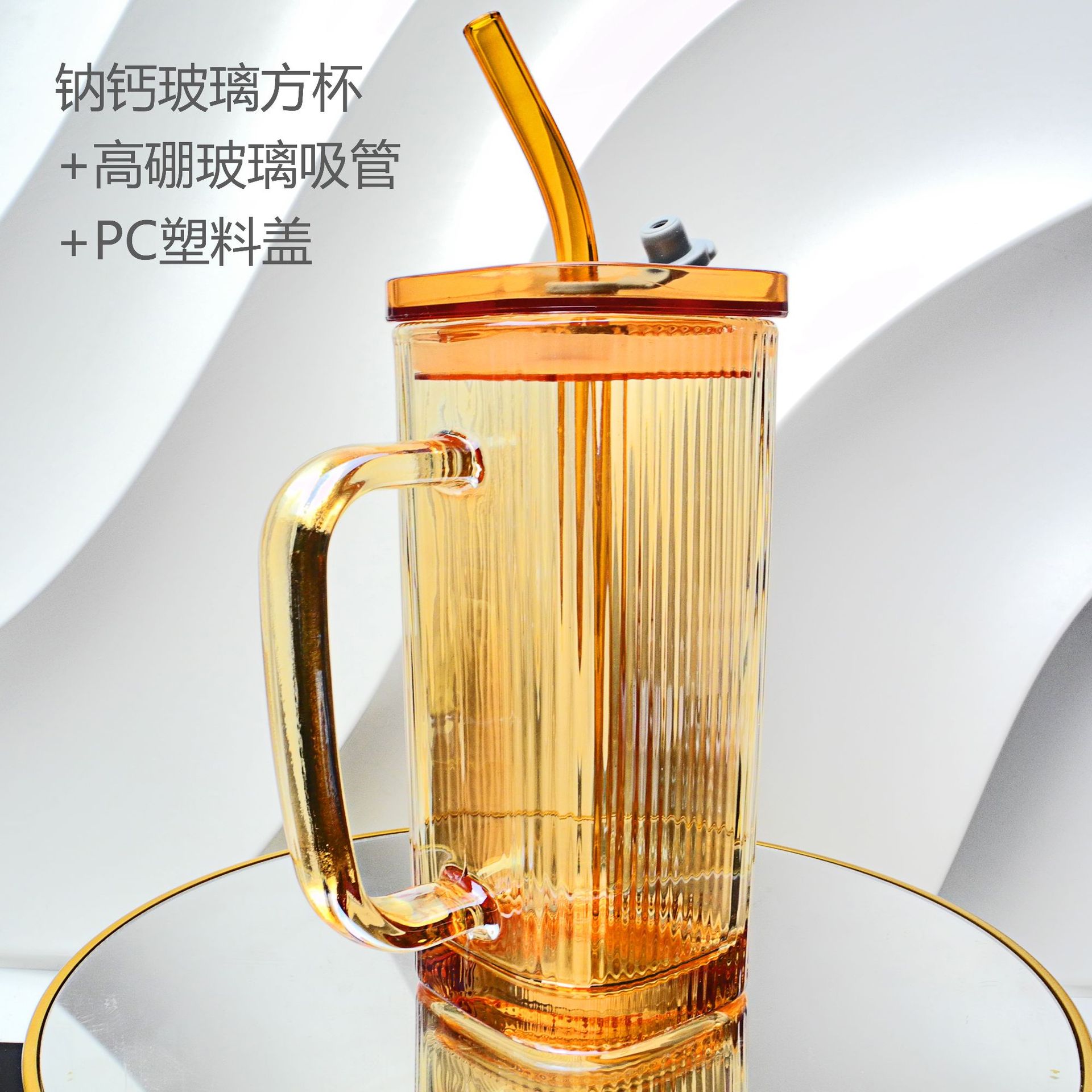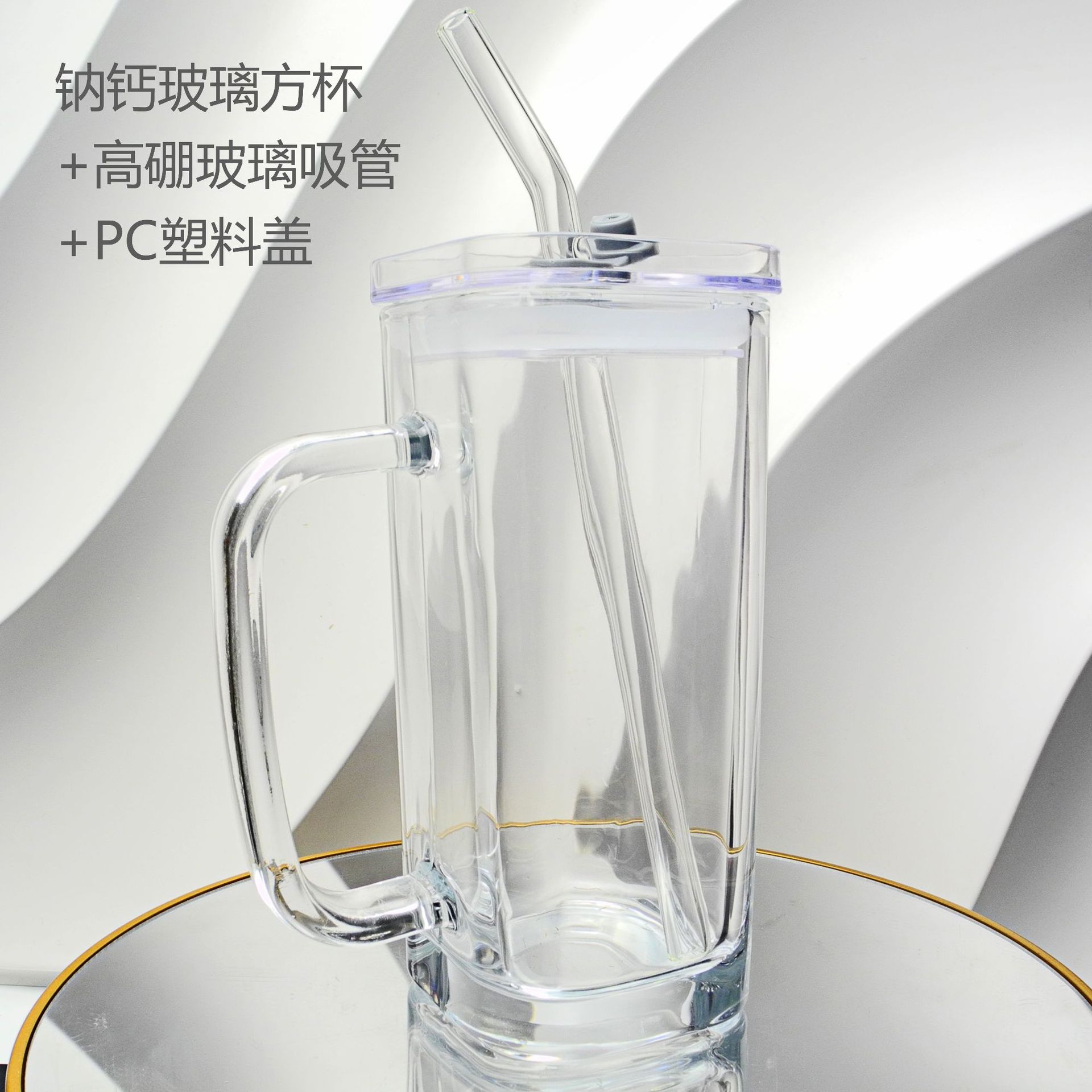 厂家彩色把手方形玻璃杯水杯家用网红INS吸管耐高温透明杯子