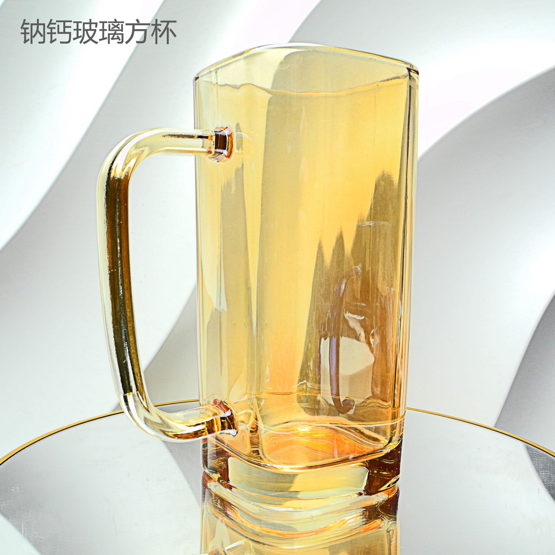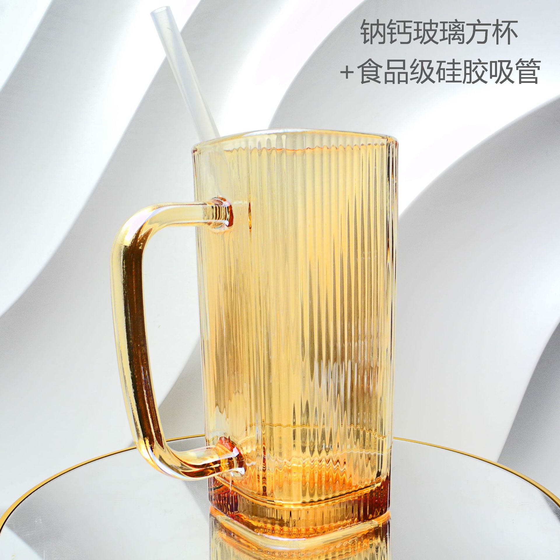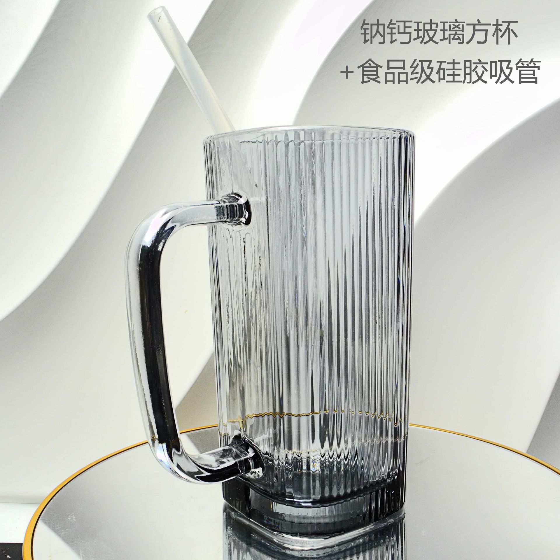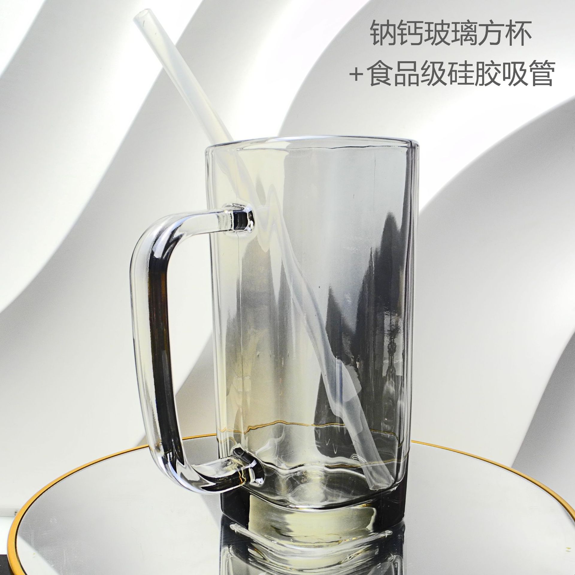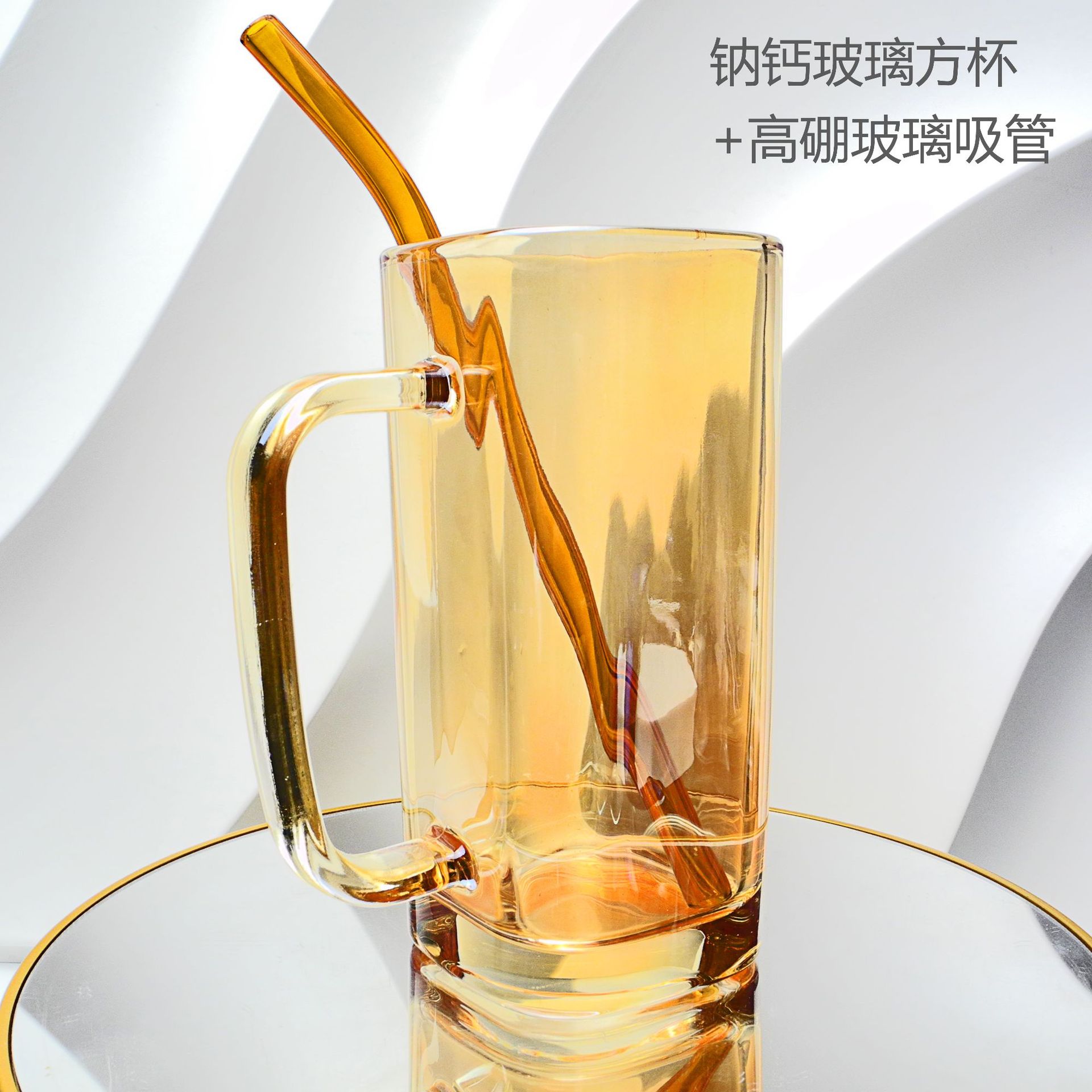 厂家彩色把手方形玻璃杯水杯家用网红INS吸管耐高温透明杯子
