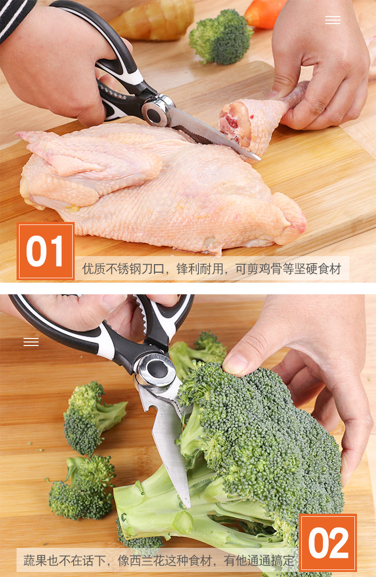 G862工厂多功能熊猫剪 刮鱼鳞剪鸡骨夹核桃不锈钢家用厨房剪刀