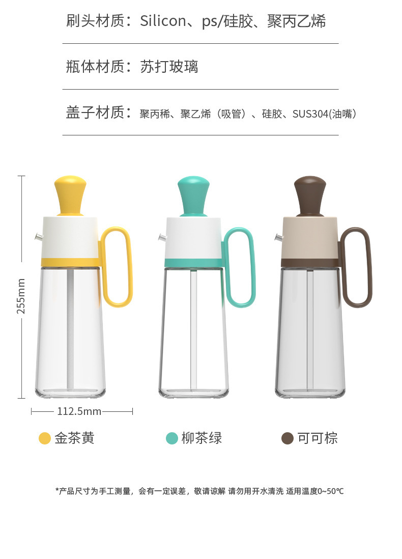 透明玻璃油壶豌豆刷倒一体控油瓶酱油醋调味瓶硅胶刷头牛排烧烤刷