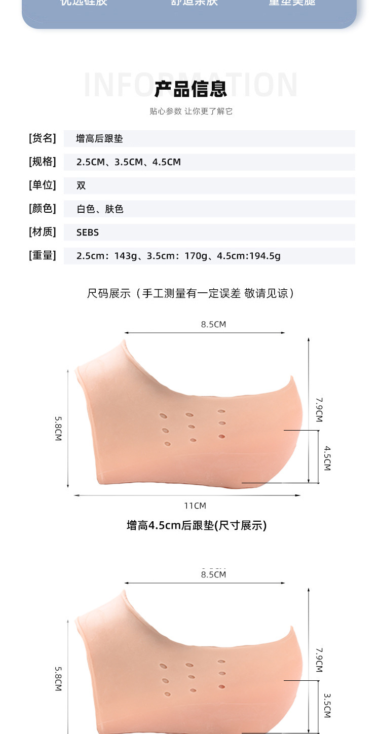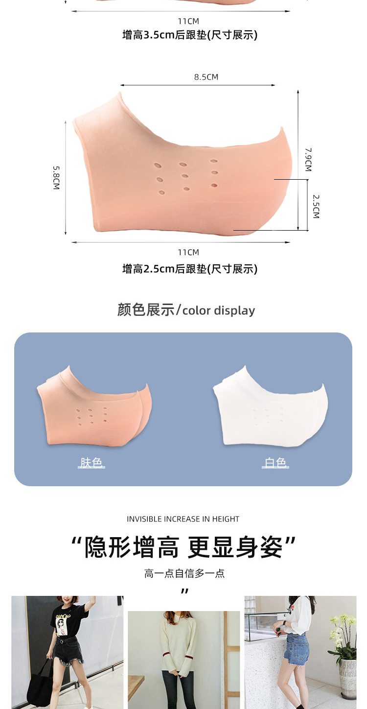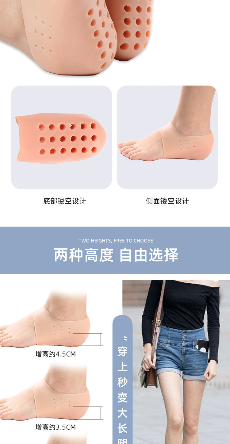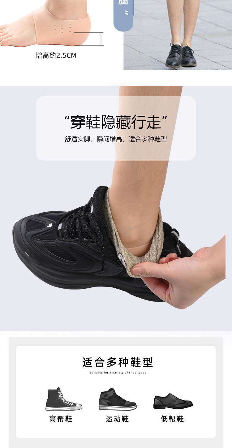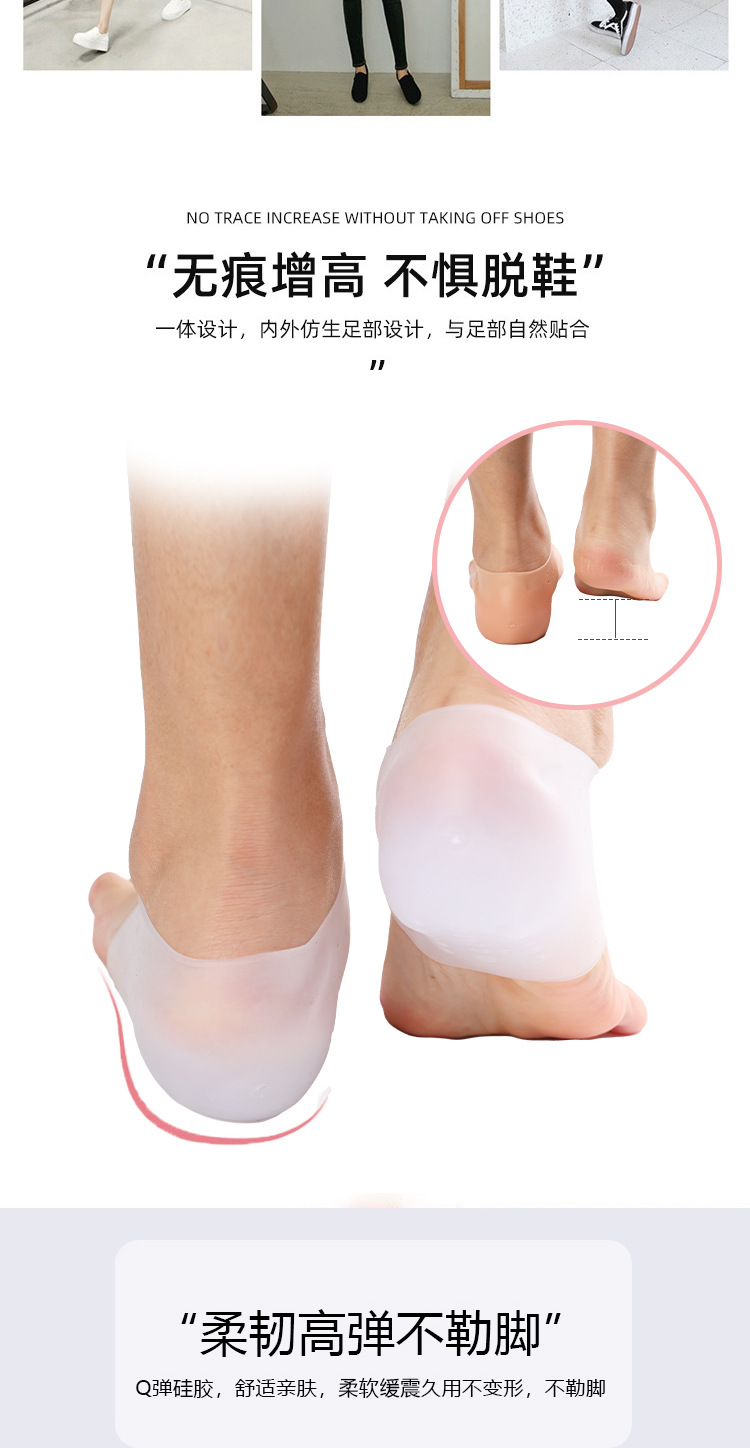 男女隐形内增高袜垫通用运动后跟套防滑SEBS半垫加厚袜套
