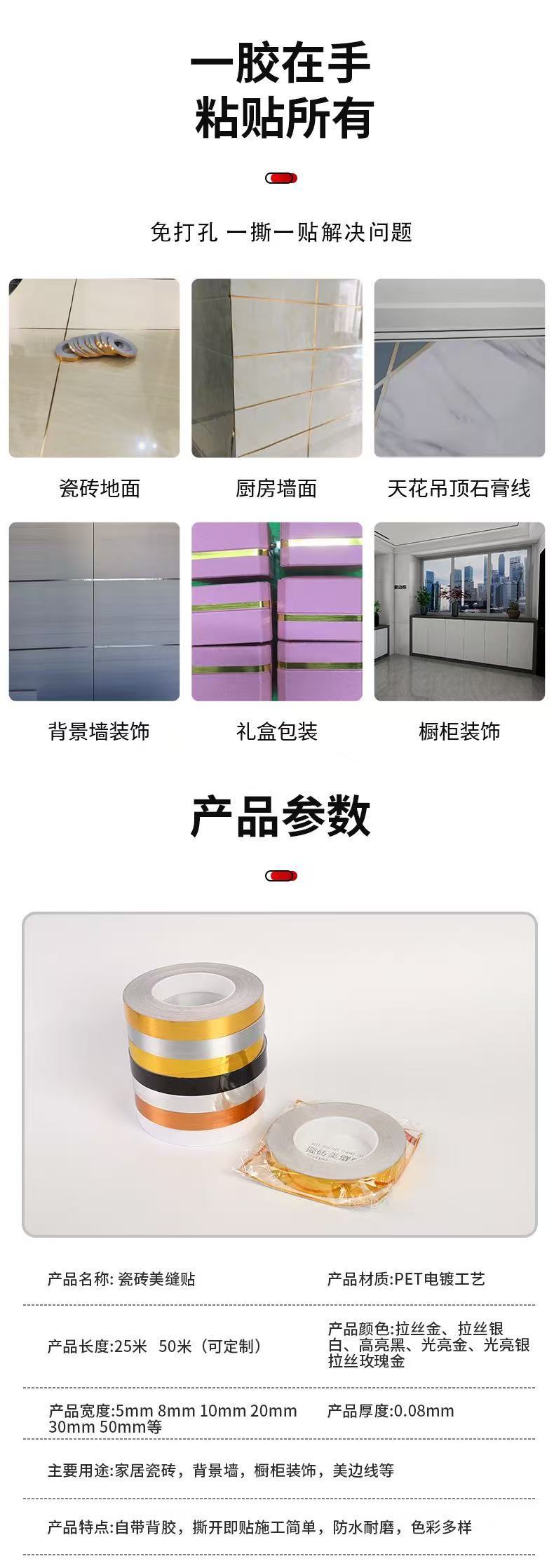 源头厂家美缝贴自粘美缝贴条防水瓷砖美缝贴纸美边线地板贴背胶
