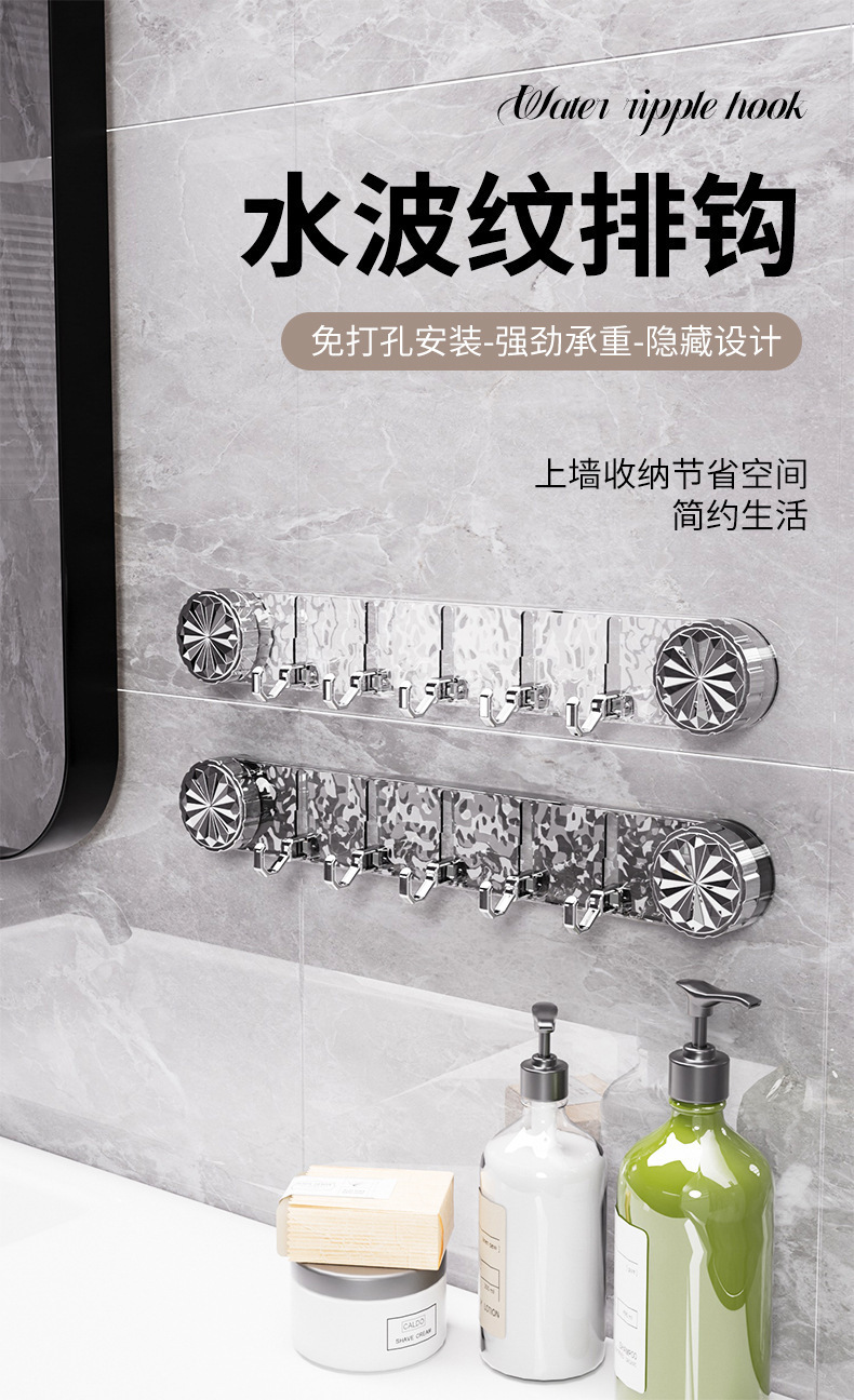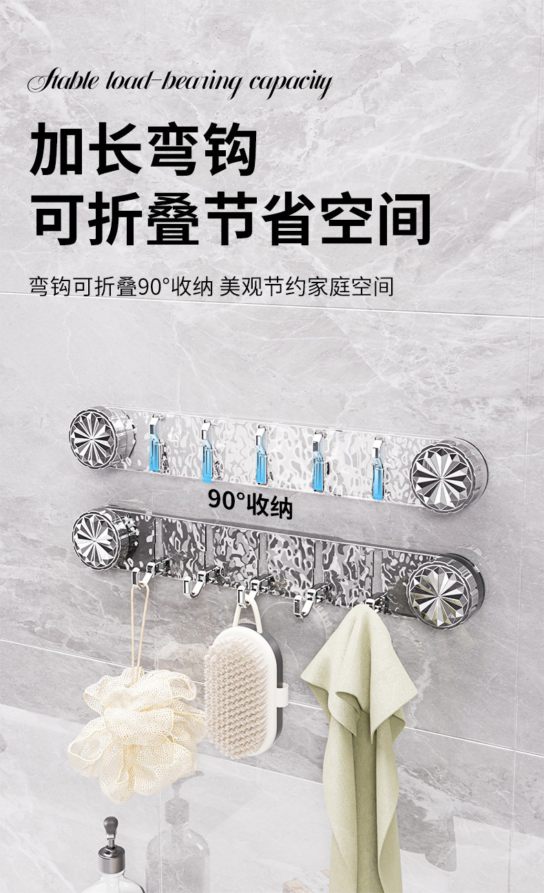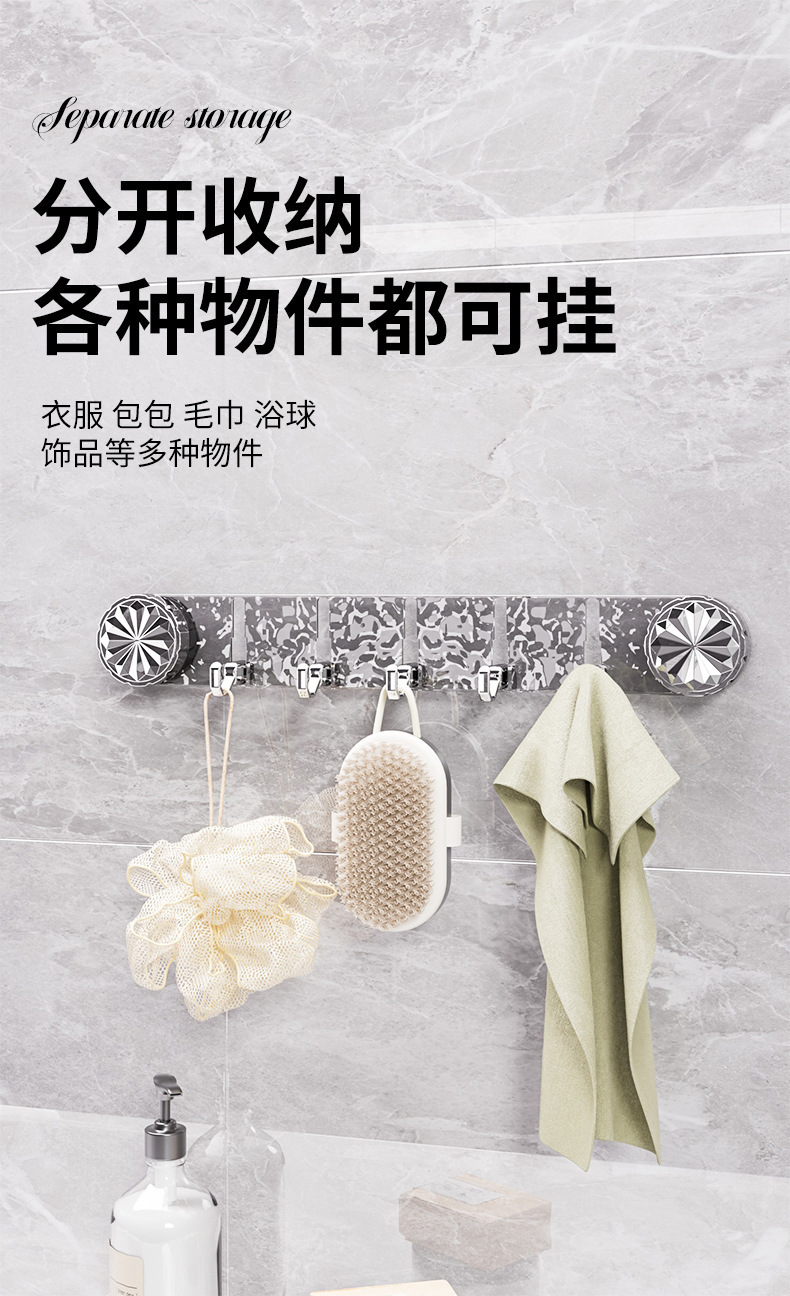 新款免打孔吸盘长排挂钩门后浴室墙壁收纳挂钩架子五连排无痕粘钩