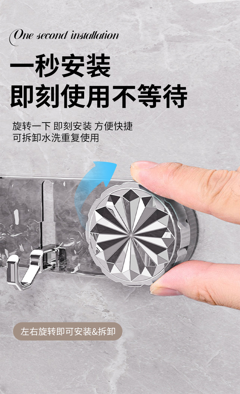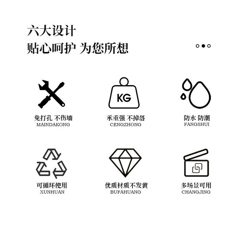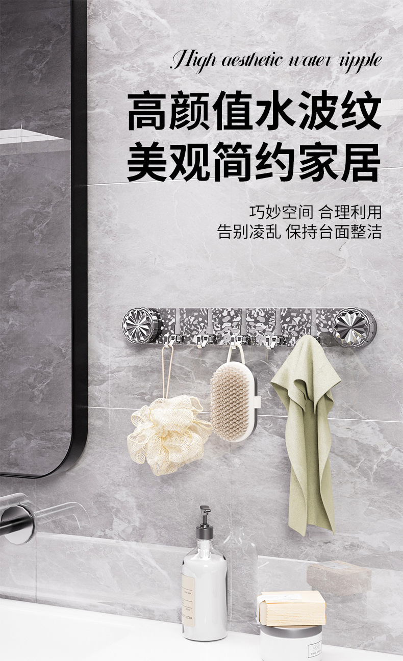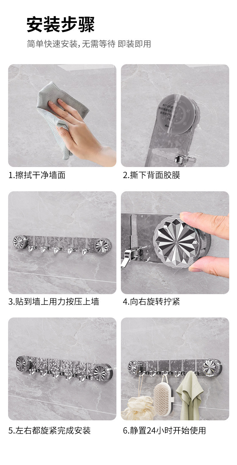 新款免打孔吸盘长排挂钩门后浴室墙壁收纳挂钩架子五连排无痕粘钩