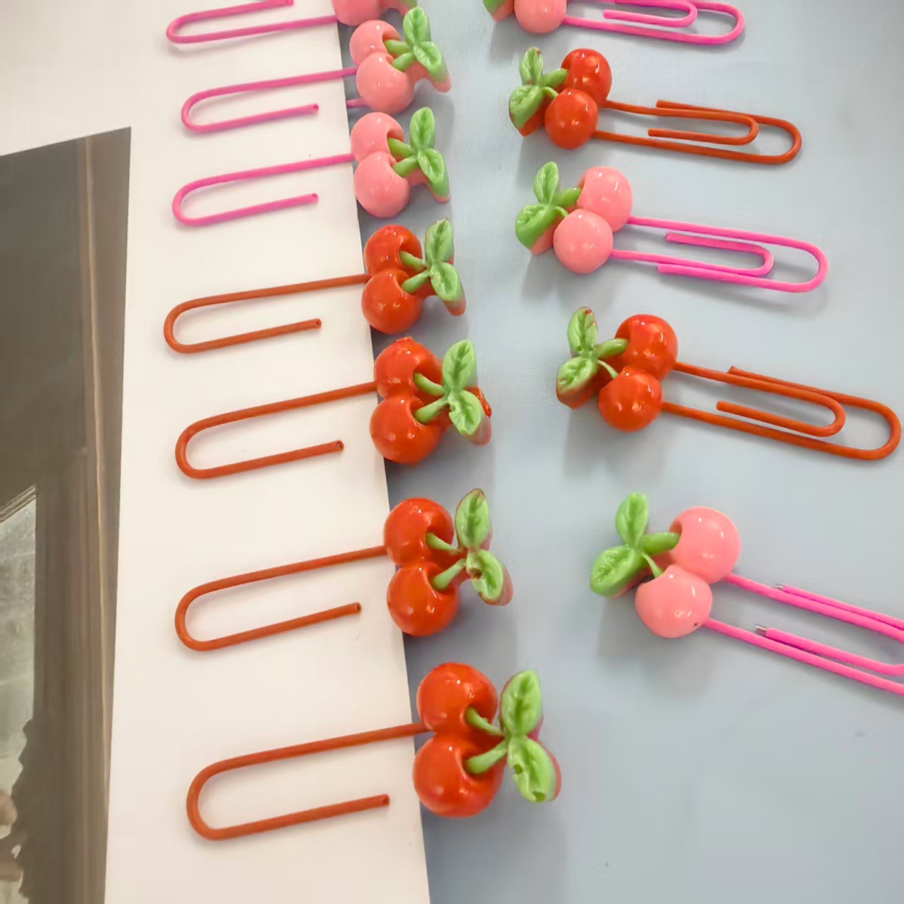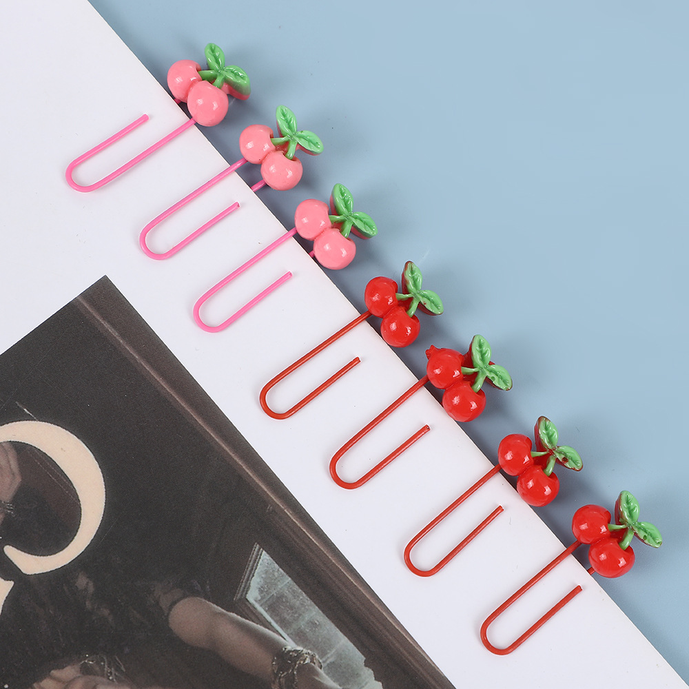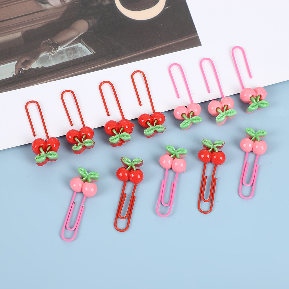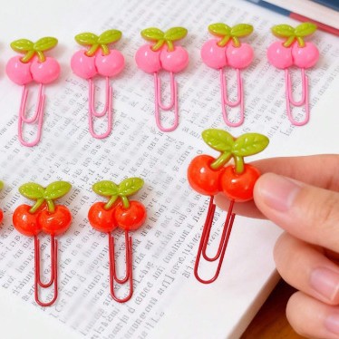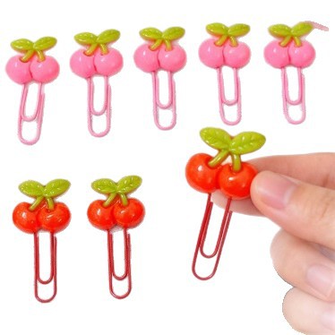 卡通樱桃包塑回形针粉色大红色曲别针手账夹发卡装饰品包胶回形针