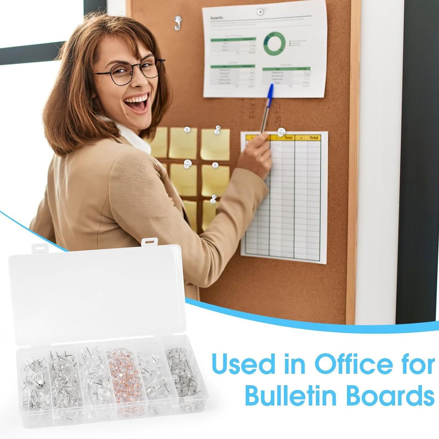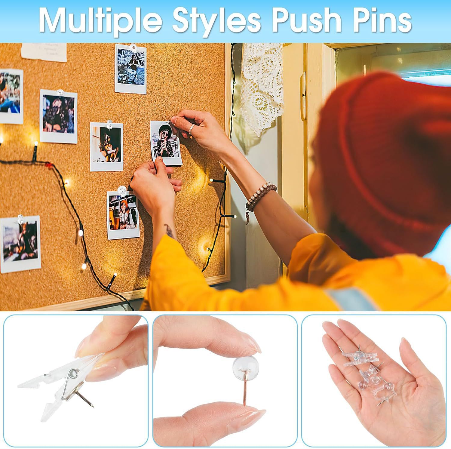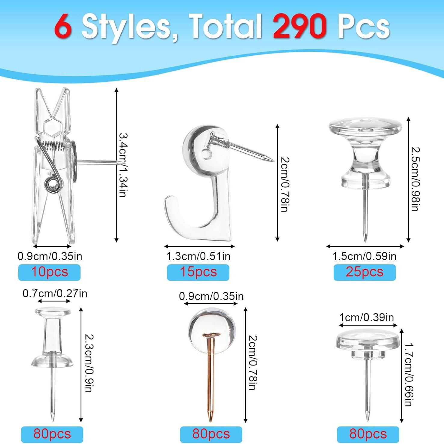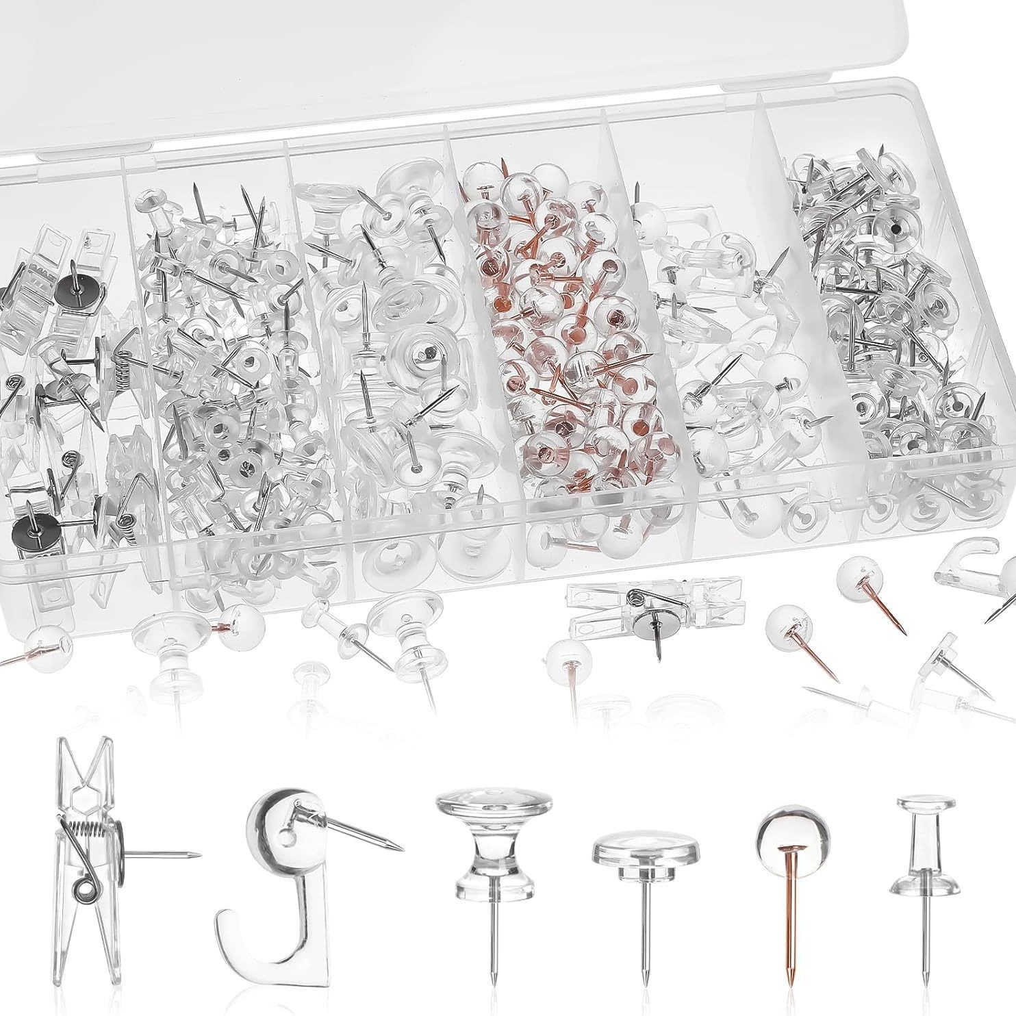 跨境新款五格290枚套装透明玫瑰金5款组合软木板固定图钉针夹挂钩