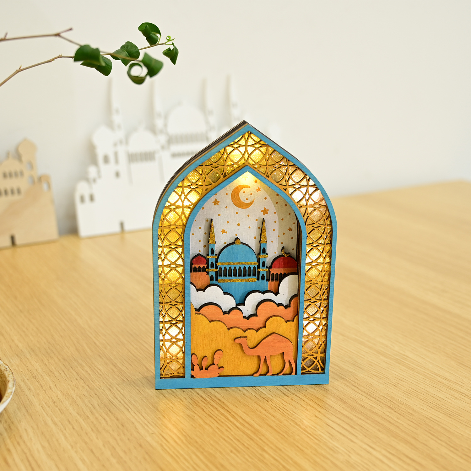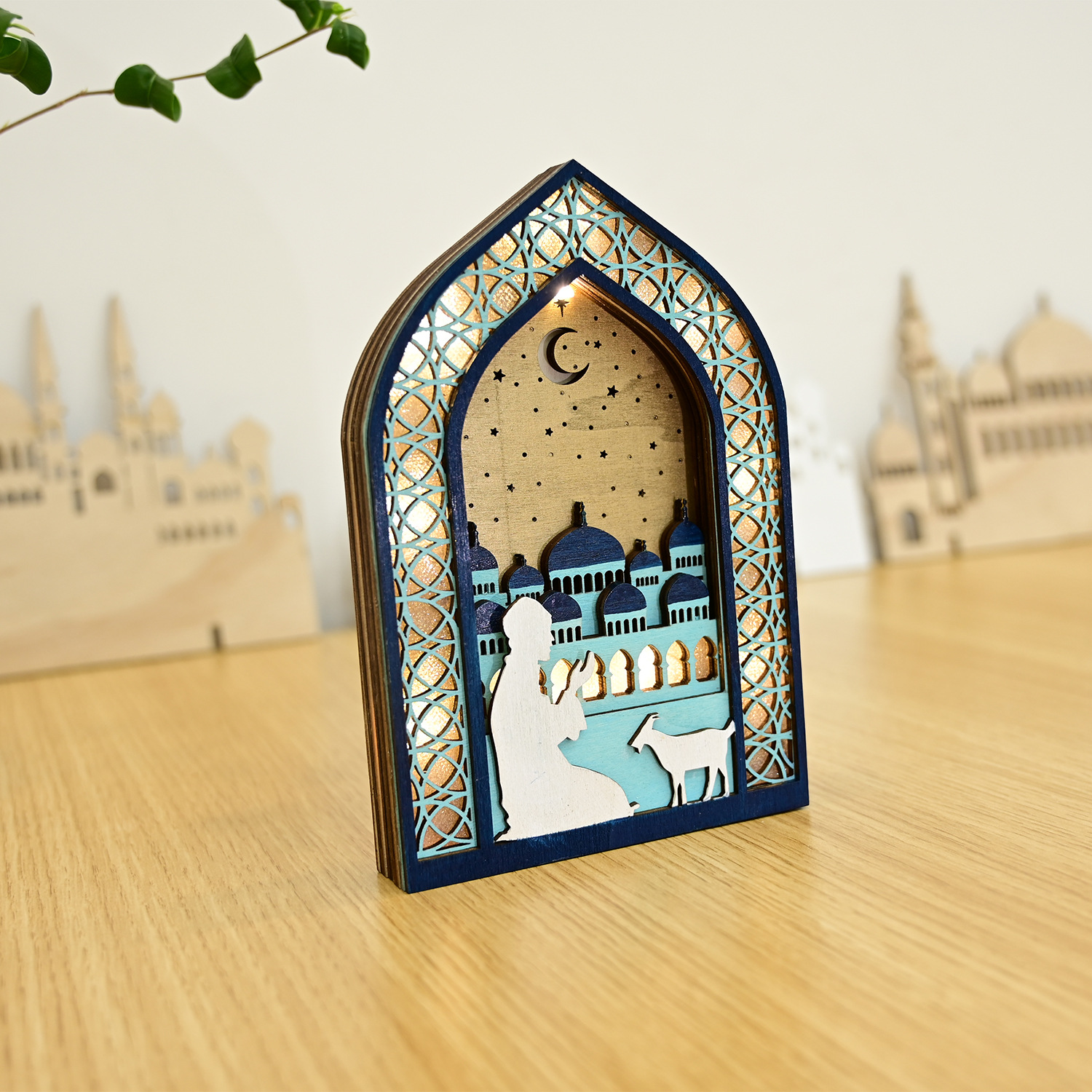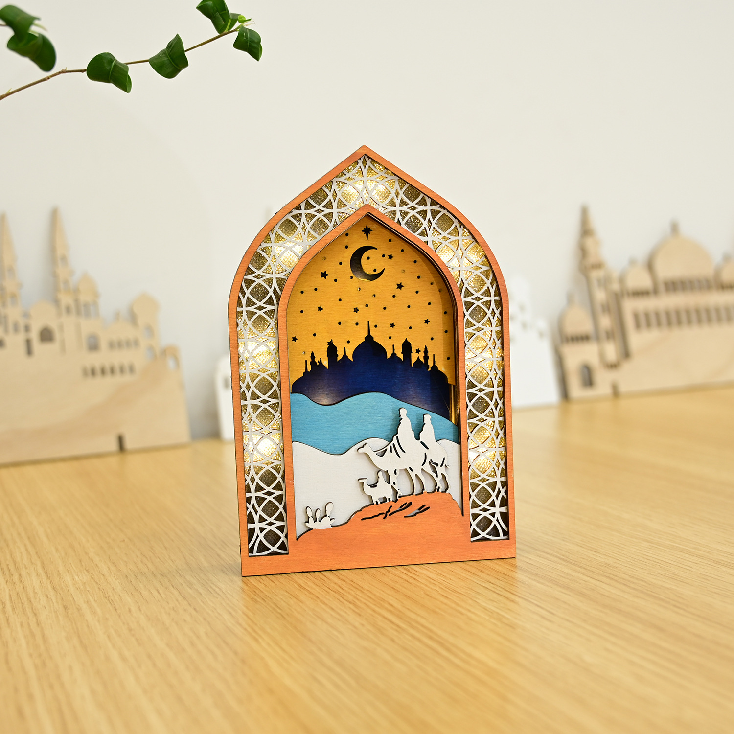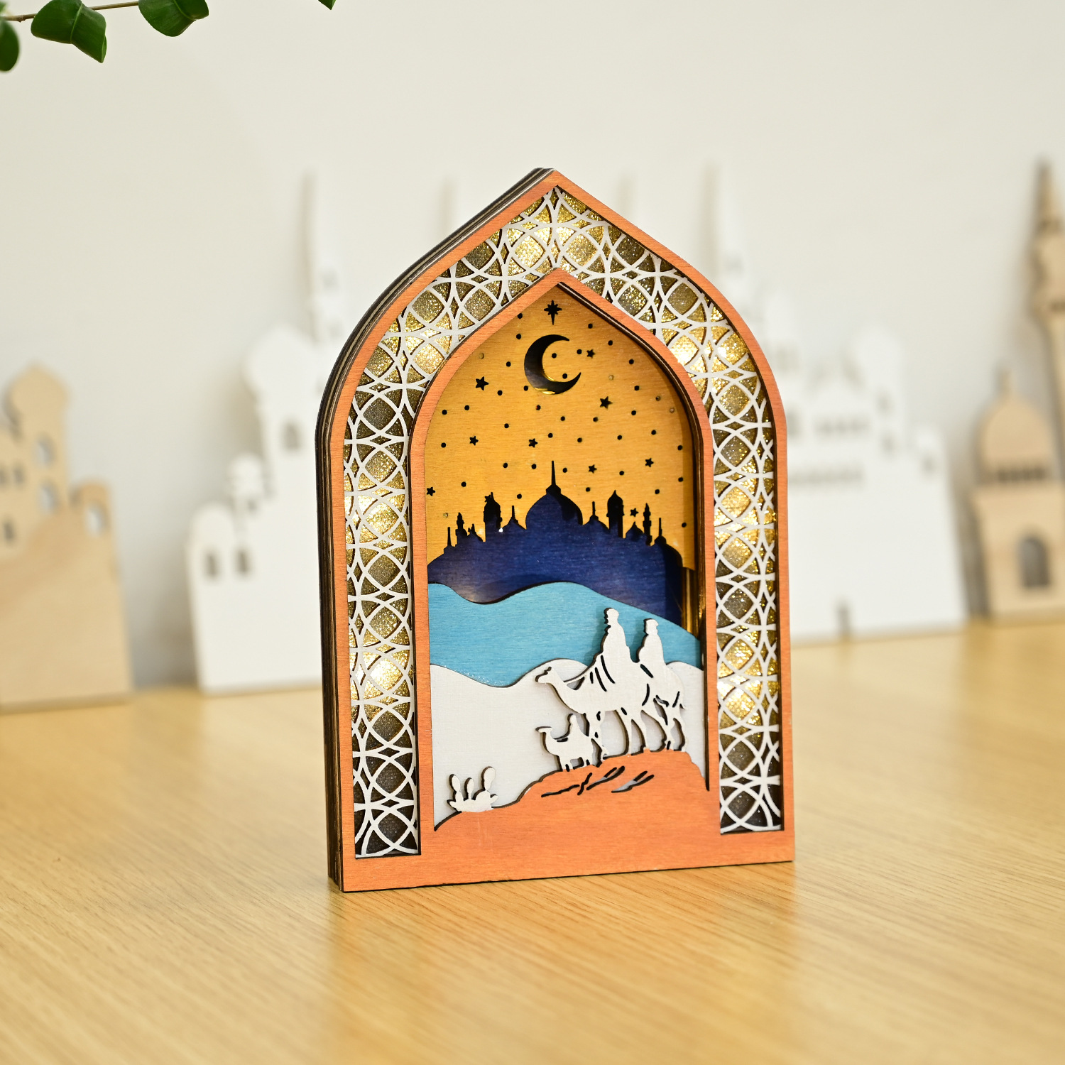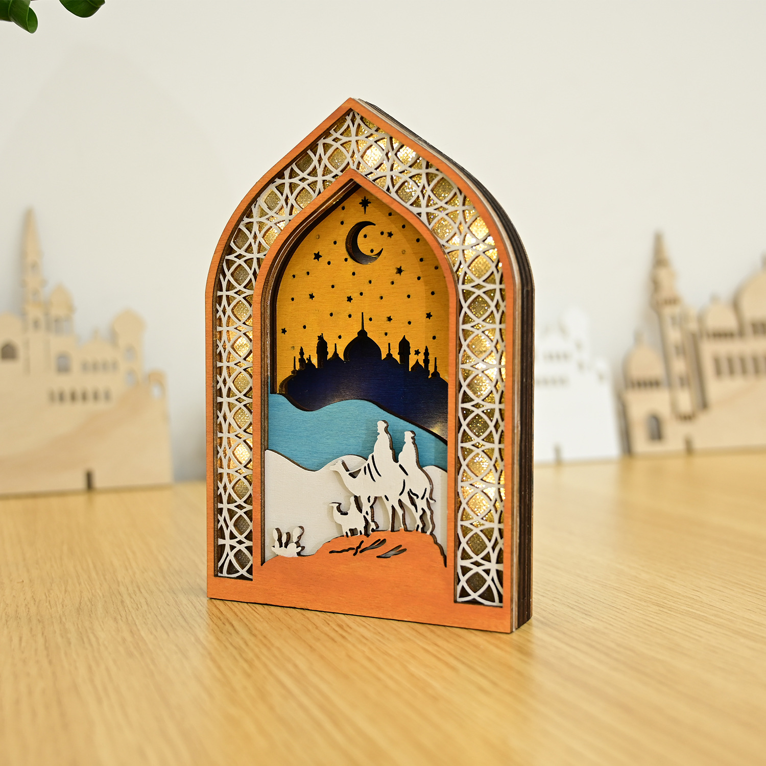 新款穆斯林木质节日发光吊饰LED吊件创意家居古而邦摆饰礼品装饰