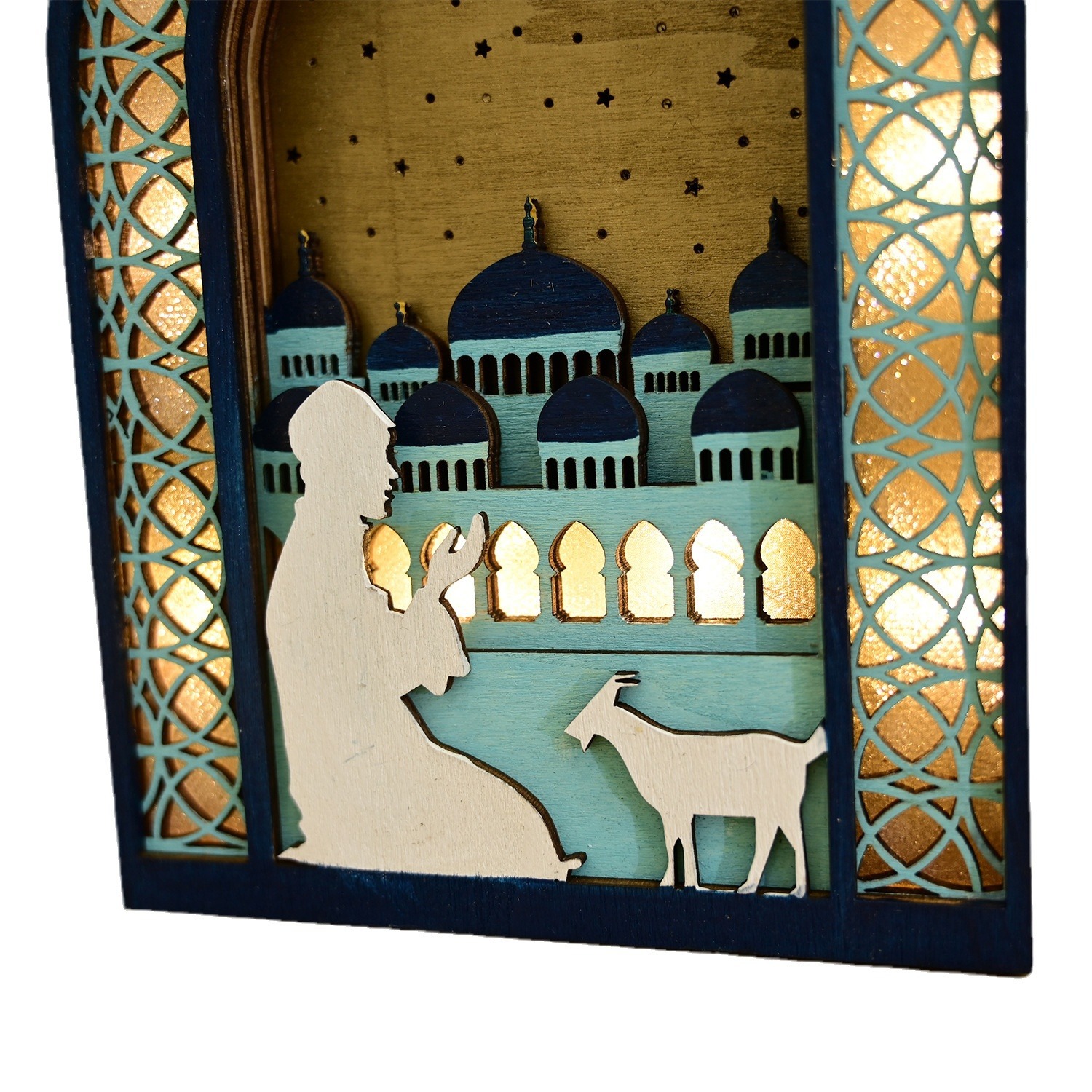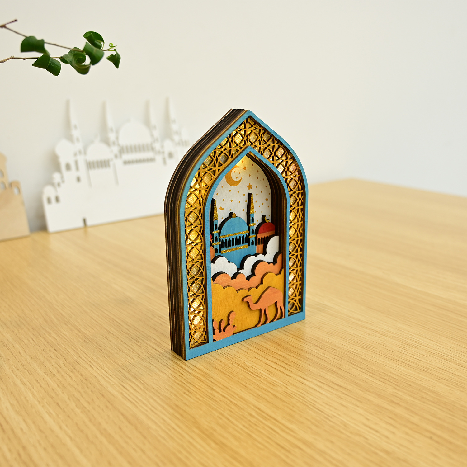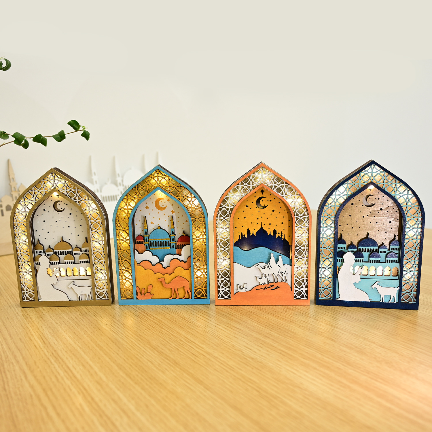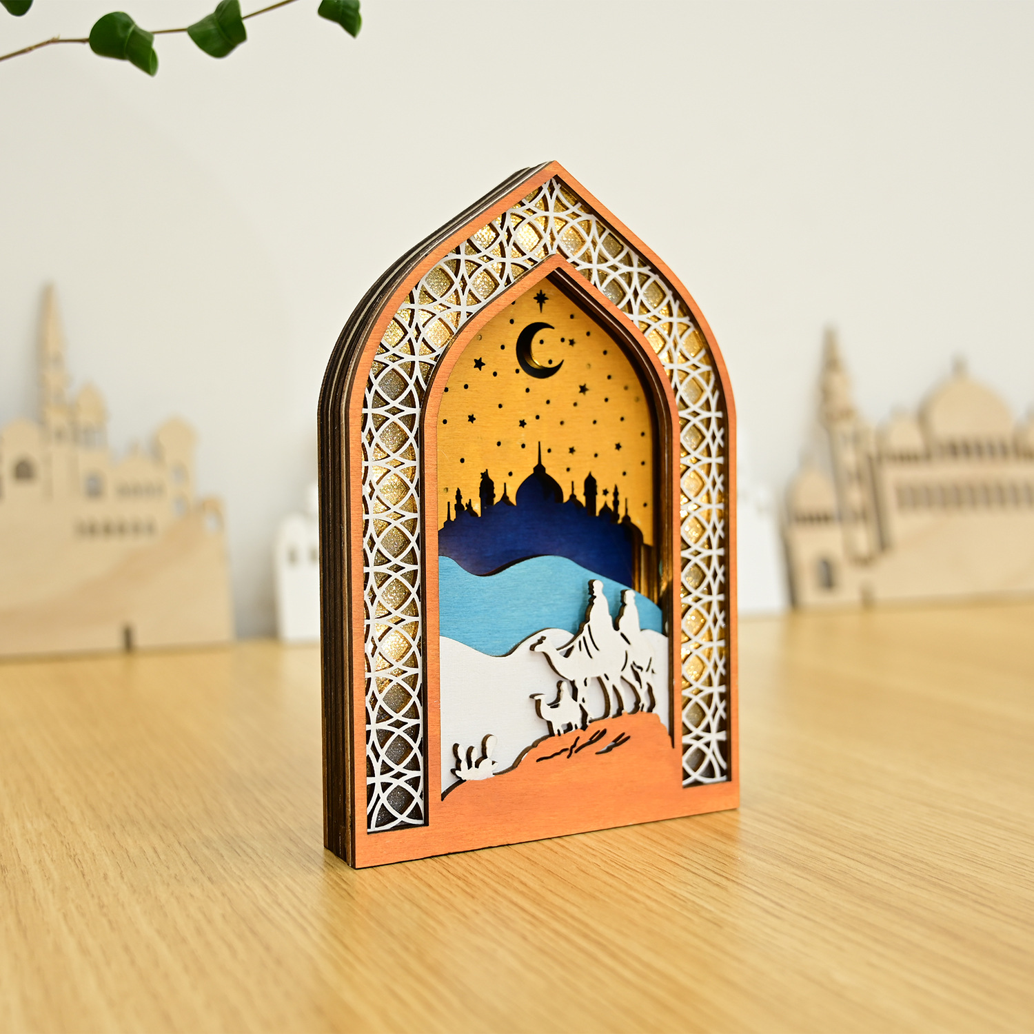 新款穆斯林木质节日发光吊饰LED吊件创意家居古而邦摆饰礼品装饰