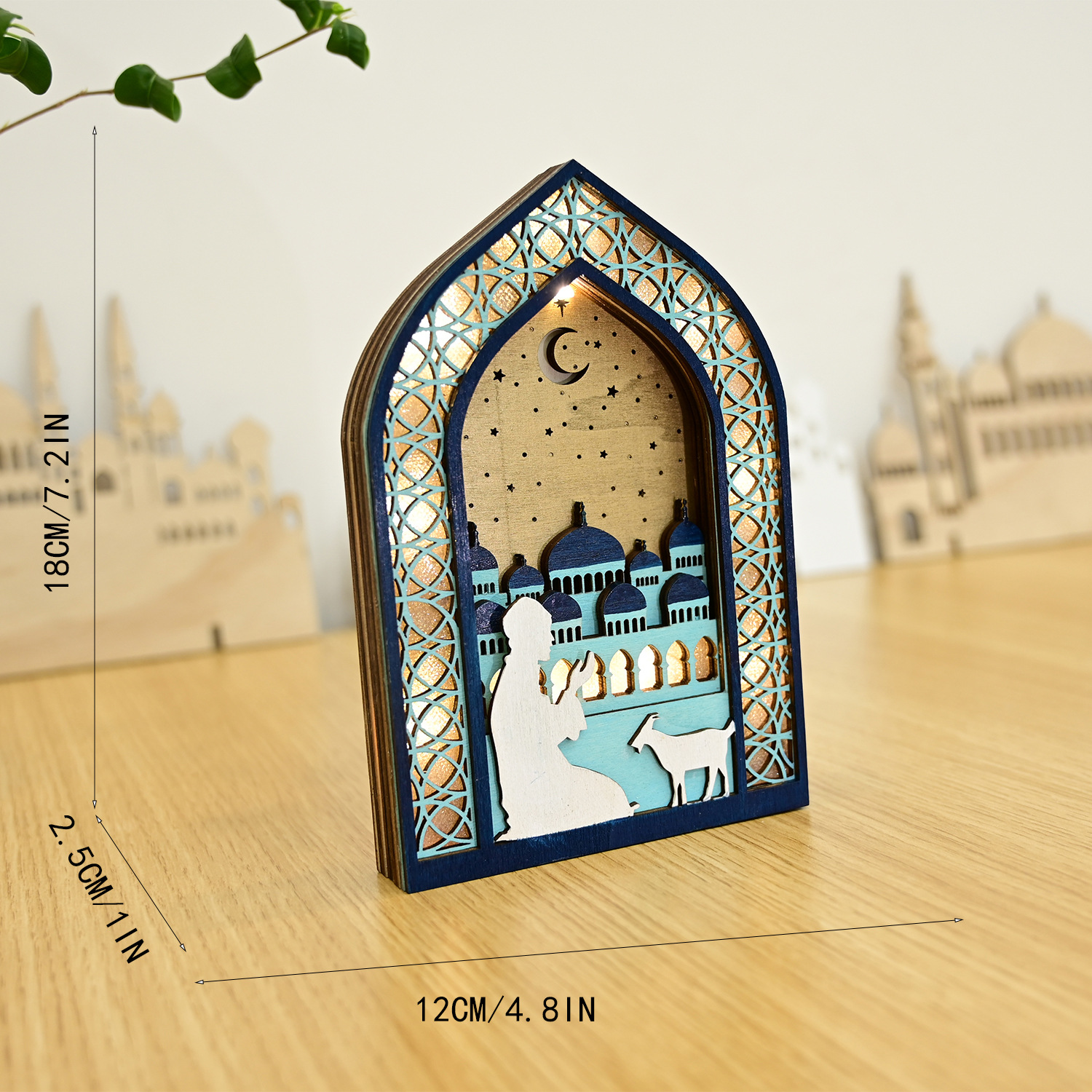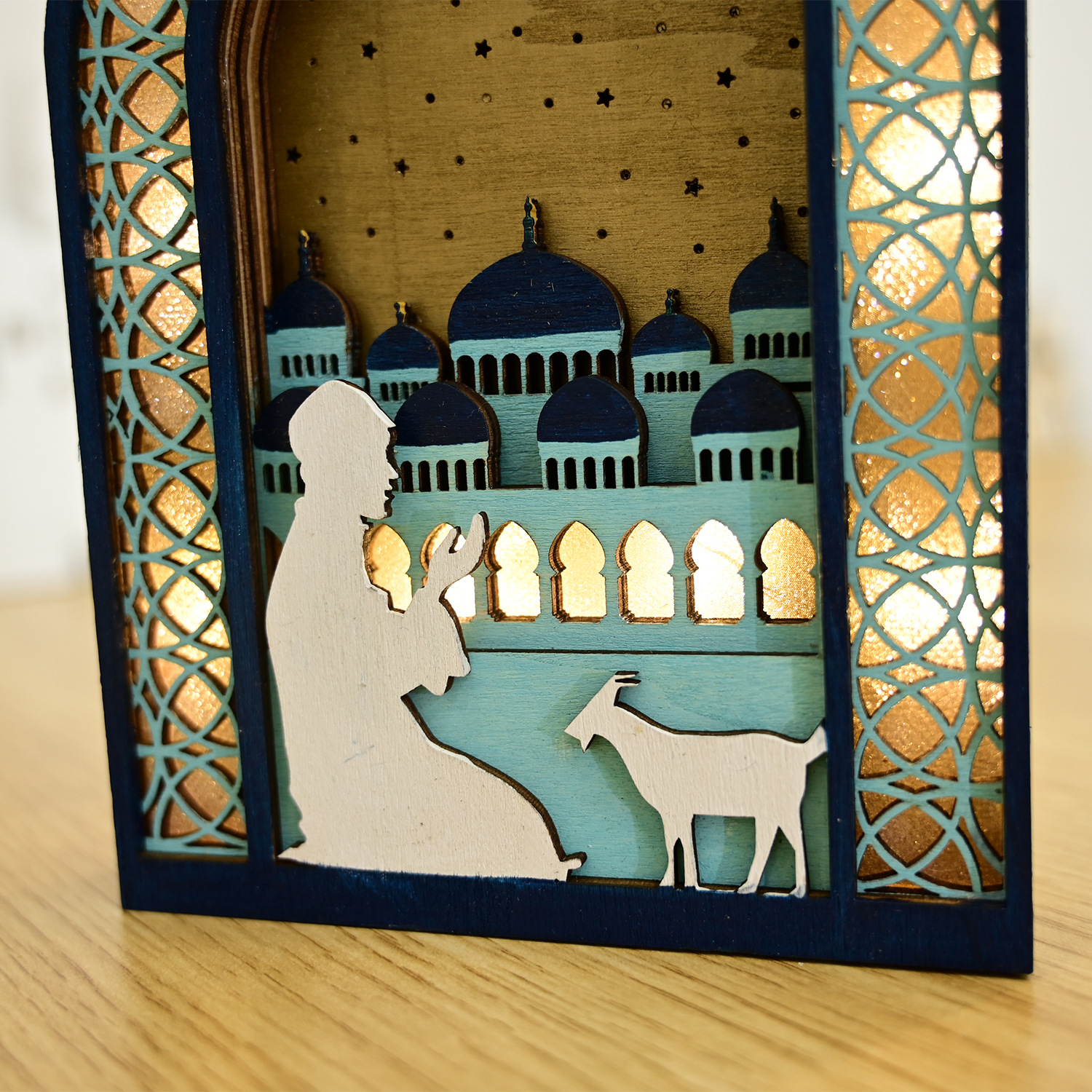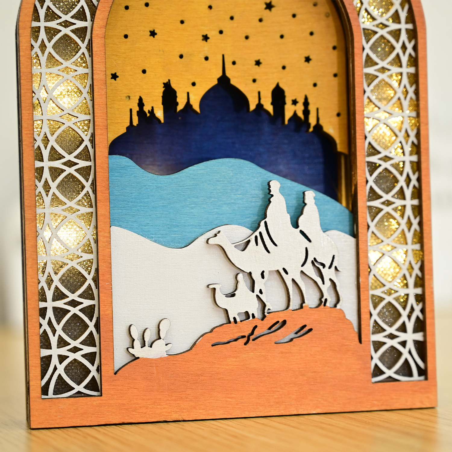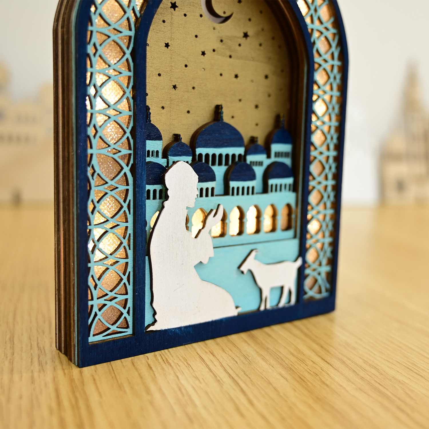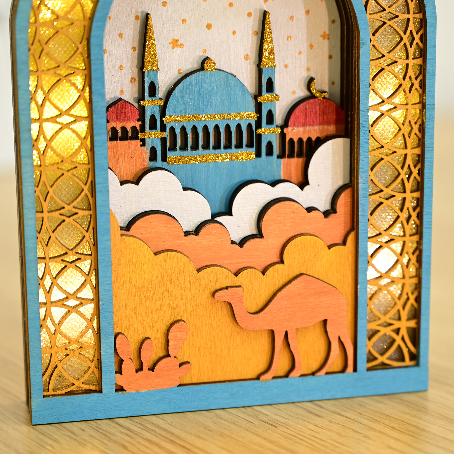 新款穆斯林木质节日发光吊饰LED吊件创意家居古而邦摆饰礼品装饰