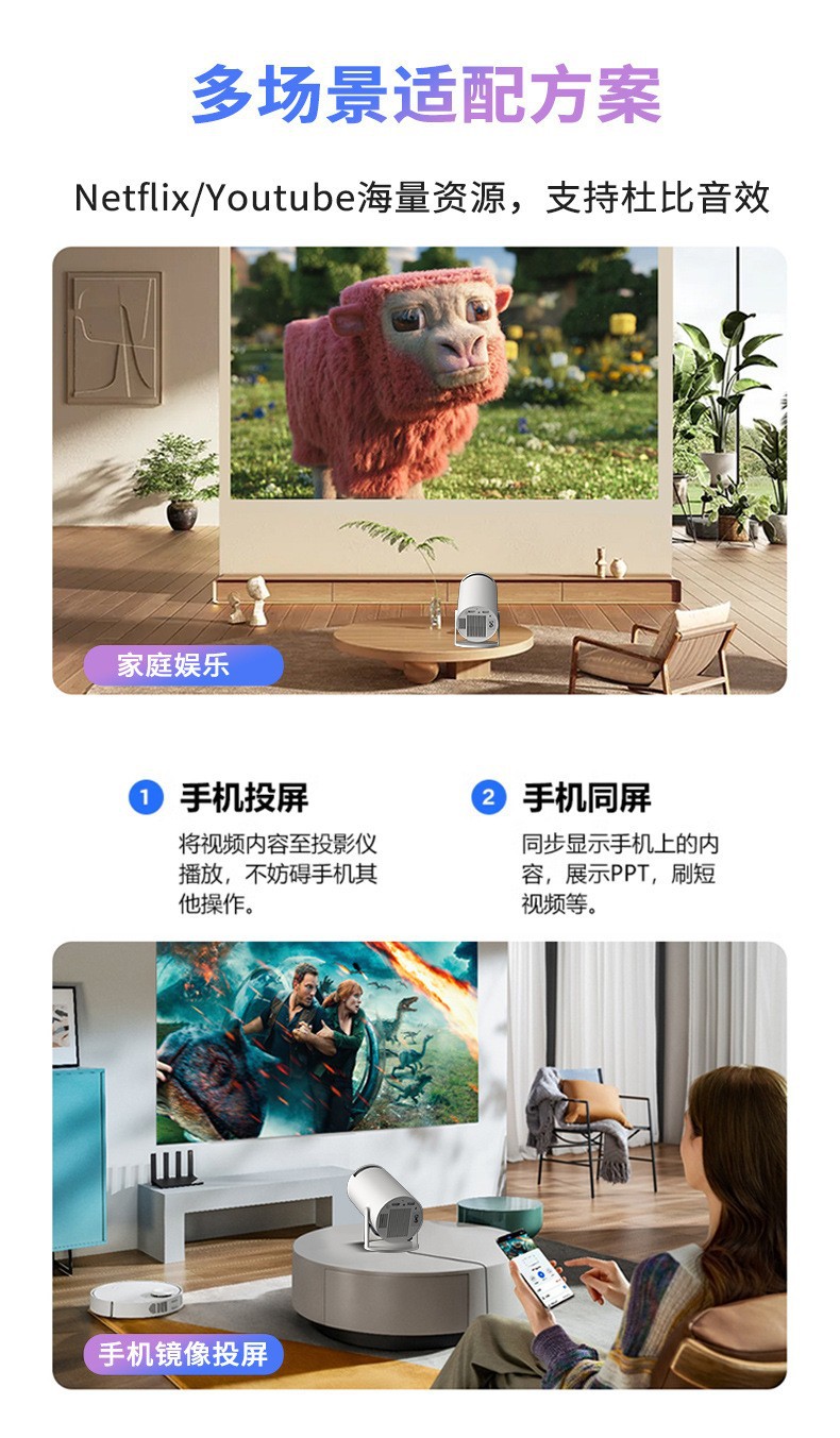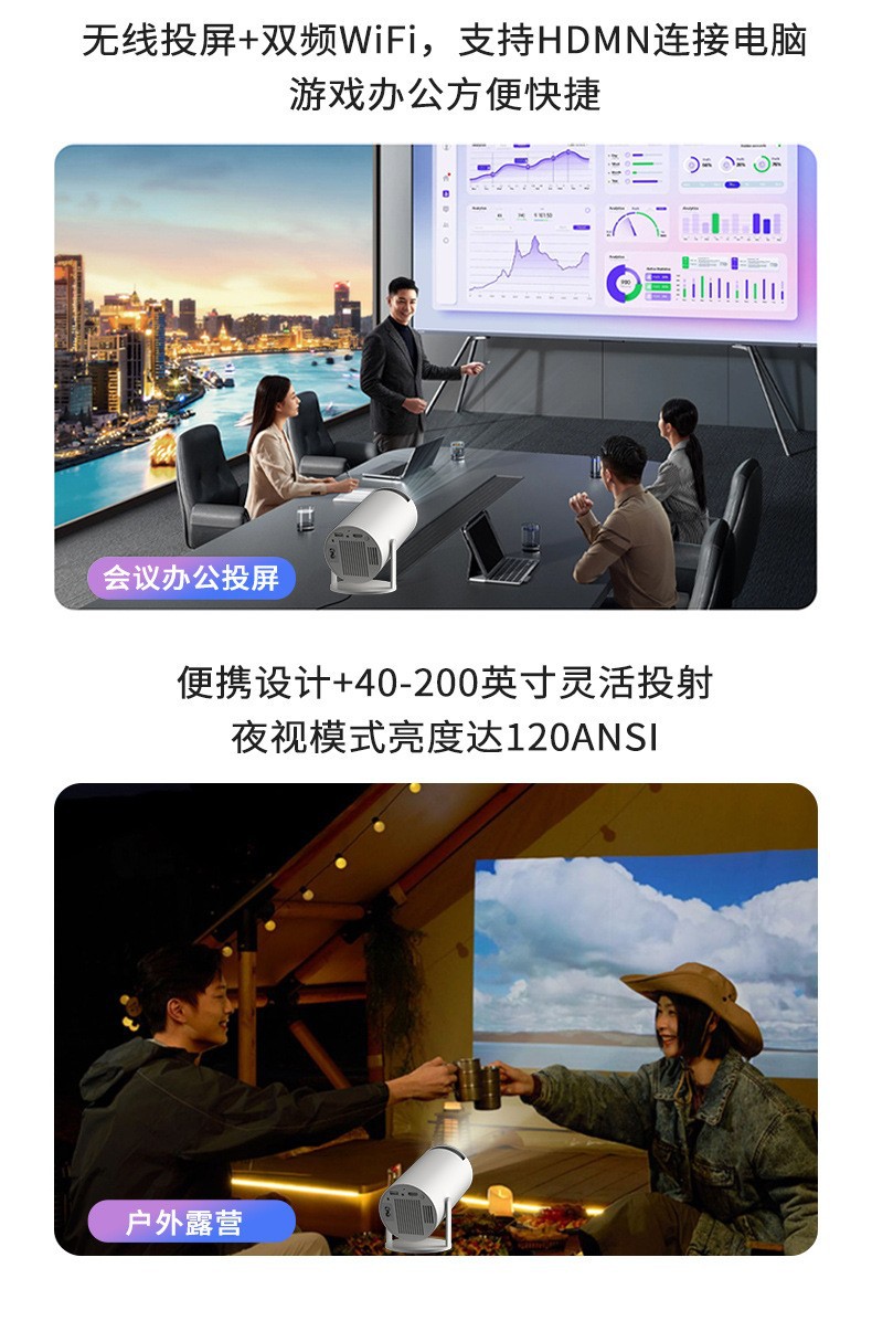 跨境爆品HY300投影仪 家用迷你便携高清投影机 支持无线同屏