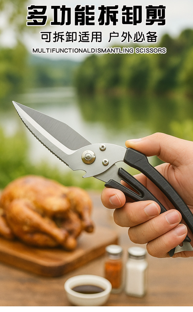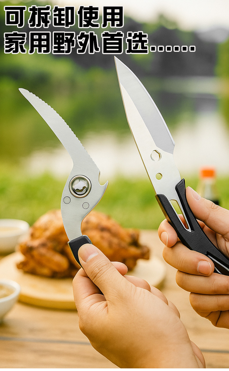 多功能户外剪刀 露营装备可拆卸切肉剪骨头食品级不锈钢厨房剪刀