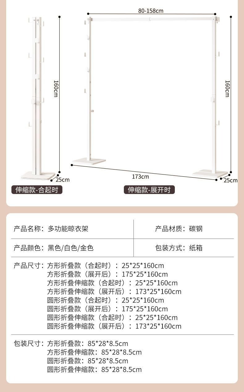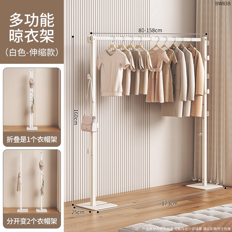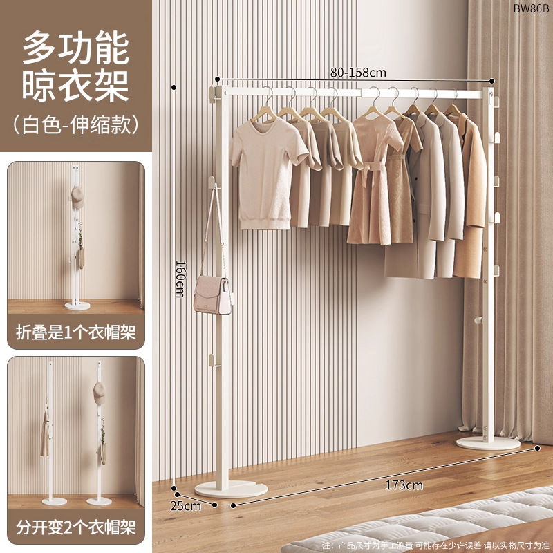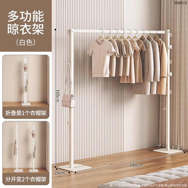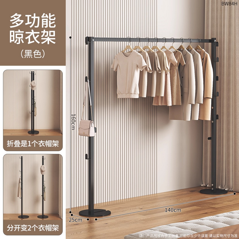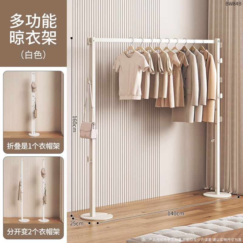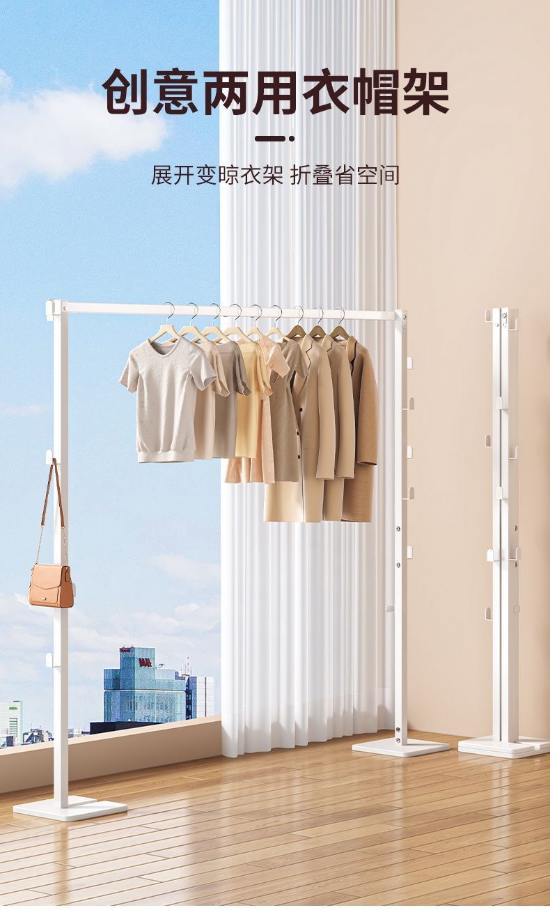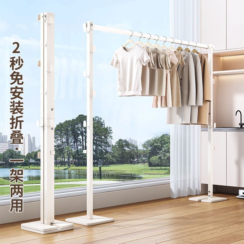 折叠晾衣架落地家用阳台晾衣杆晒衣架多功能室内挂衣架简易衣帽架