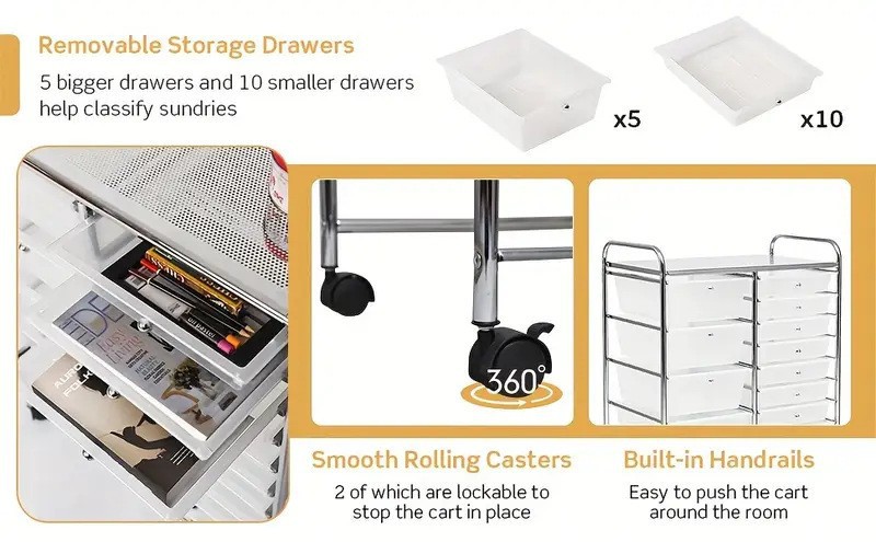 推车置物架抽屉式小推车防尘可移动收纳零食防尘收纳抽屉式收纳